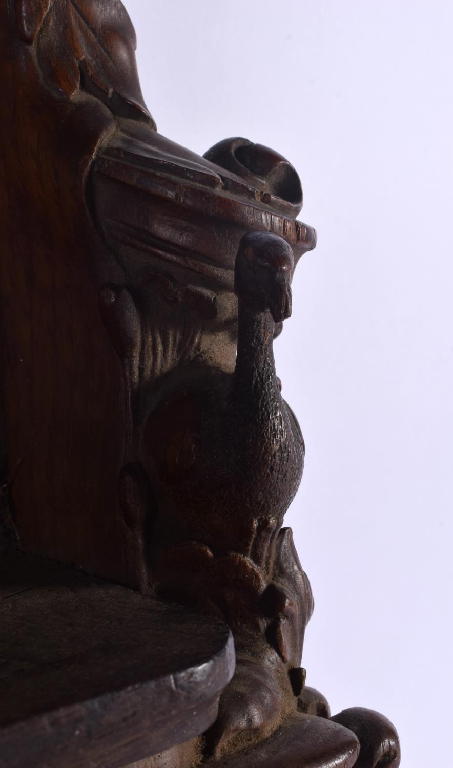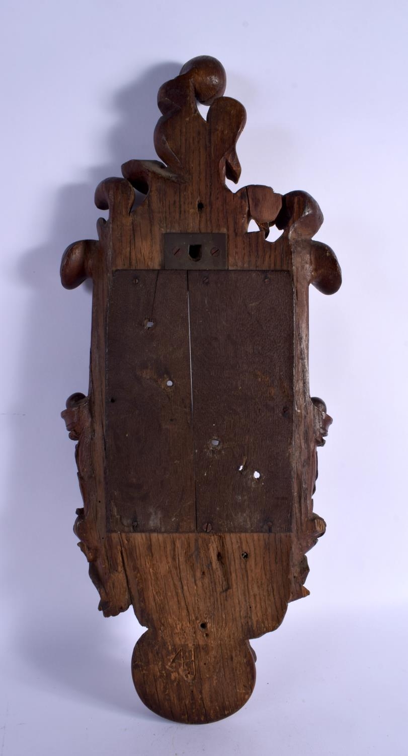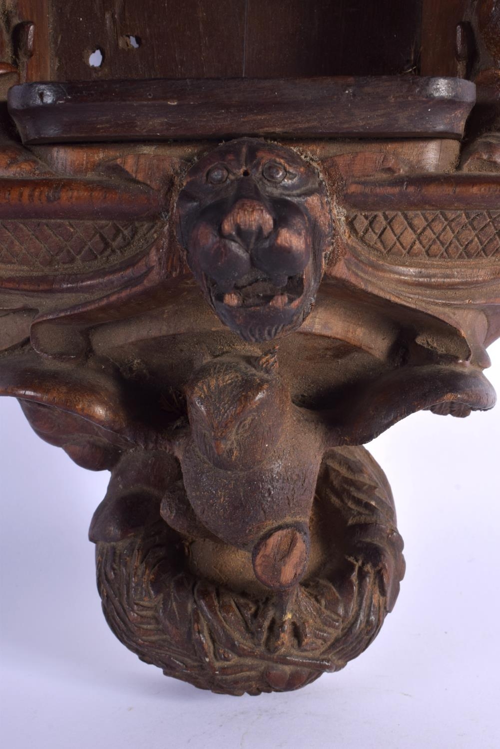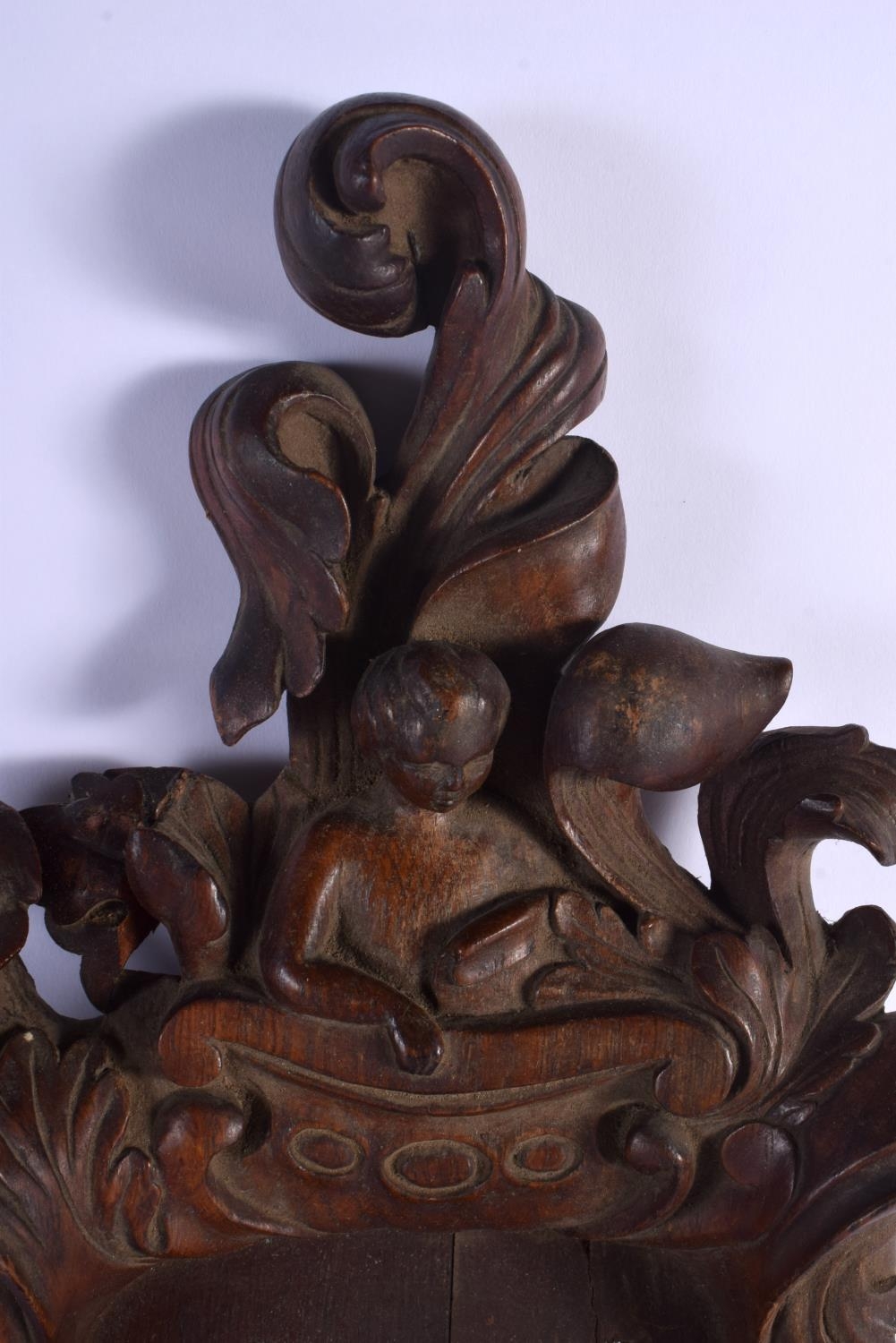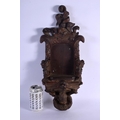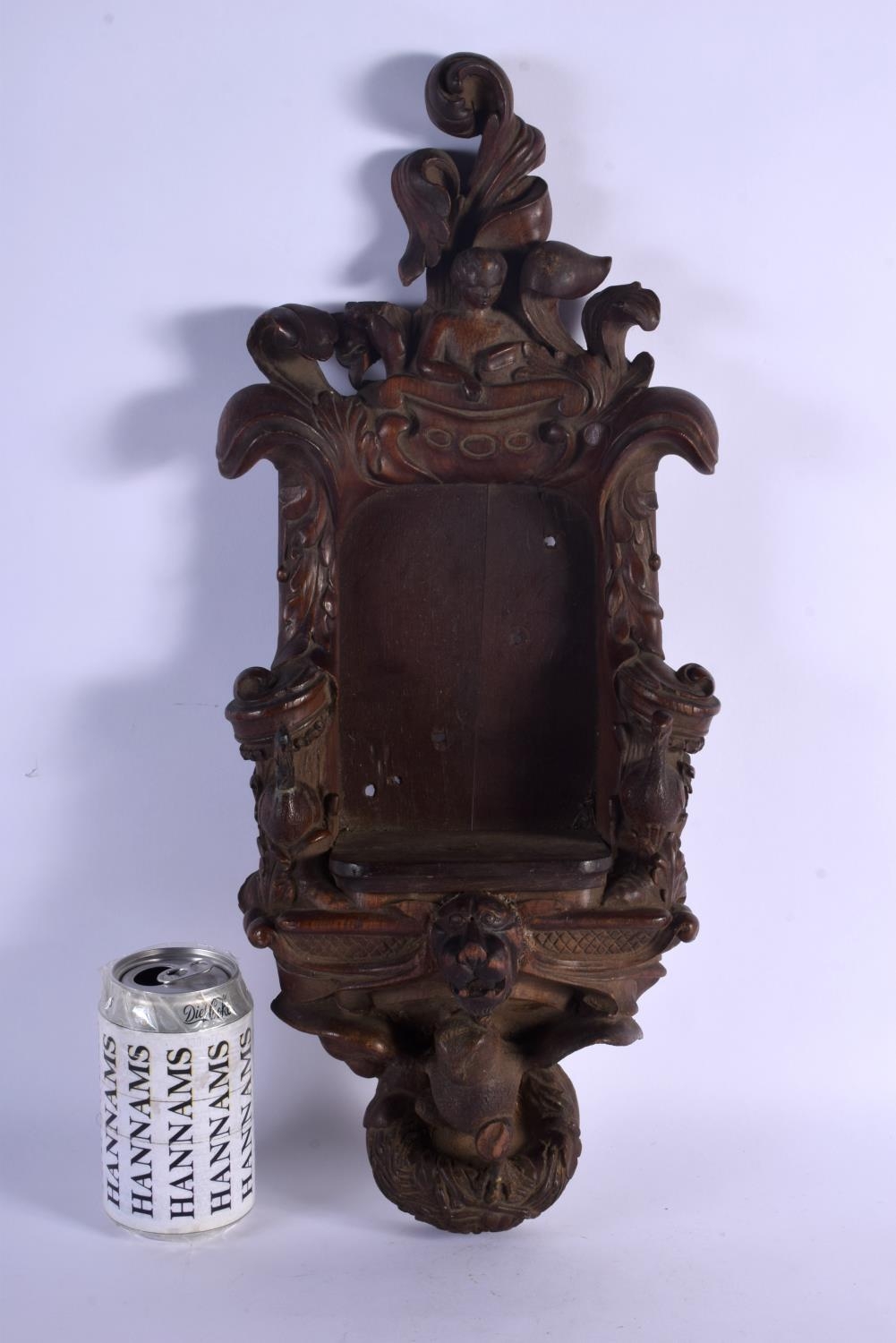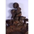 AN UNUSUAL ANTIQUE BLACK FOREST TYPE HANGING WALL FONT STYLE STAND formed with owls and birds. 50 cm x 22 cm.