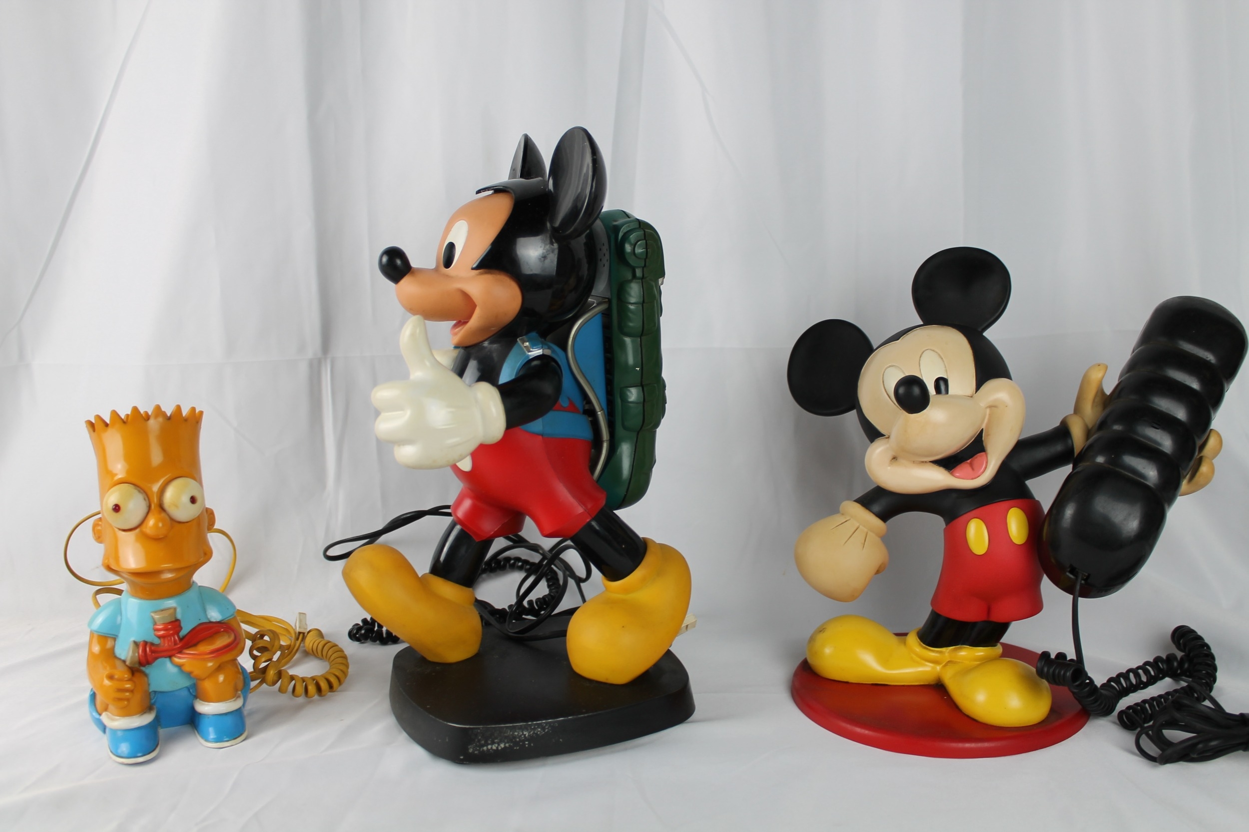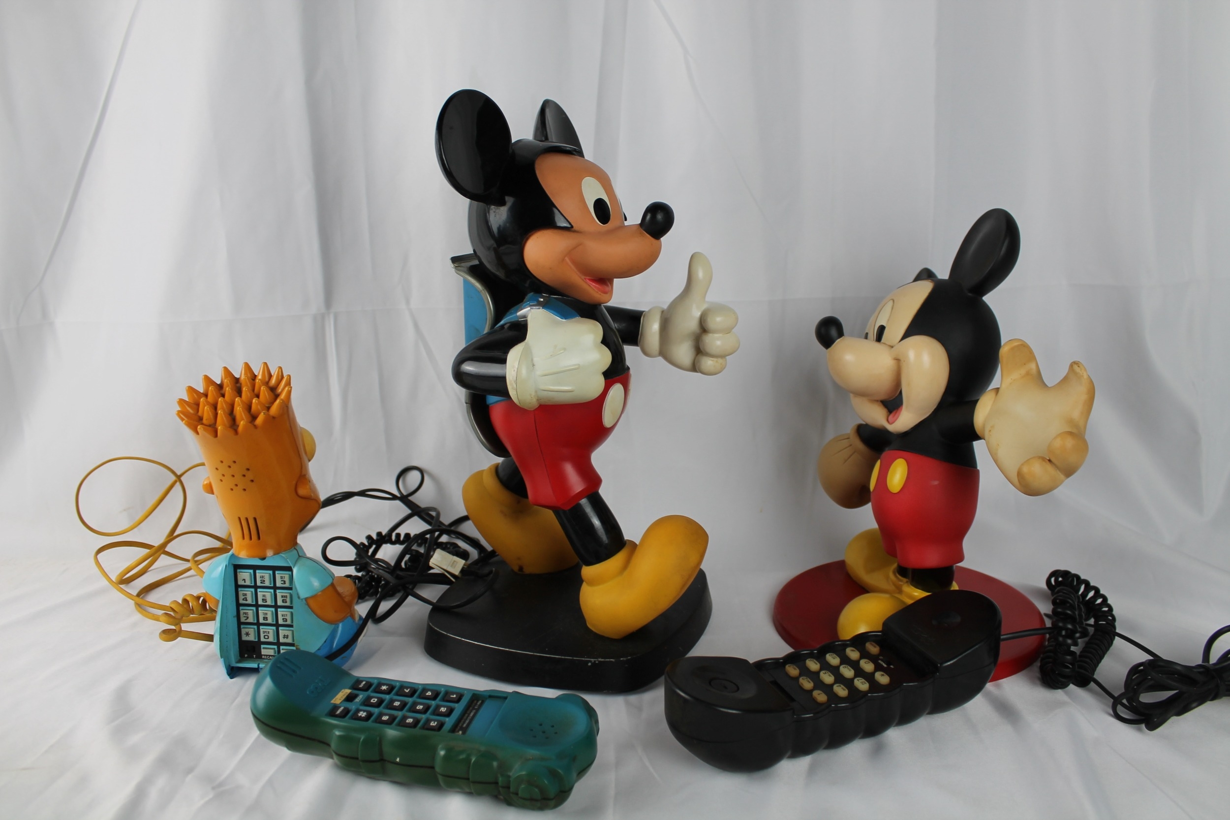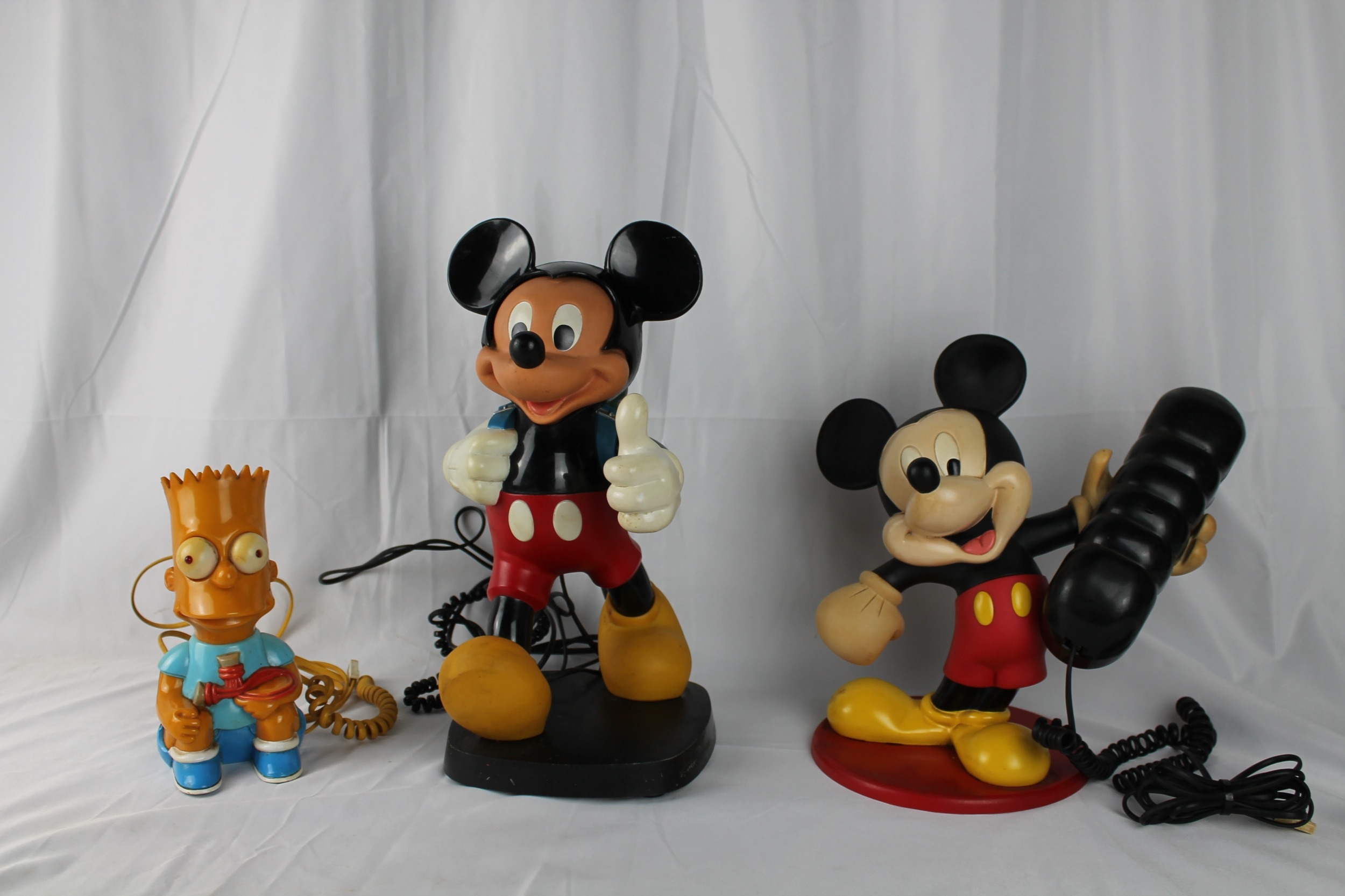 Disney, Two Mickey Mouse Land Line Phones and a Bart Simpson Telephone, All in Working Condition