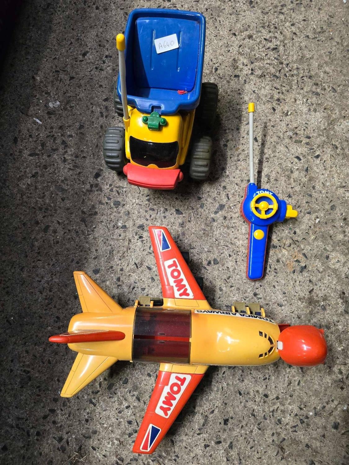 CARTON WITH A TOMY PLANE & DUMPER TRUCK