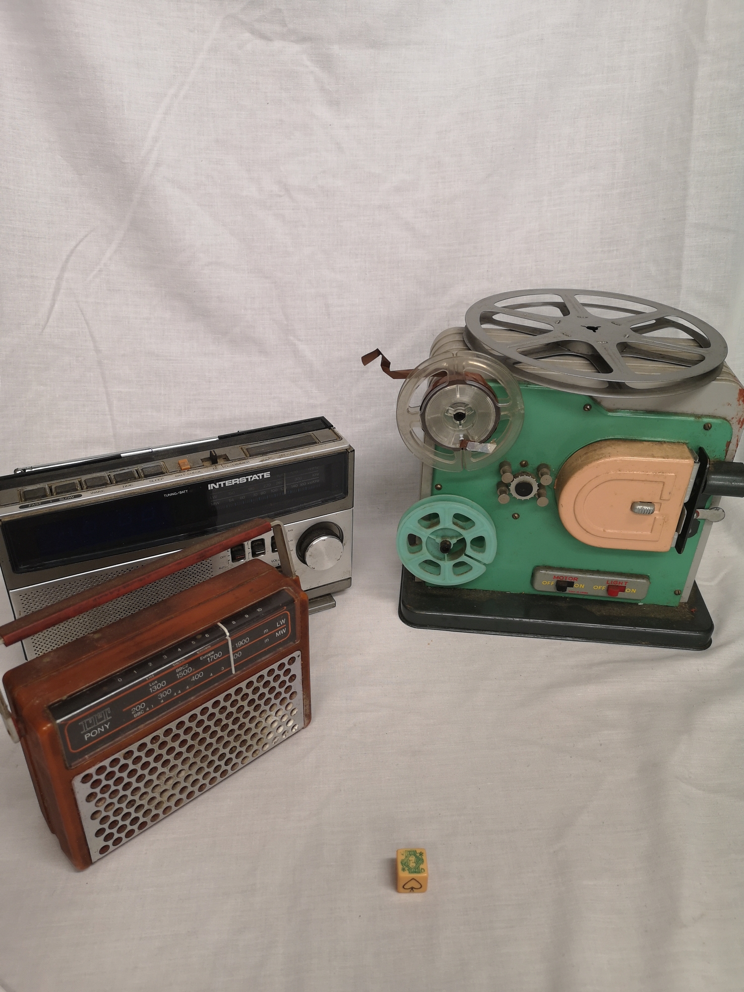 Vintage reel to reel together with 2 vintage radios .