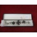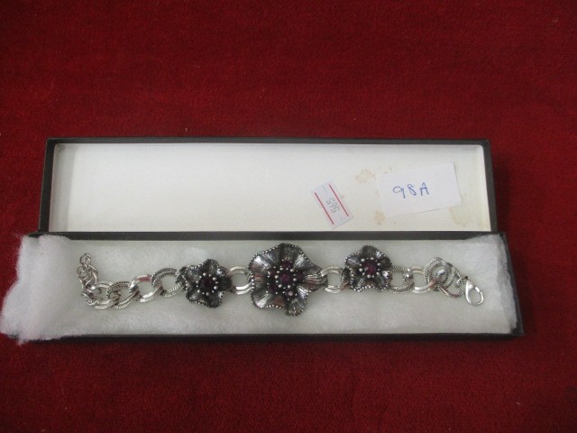 SILVER METAL FLOWER BRACELET WITH STONES, BOXED