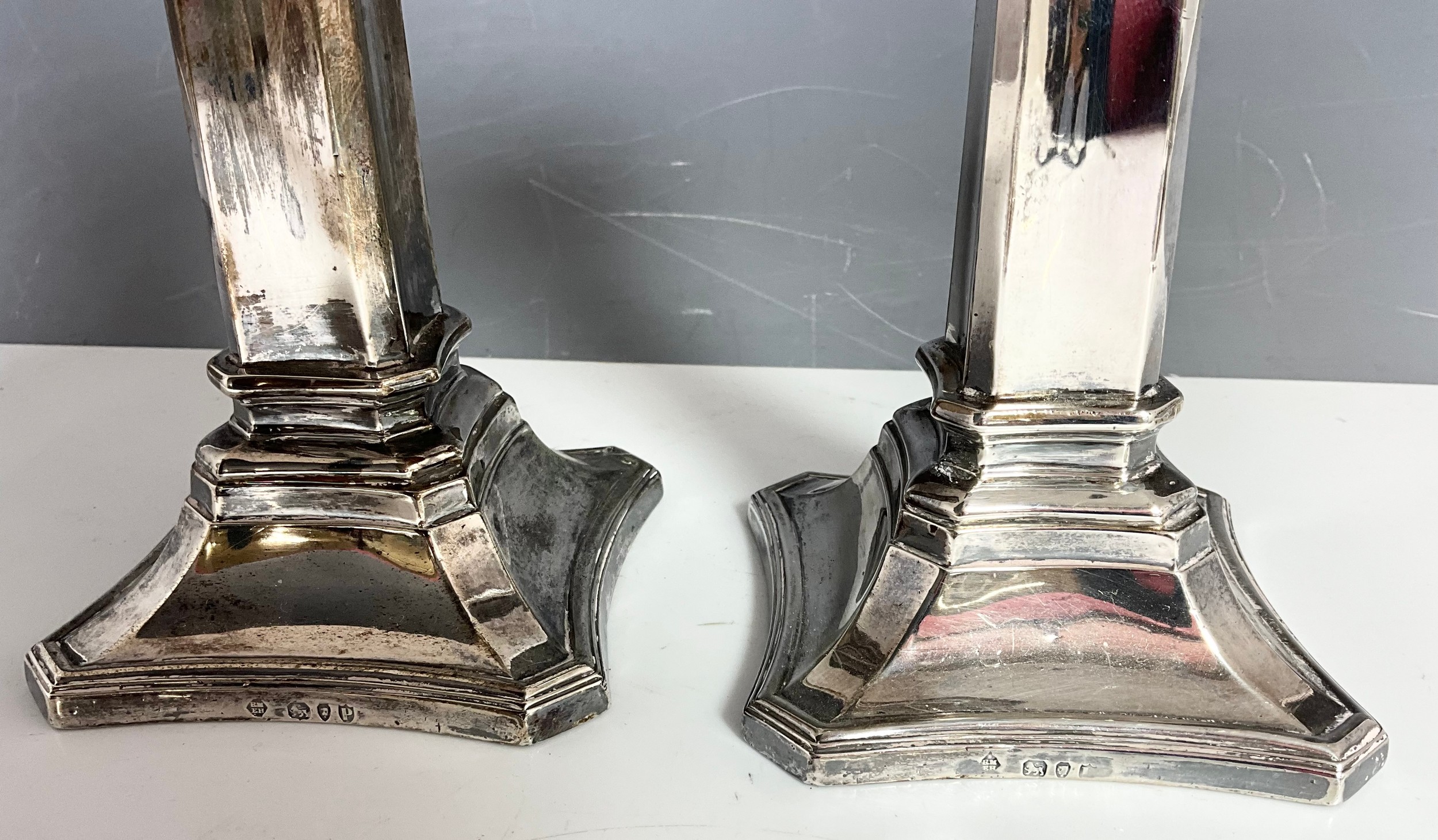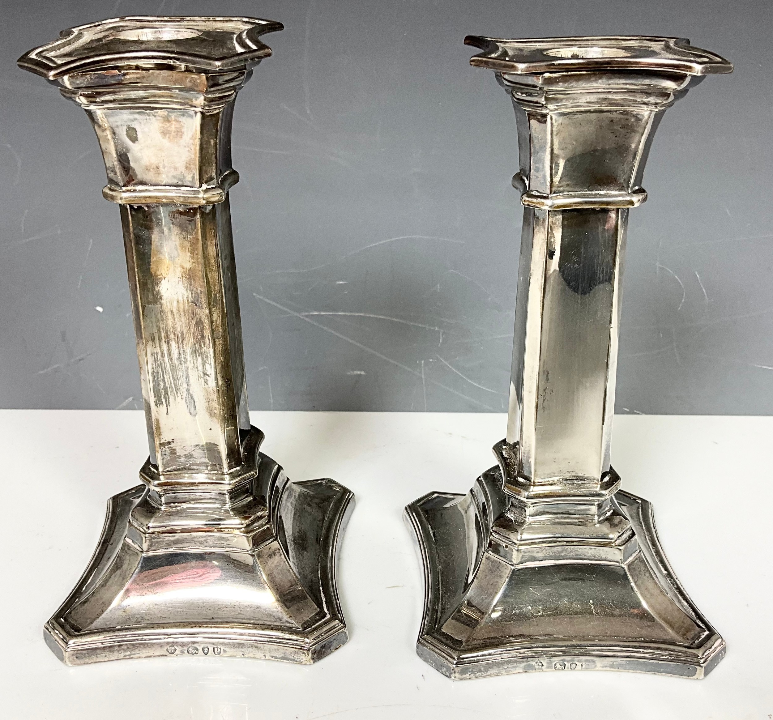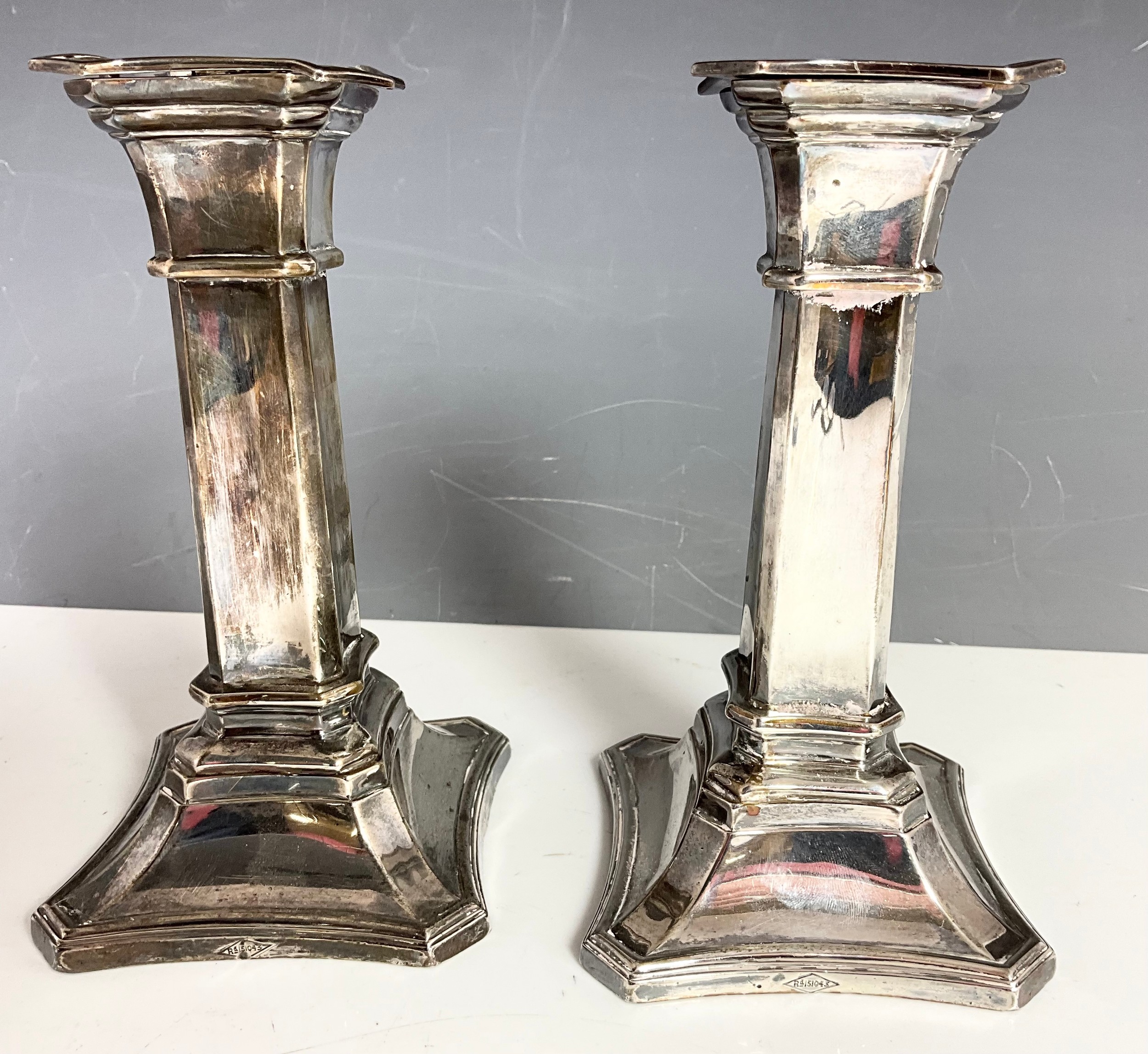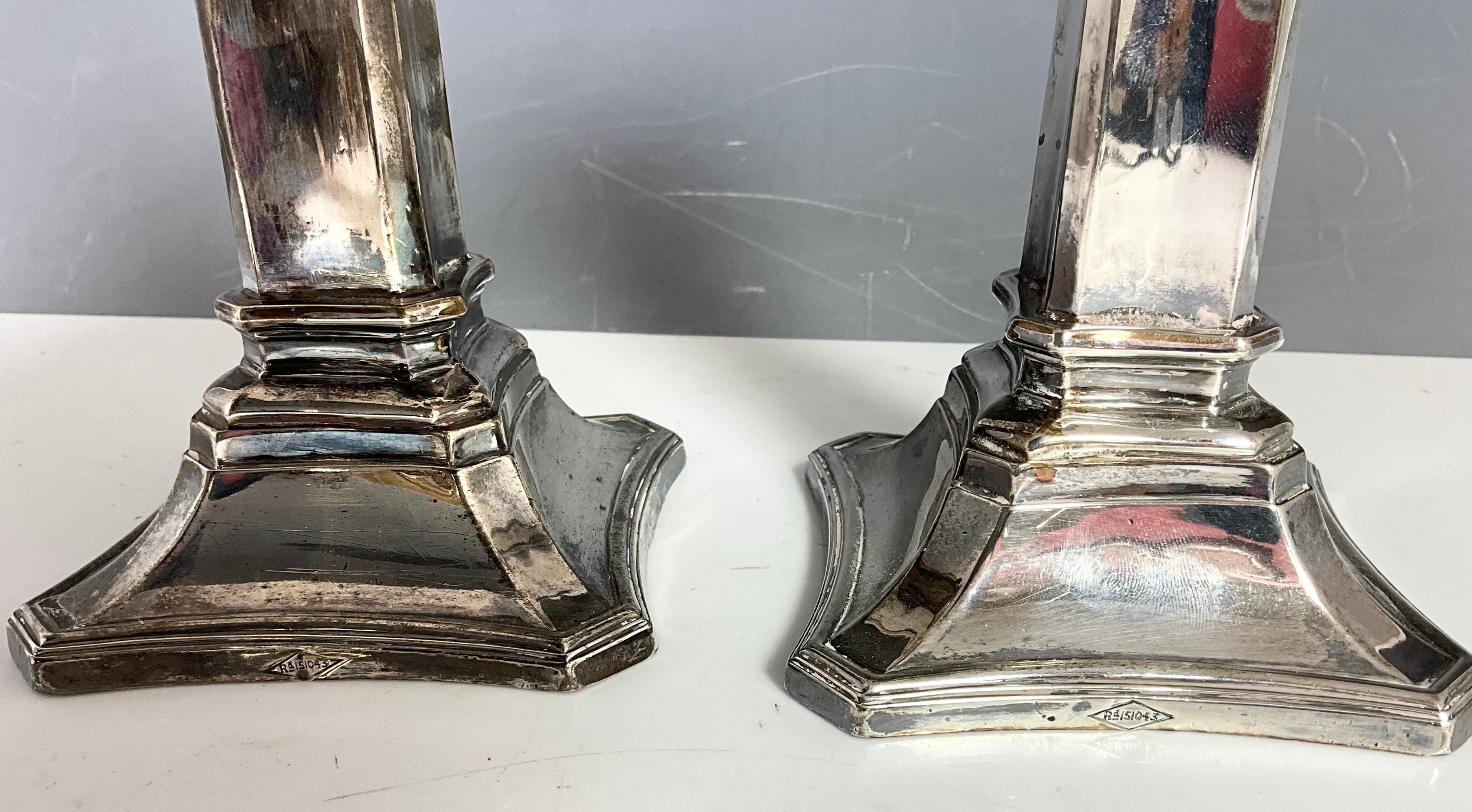PAIR OF HALLMARKED MARTIN, HALL & CO SILVER CANDLESTICKS 16cm WEIGHTED 852g GROSS