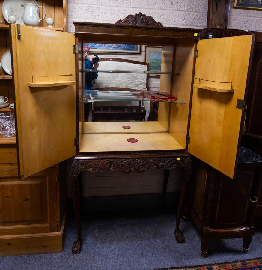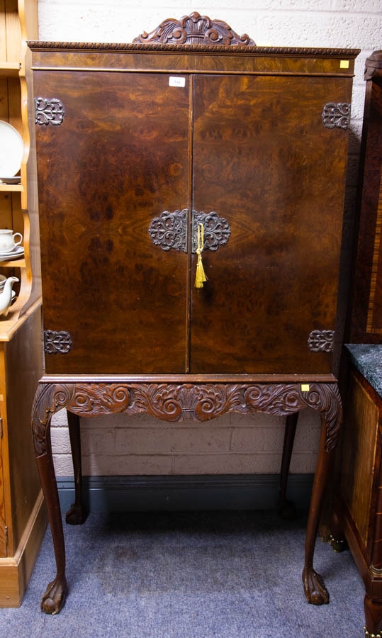 MID CENTURY WALNUT DRINKS CABINET 87W X 45D X 169H CM