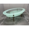A Modern Clear/Frosted Glass Two Tier Coffee Table - Removable Tabletop, on Four Brushed Metal Legs. Approx 130cm x 80cm x 145cm