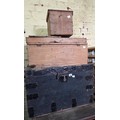 Vintage metal bound box, 2 pine boxes and 2 hand bells