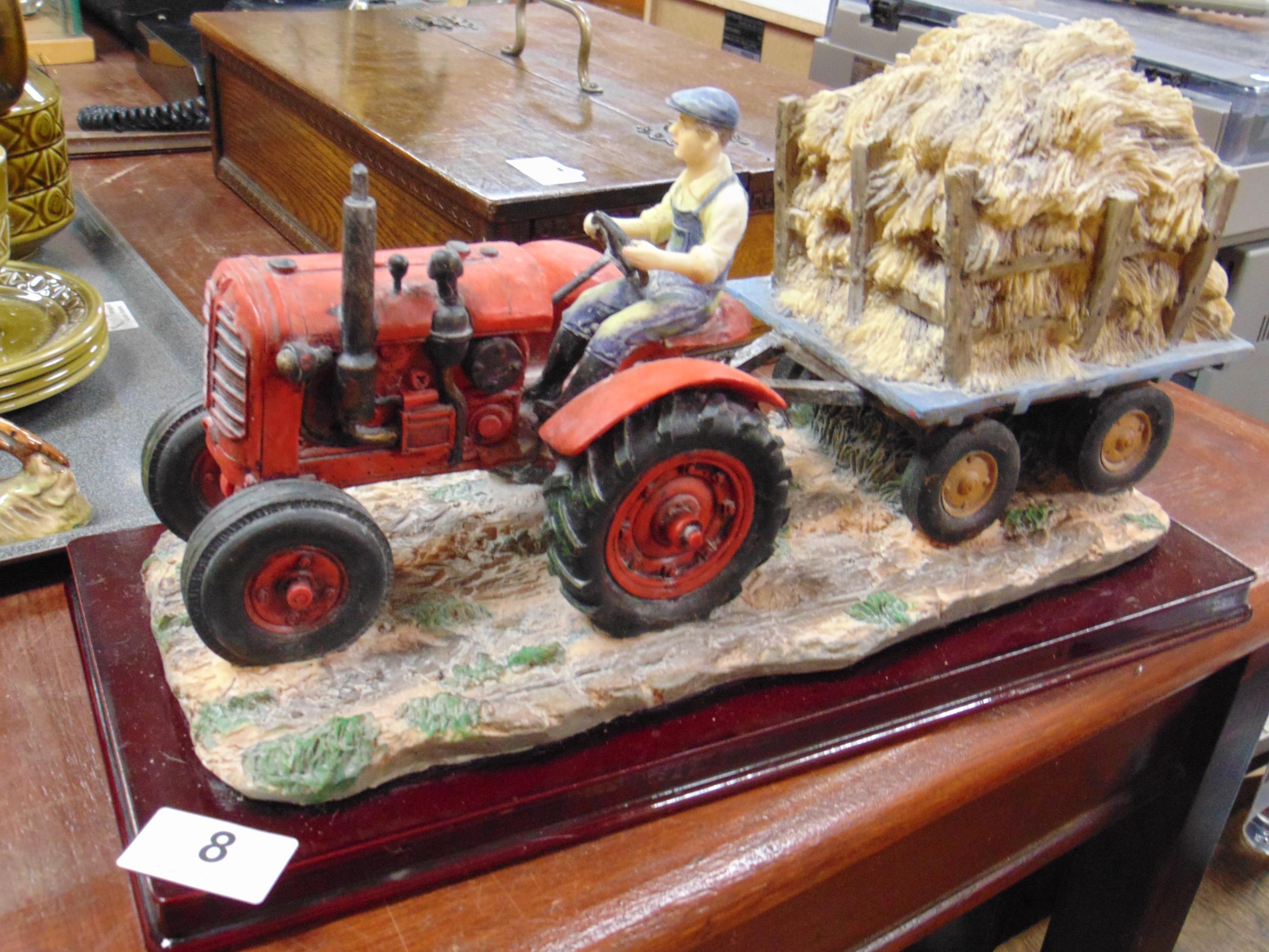 Composite group, vintage tractor and haycart.