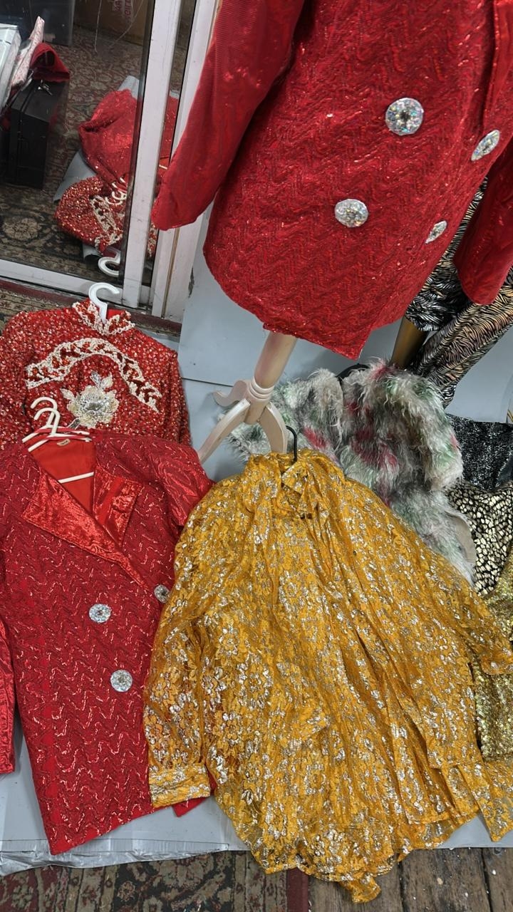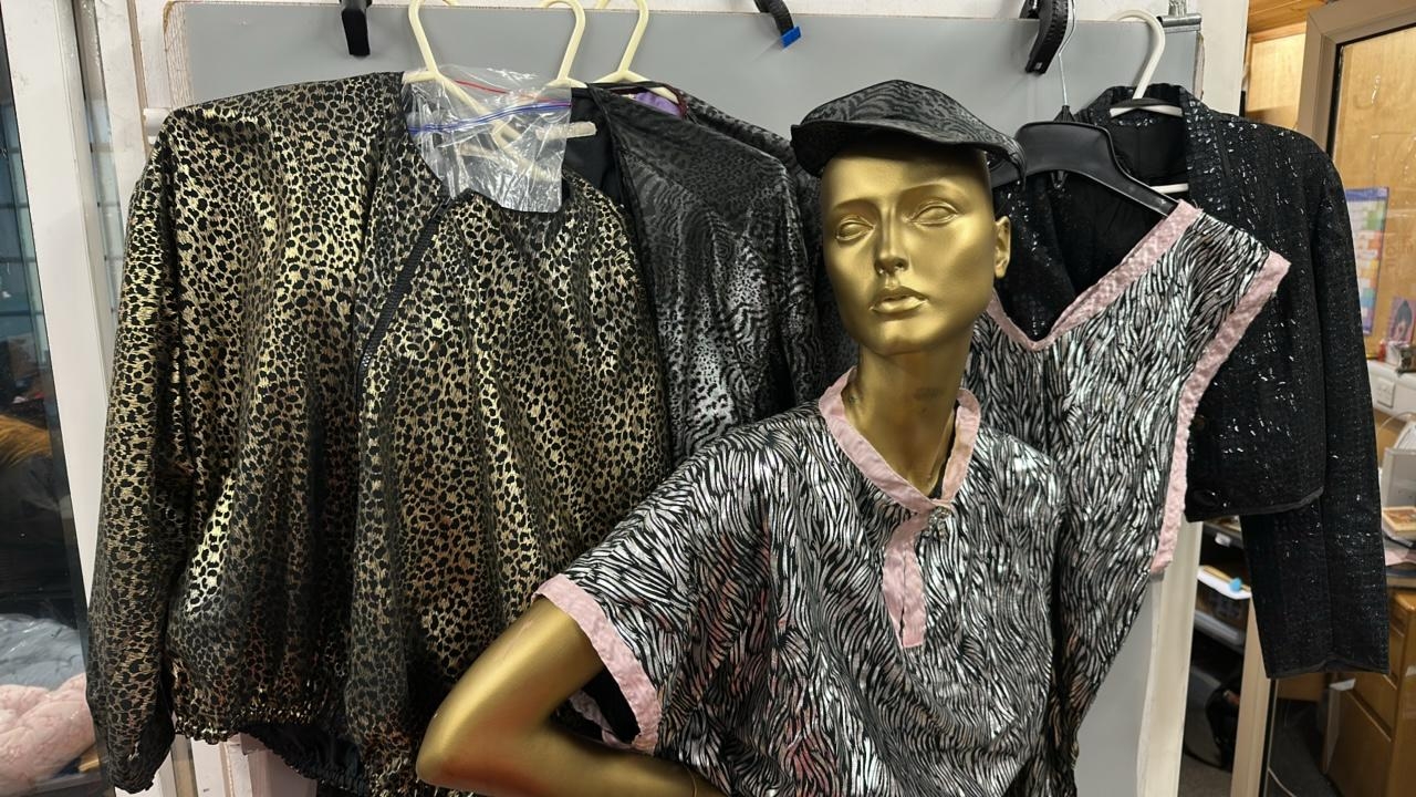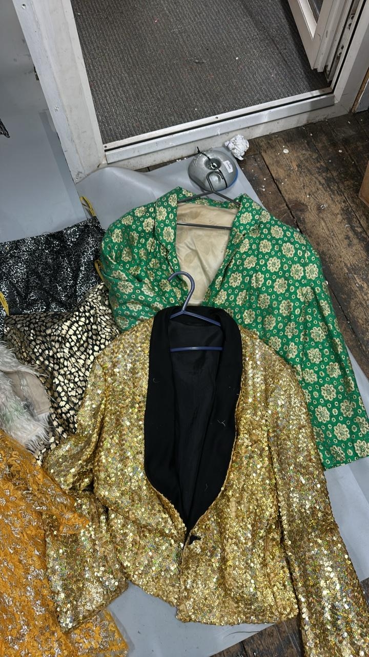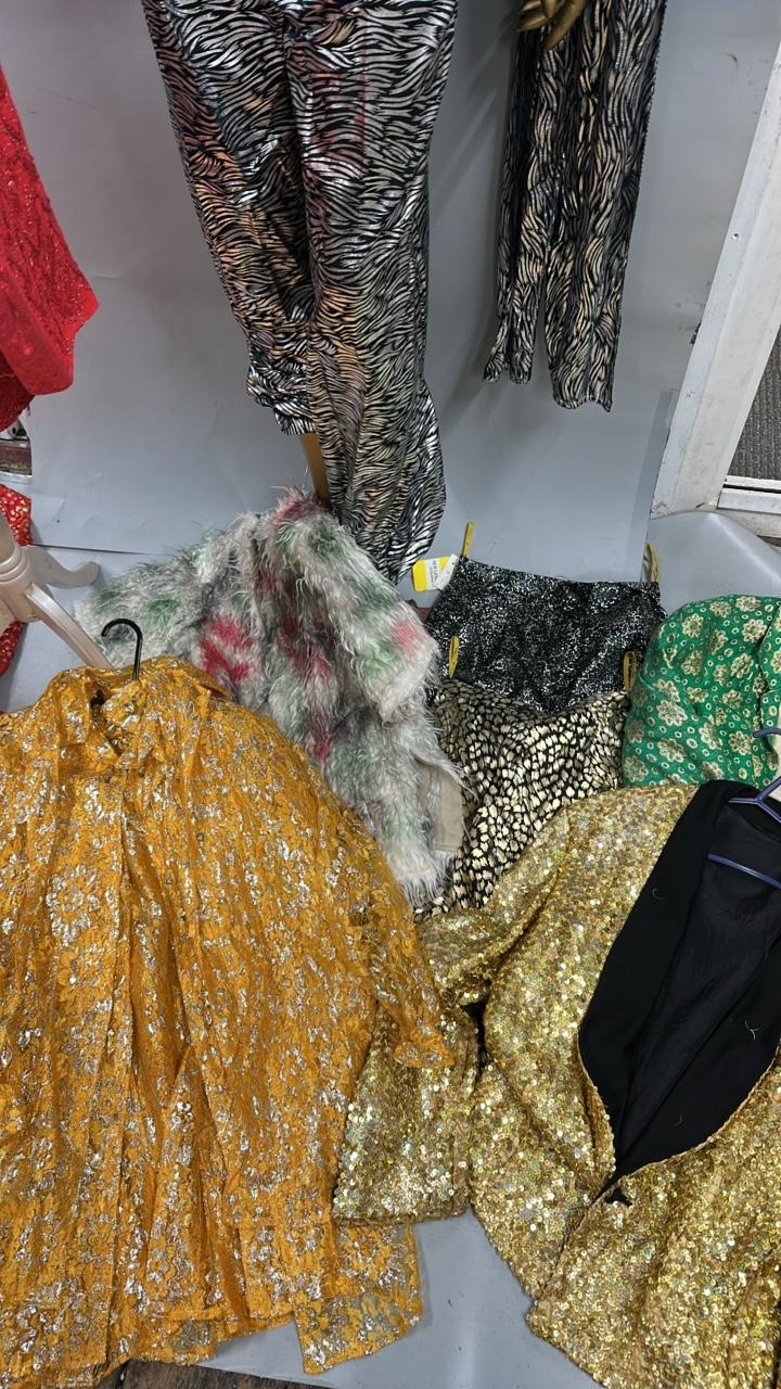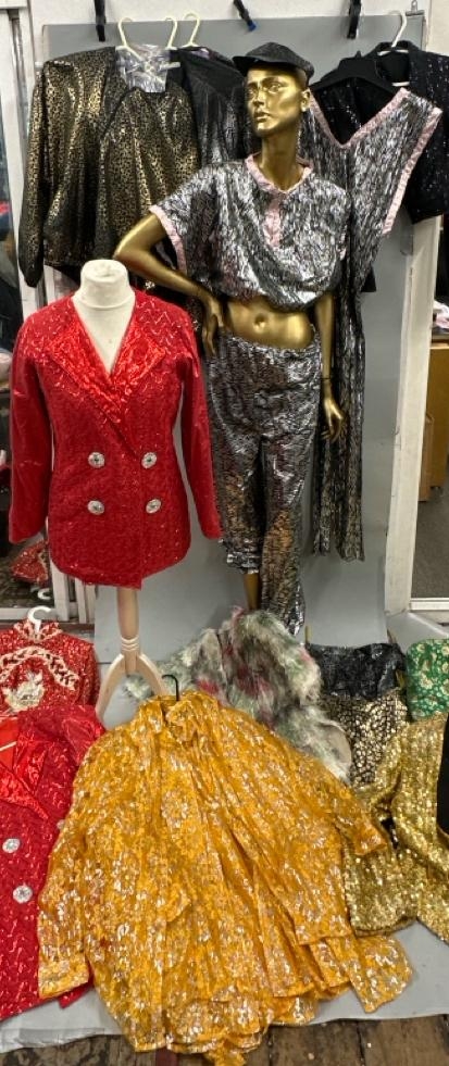 A collection of stage worn costumes to include dresses,tops, jackets, shirts and visors. / AN110