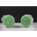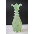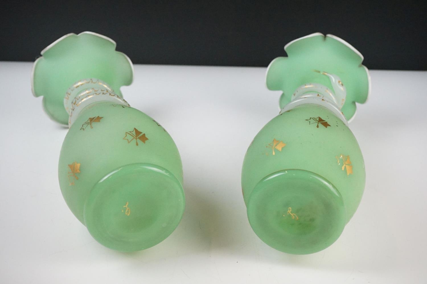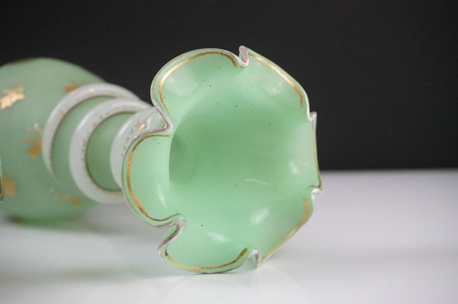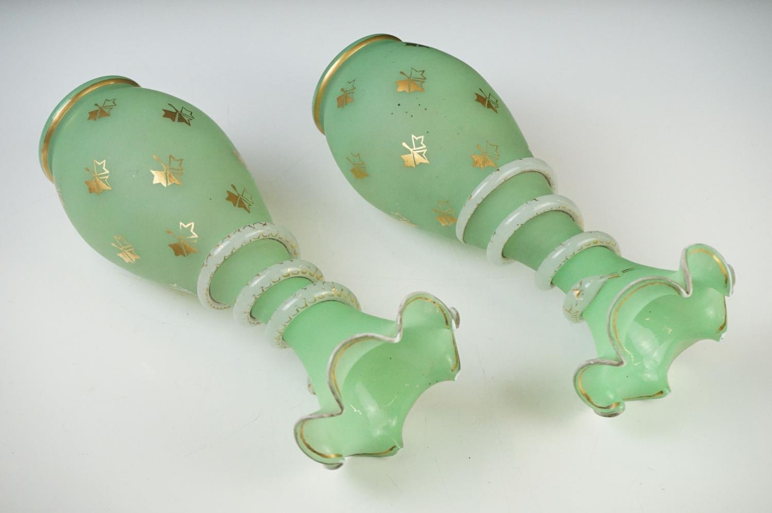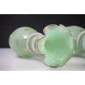Pair of Trumpet Shape Green Glass Vases, the necks with applied pale green glass entwined snakes, 27cm high