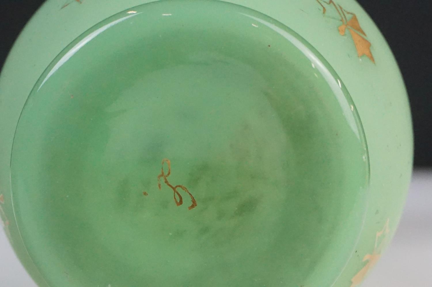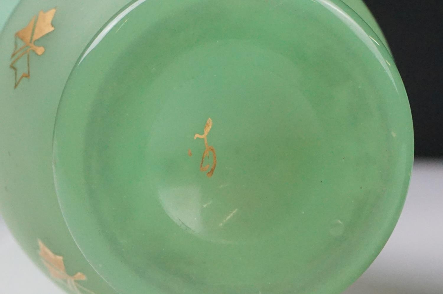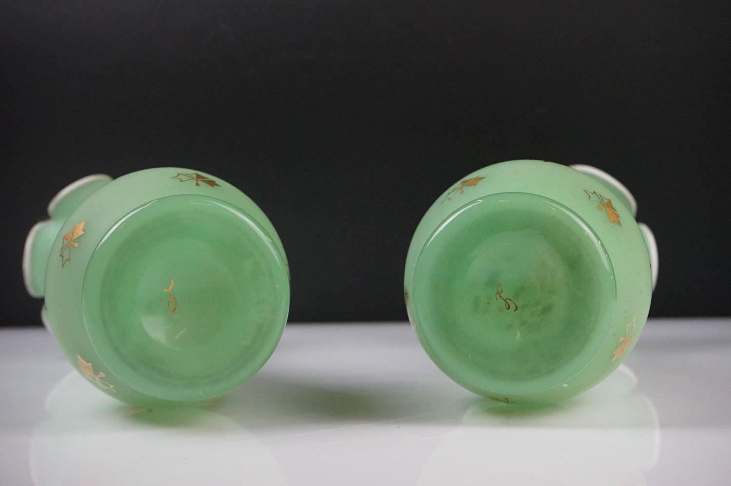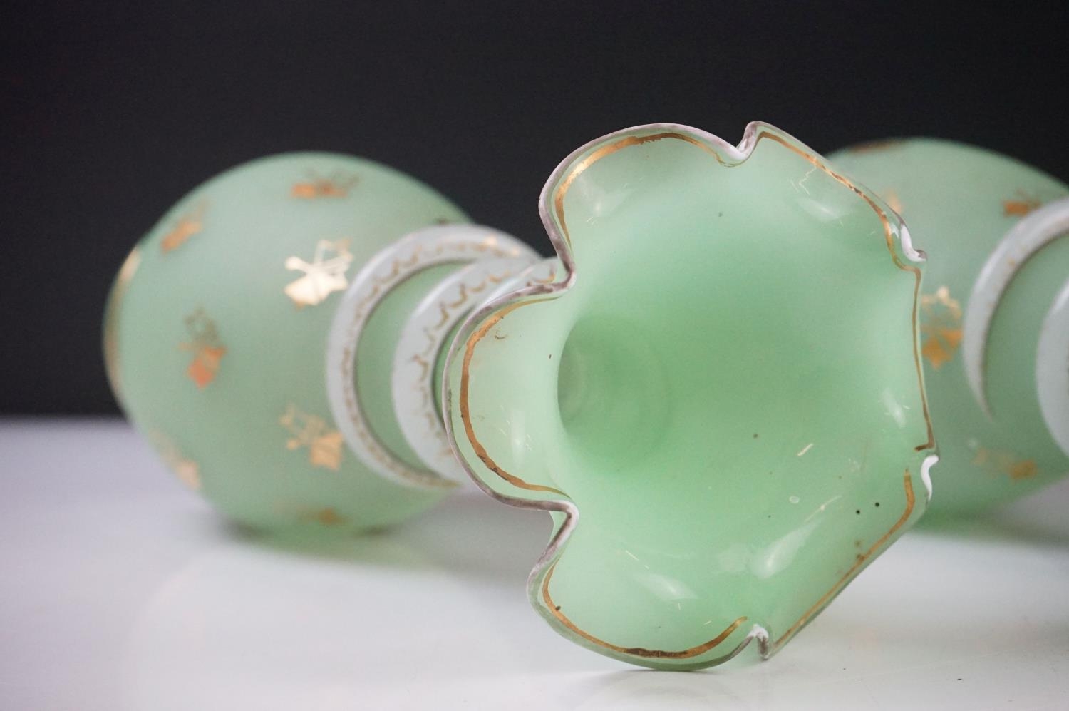 Pair of Trumpet Shape Green Glass Vases, the necks with applied pale green glass entwined snakes, 27cm high