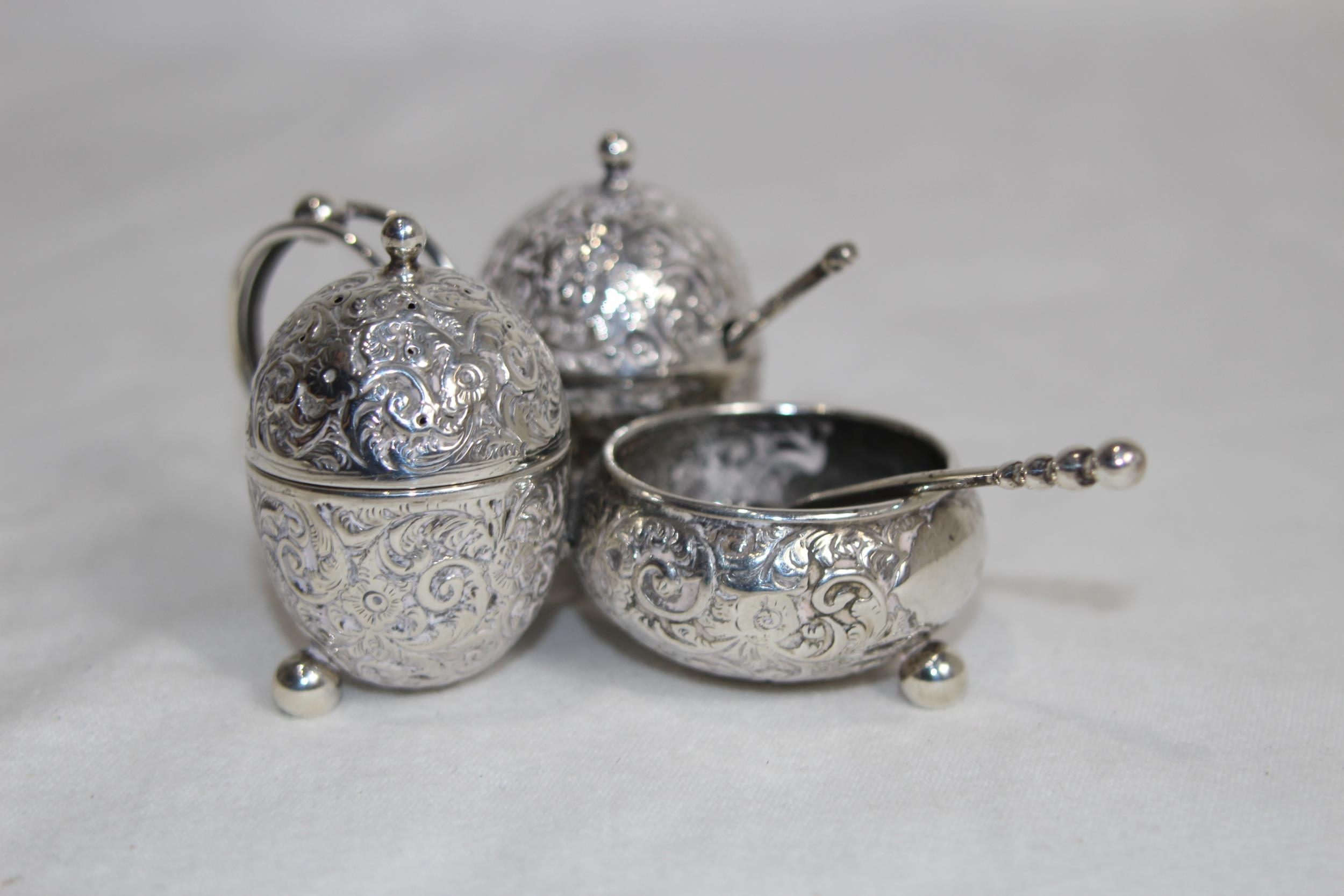 HALLMARKED SILVER CRUET SET - 93.20G - BIRMINGHAM 1887
