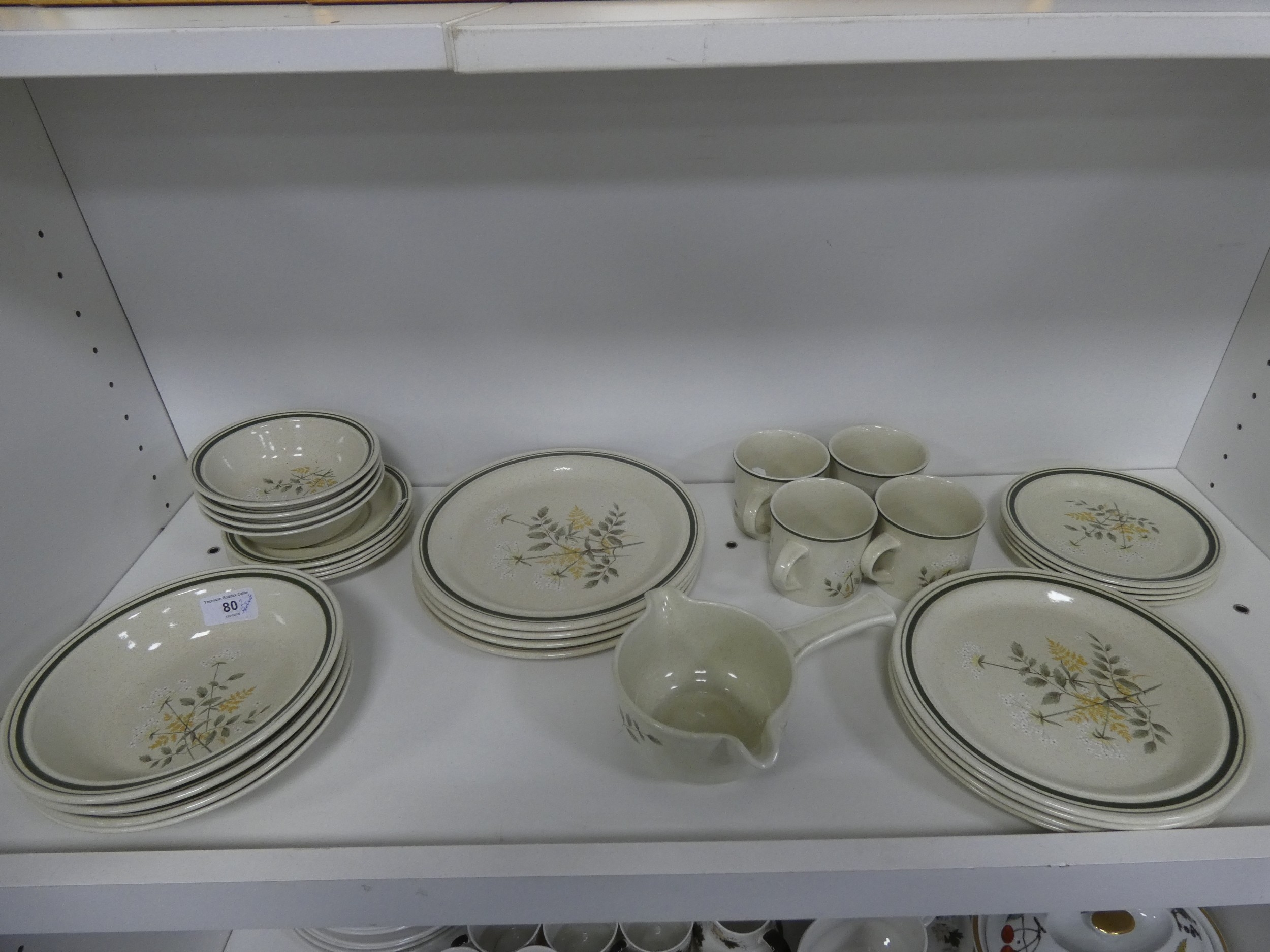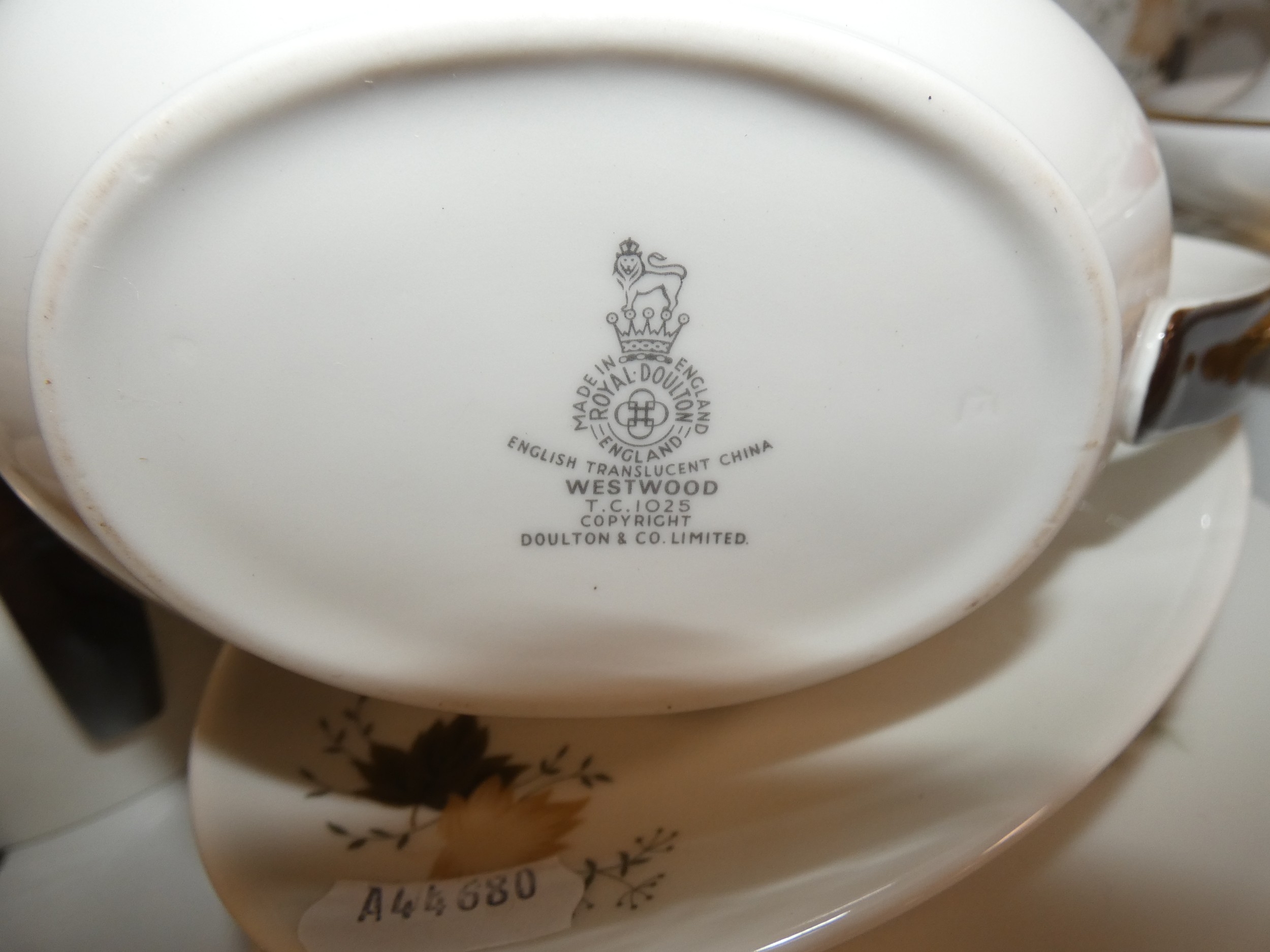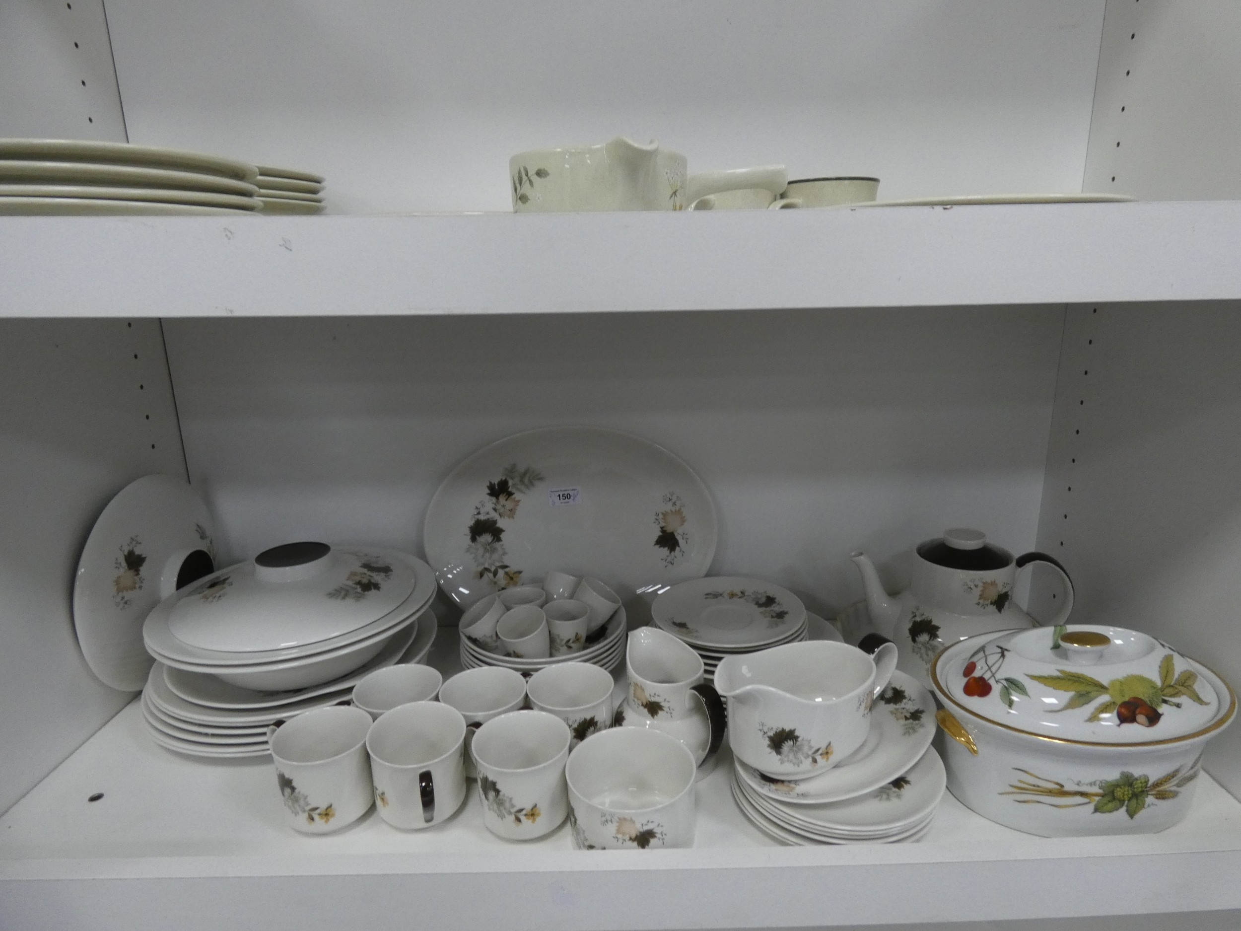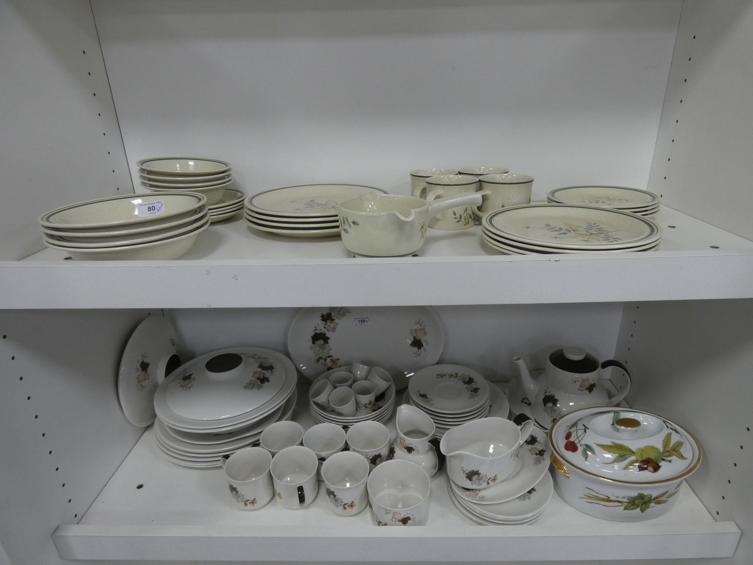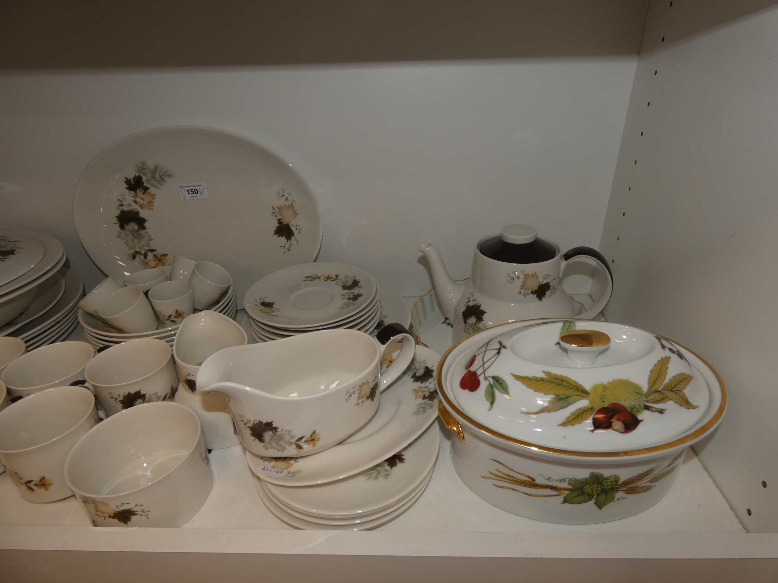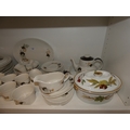 Royal Doulton Lambeth 'Will o the Wisp' part dinner set, Royal Doulton 'Westwood' pattern part tea and dinner set, and a Royal Worcester 'Evesham' pattern tureen and cover (two shelves).