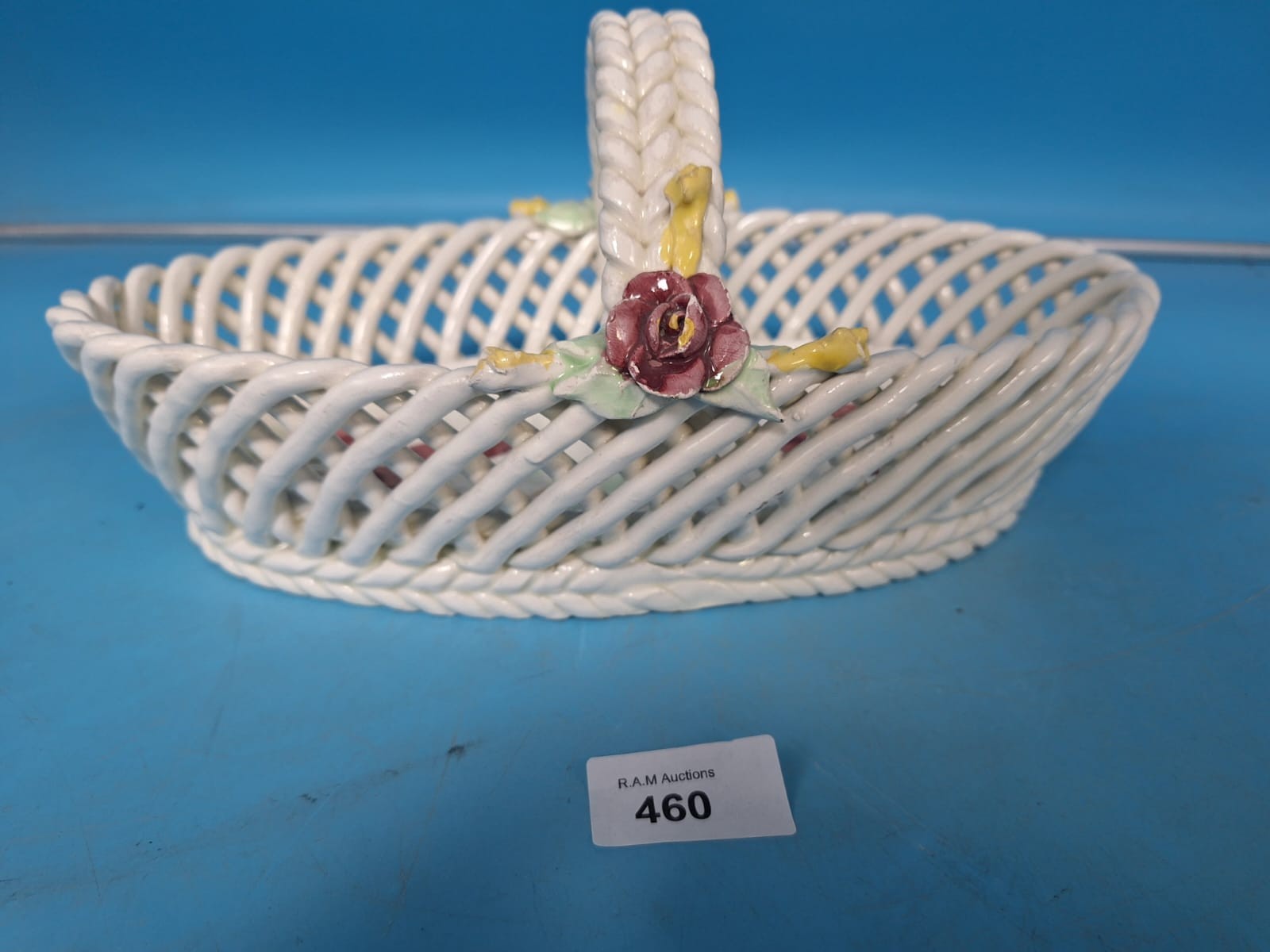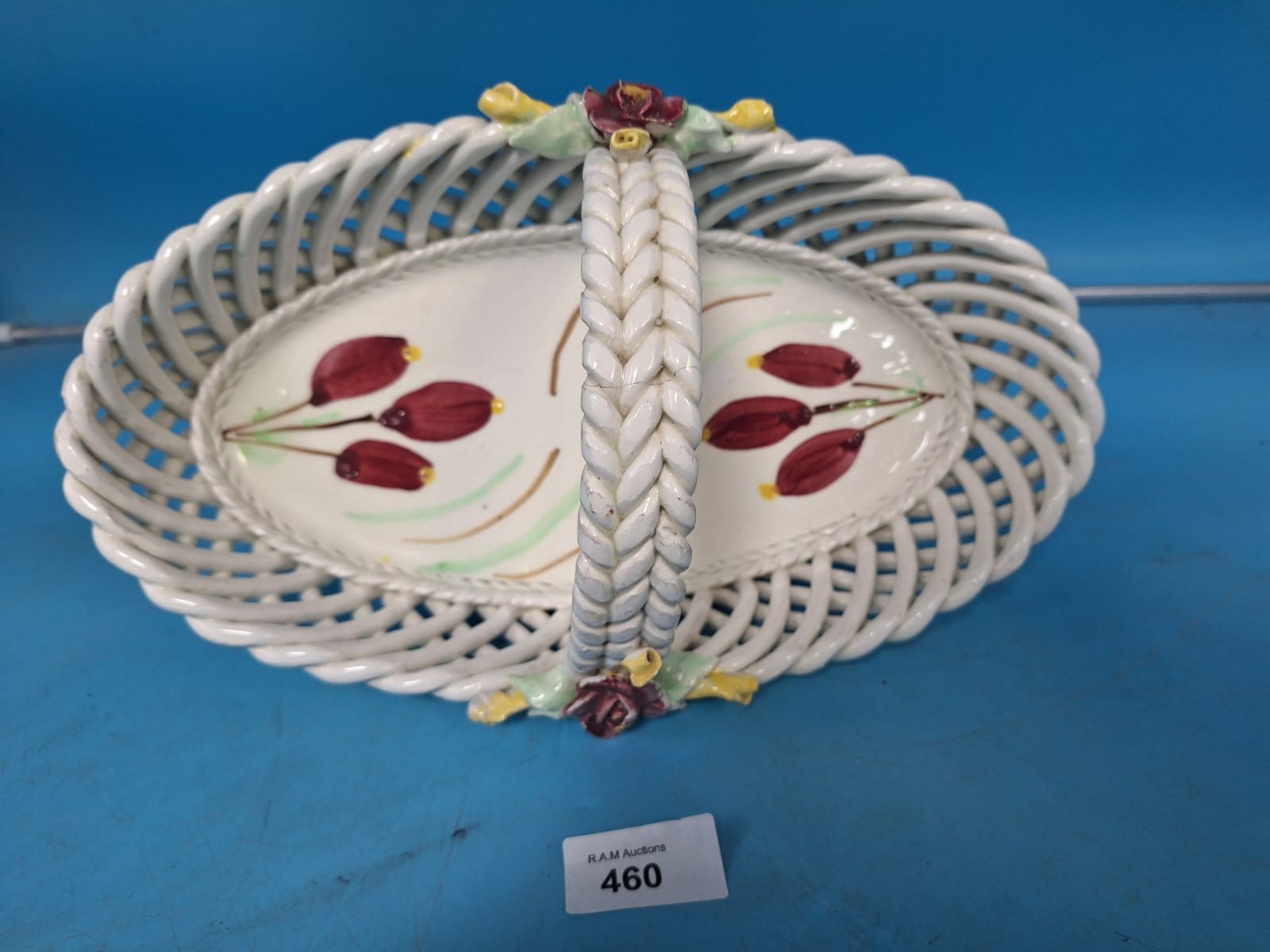 Vintage Italian Majolica Fret Basket 12" x 7" x 5"