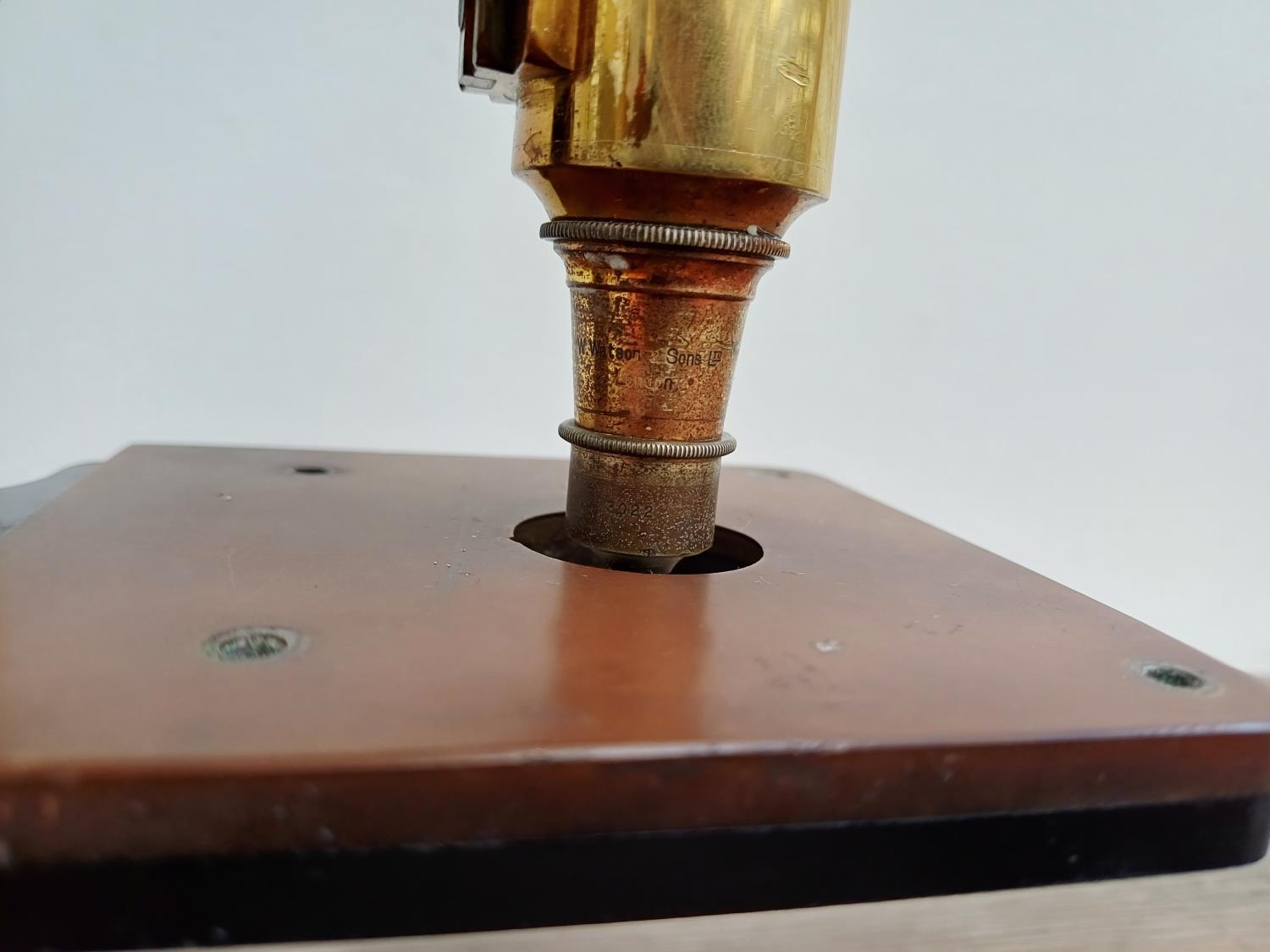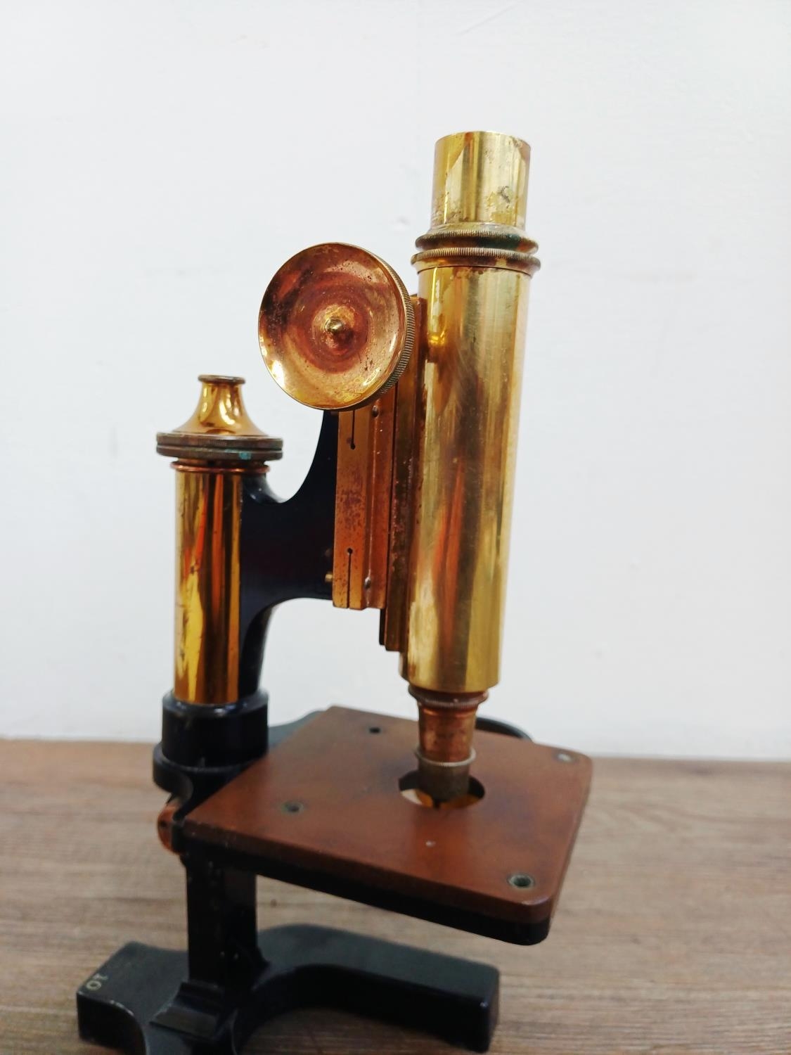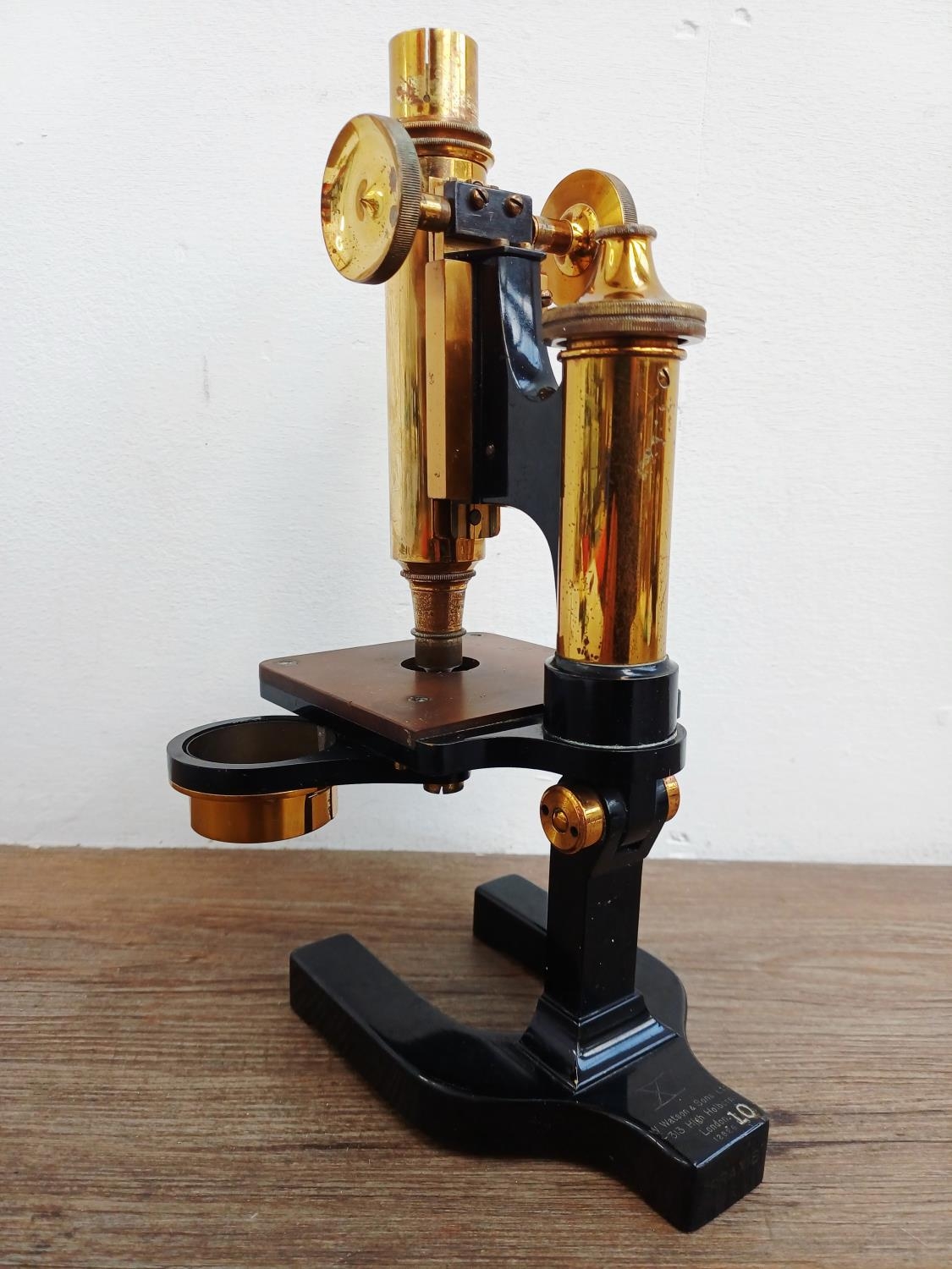 An early 20th century W. Watson & Sons Ltd. Praxis microscope fitted with Watson objective lens for spares or repair