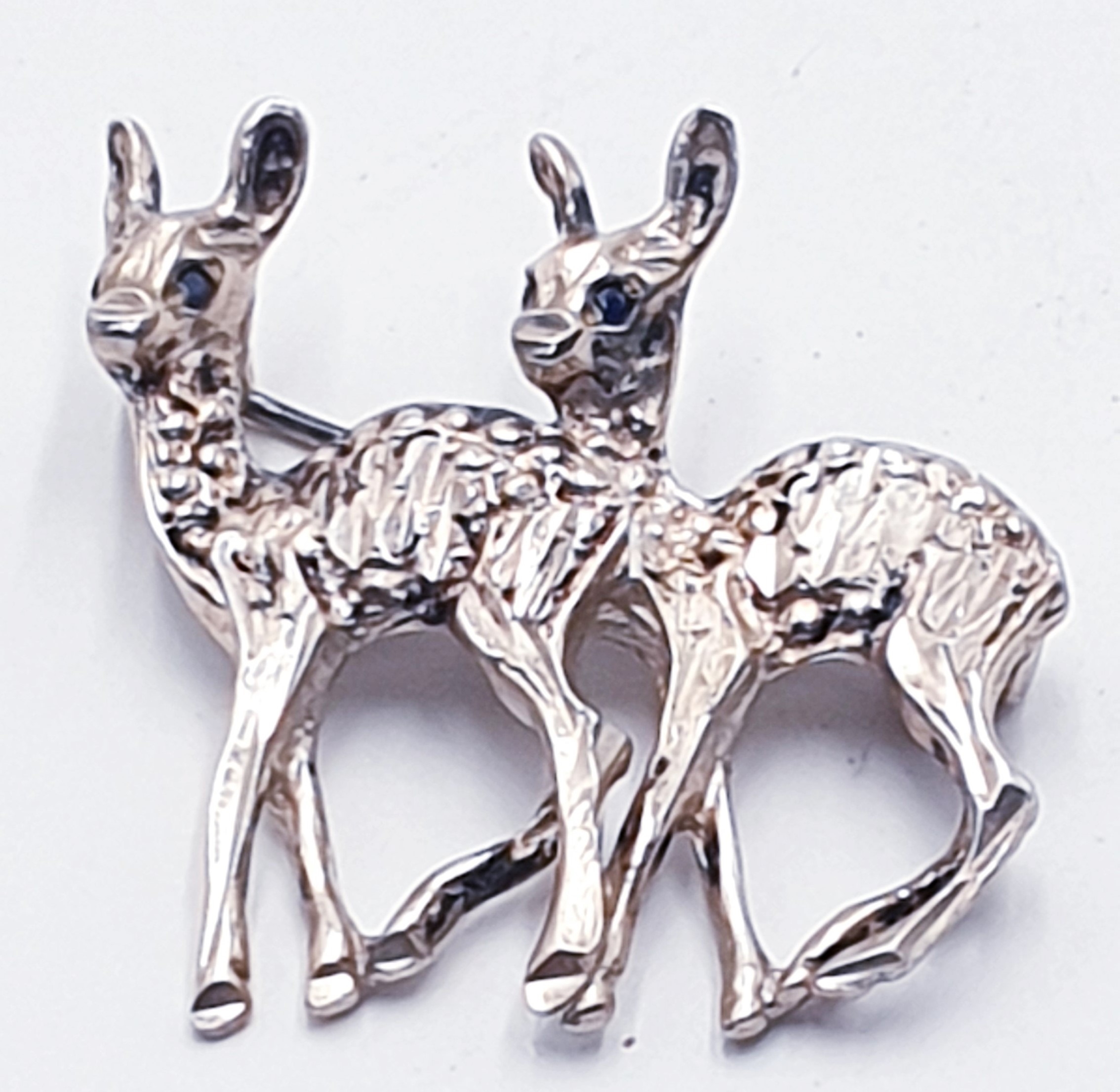 SILVER (Stamped Silver) 3cm BROOCH FASHIONED AS FAWNS