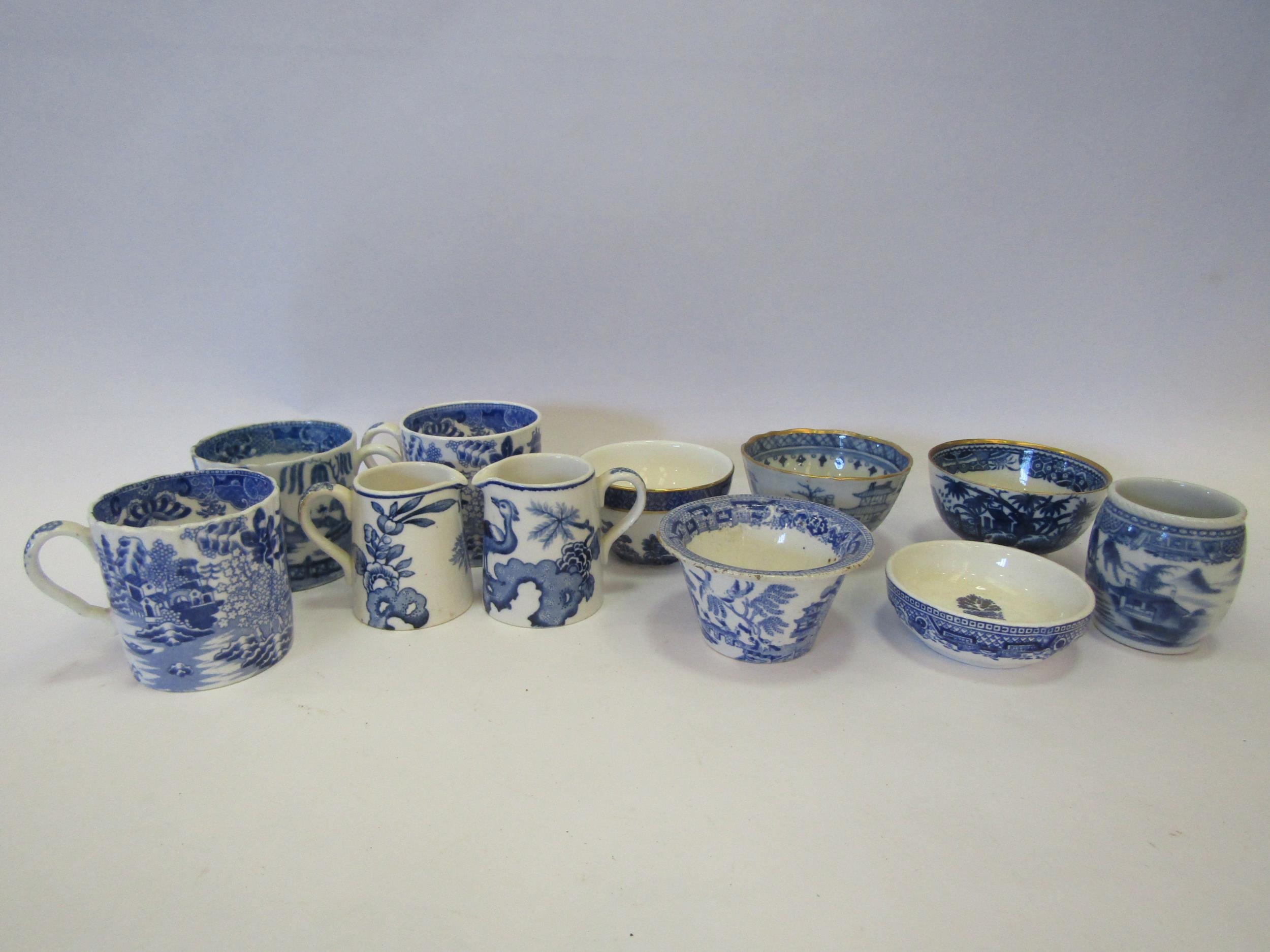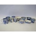 A quantity of Victorian "Willow" pattern ceramics to include Spode coffee cans, tea bowls, Wood & Sons miniature jugs, etc. (11)