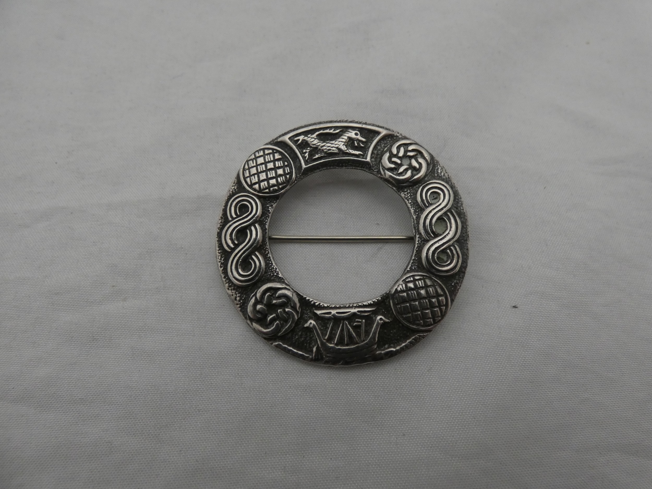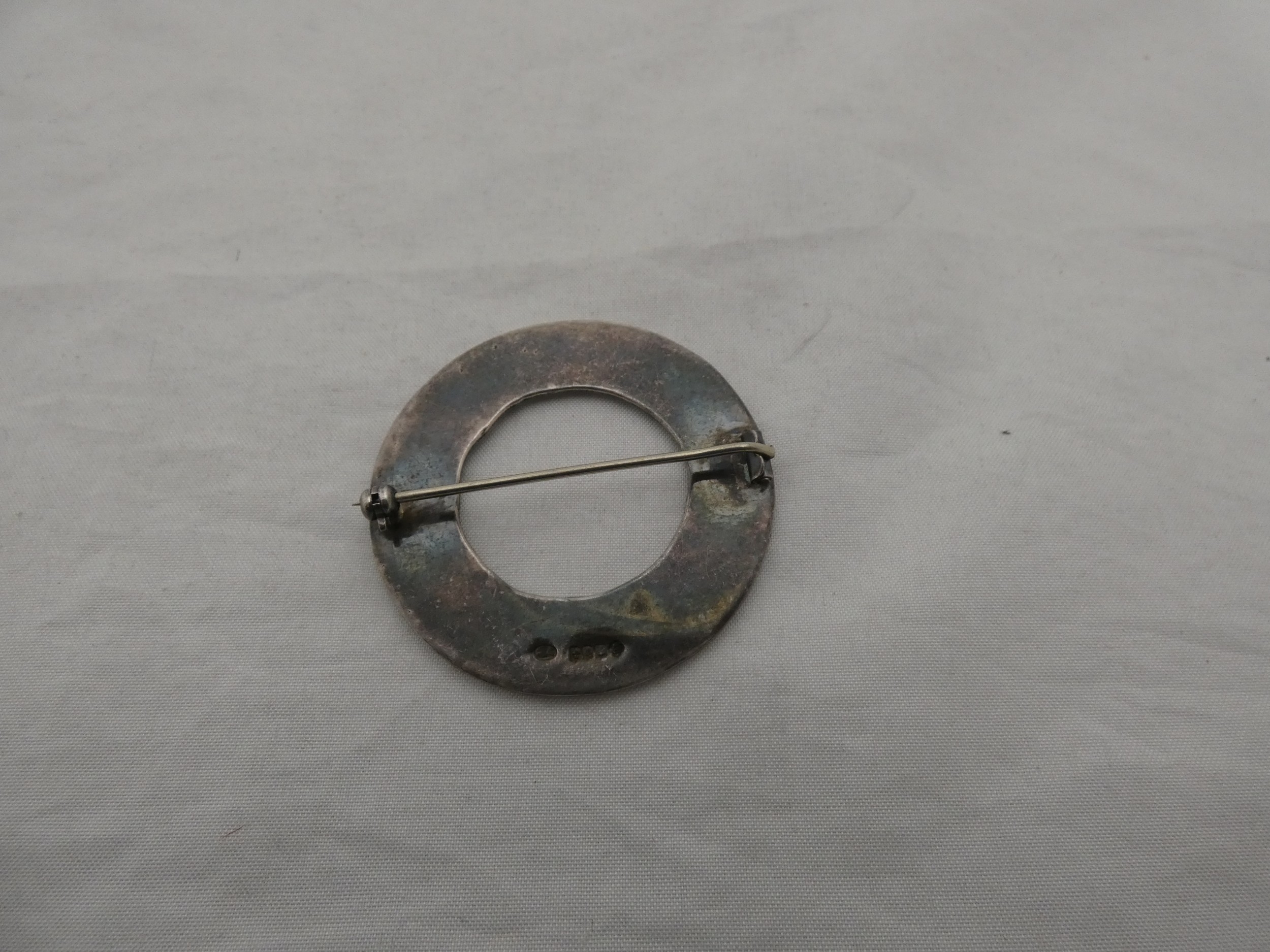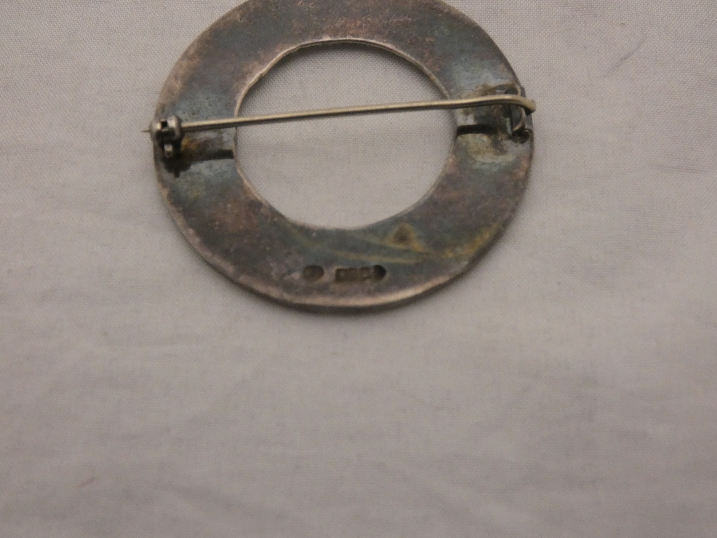 Iona Celtic silver penannular brooch designed by Robert Allison, marks for Glasgow.