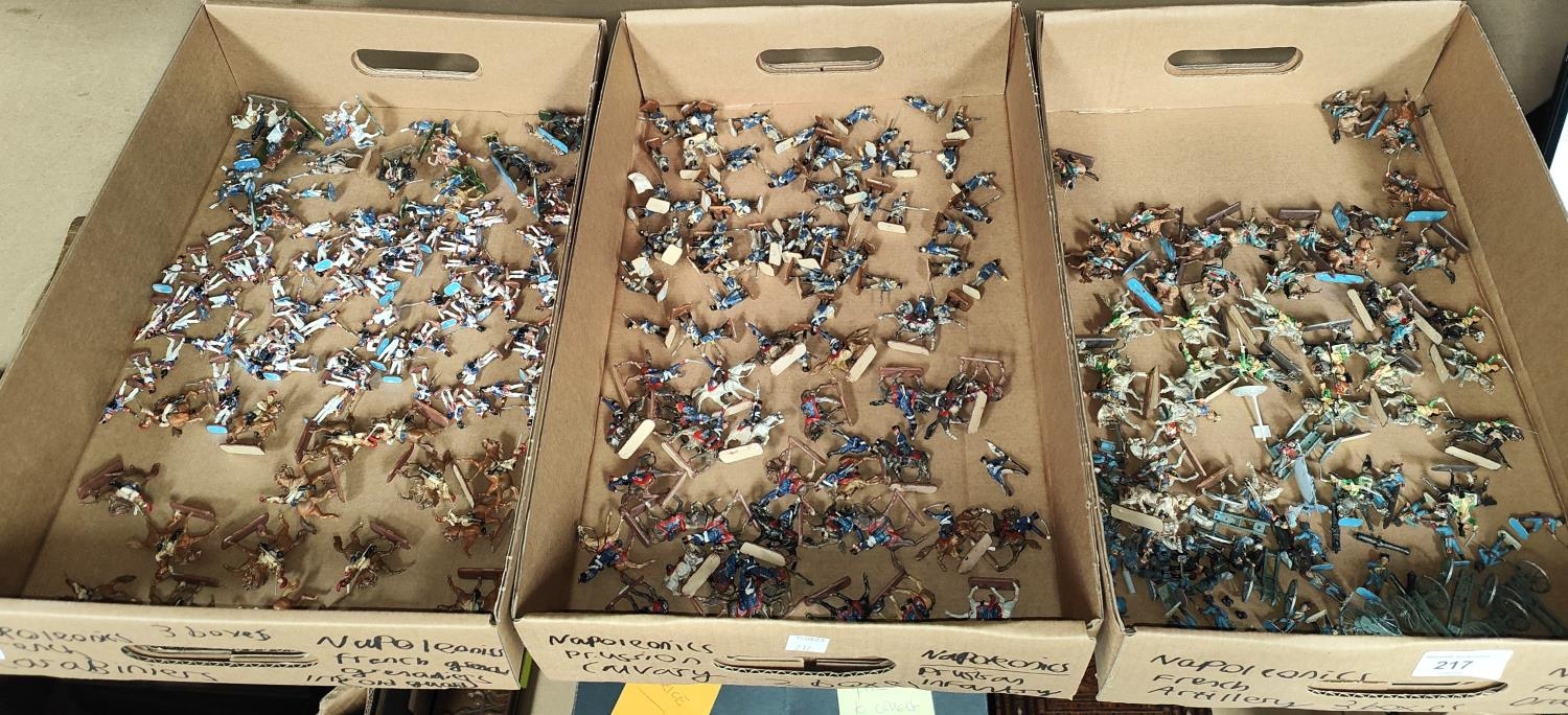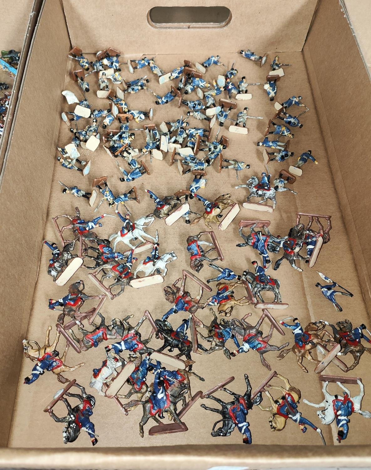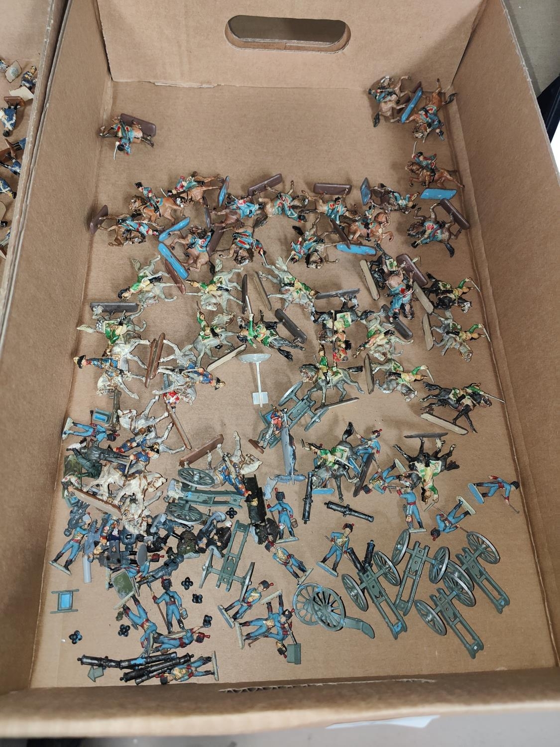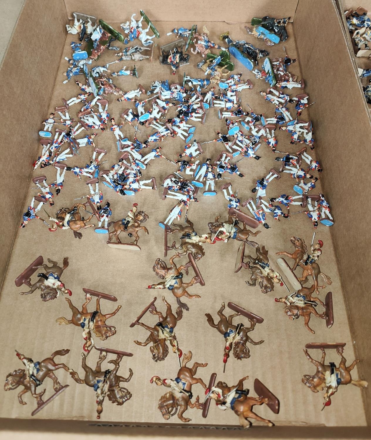 A large collection of painted plastic military table top miniatures, Napoleonic's, 1:72 20mm scale, including French Dragoons, Artillery etc