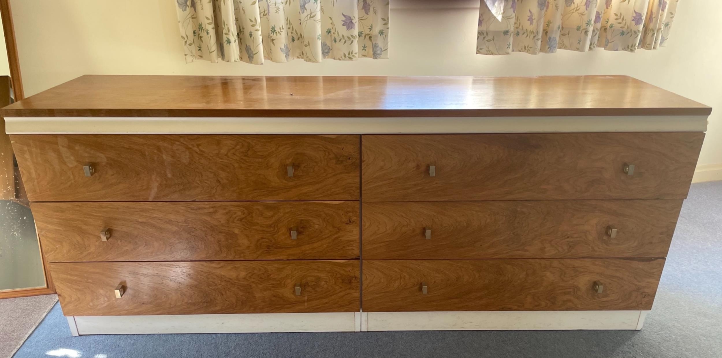 A double low chest of drawers (163cm L x 46cm D x 84cm H)