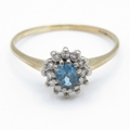 9ct Gold Diamond and Topaz Halo Ring (1.7g) Size P 1/2