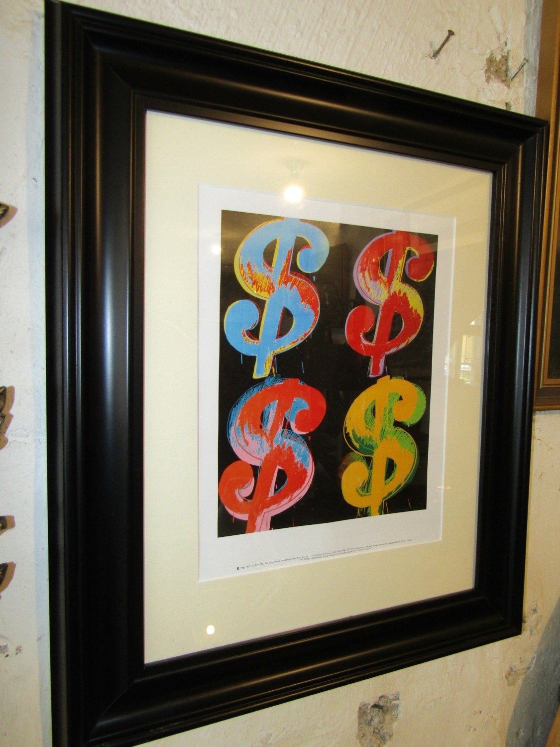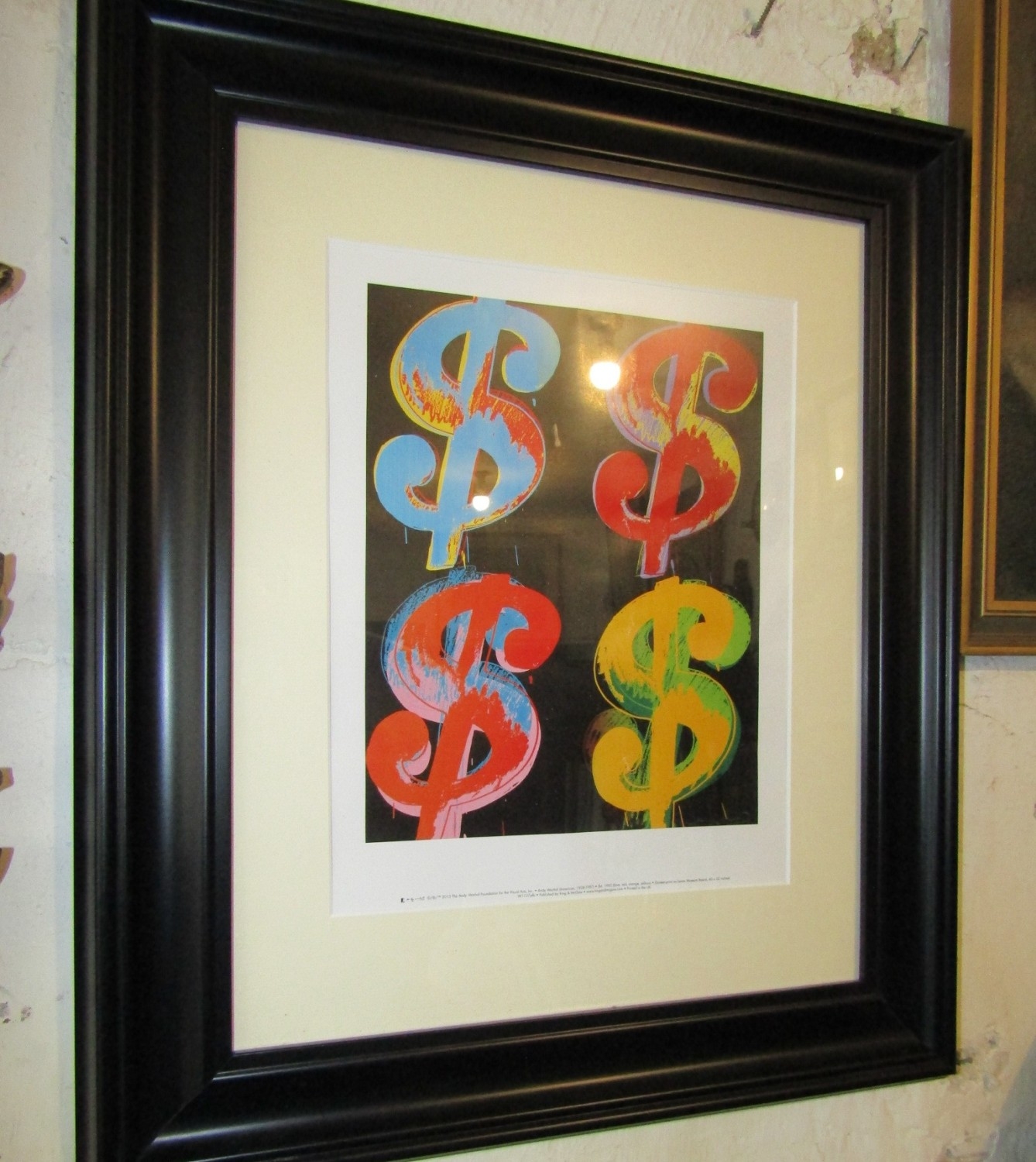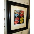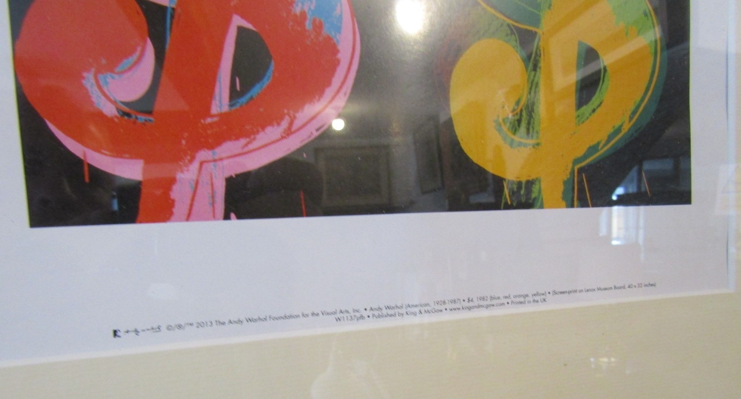 Andy Warhol Exhibition Advertising Lithograph Dollar Signs Framed and Glazed Approximately 22 Inches High x 18 Inches Wide