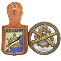 Post War French Artillery Ordnance Supply Corps beret badge and pocket badge. P&P Group 2 (£18+VAT for the first lot and £3+VAT for subsequent lots)