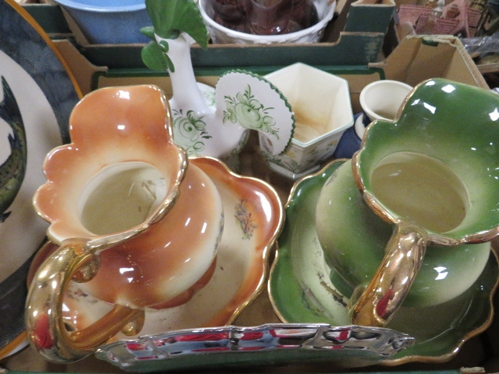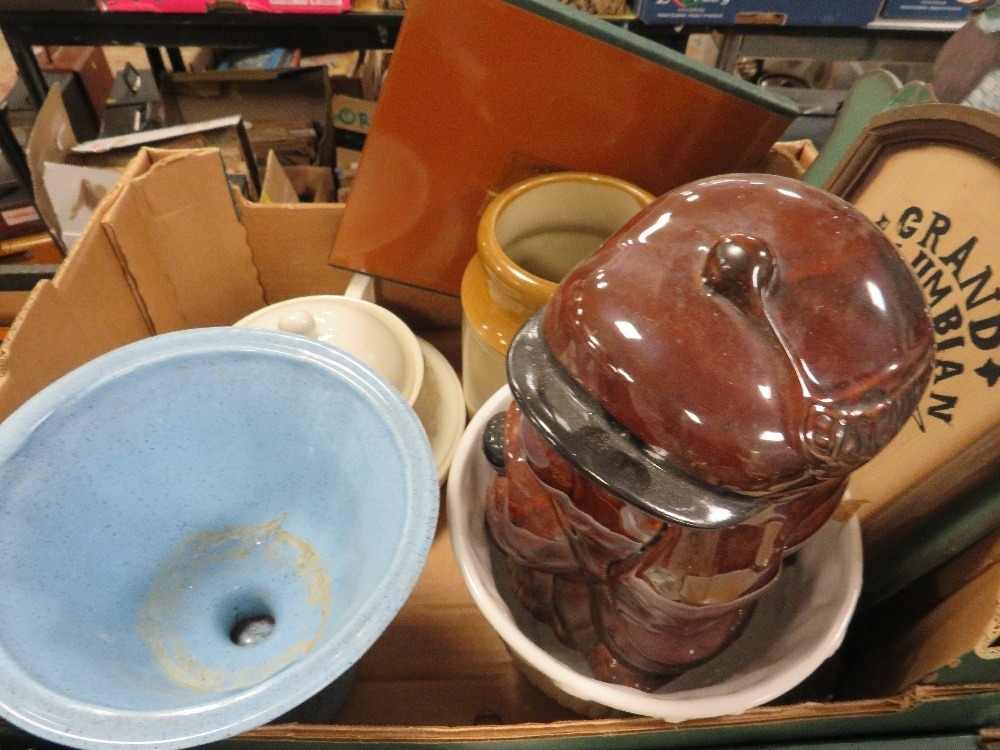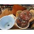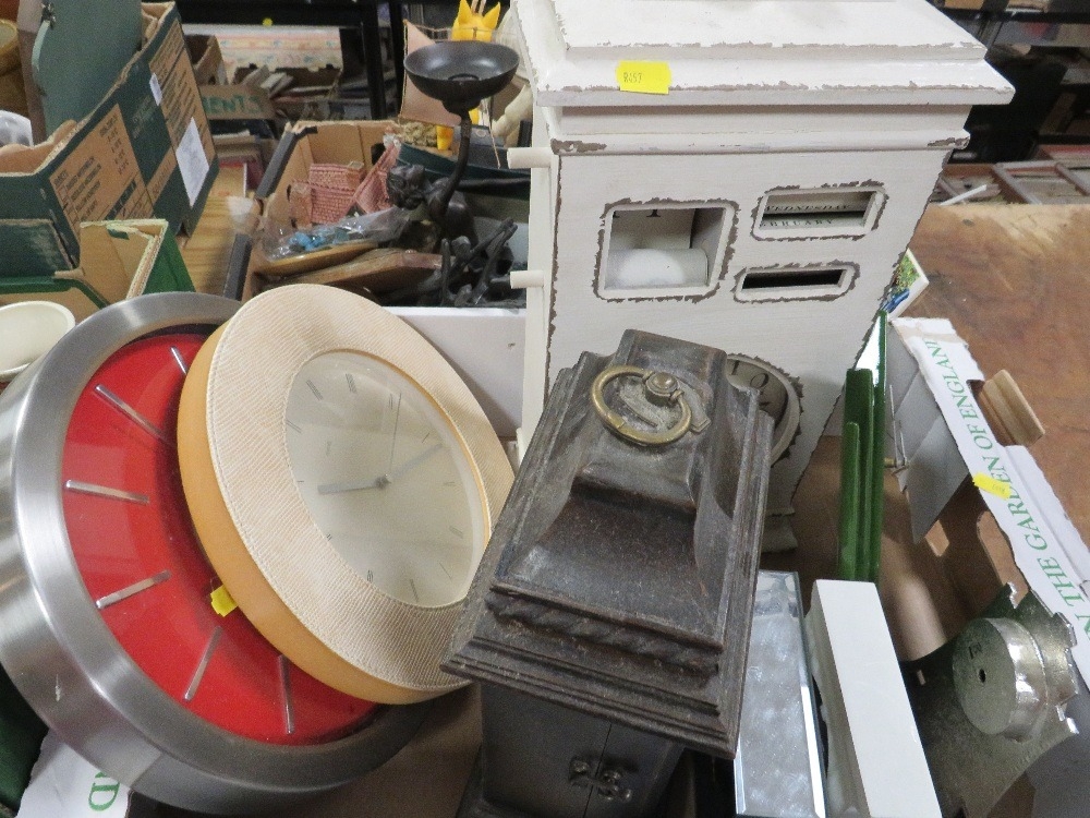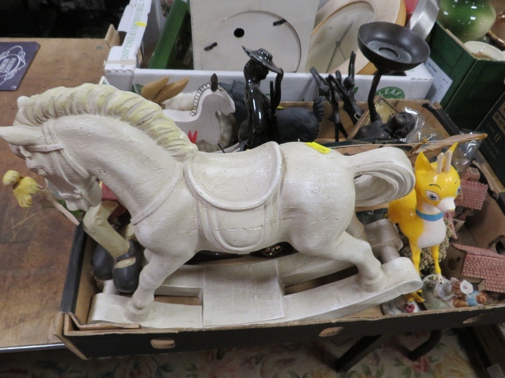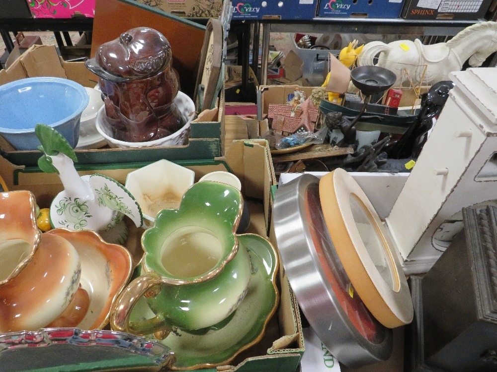 Four trays of ceramics and collectables to include a tray of clocks