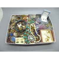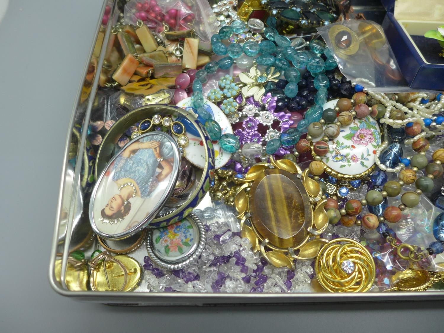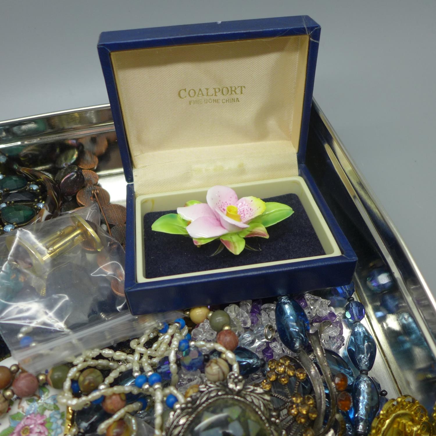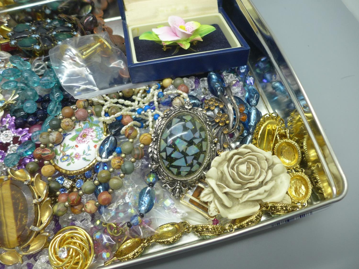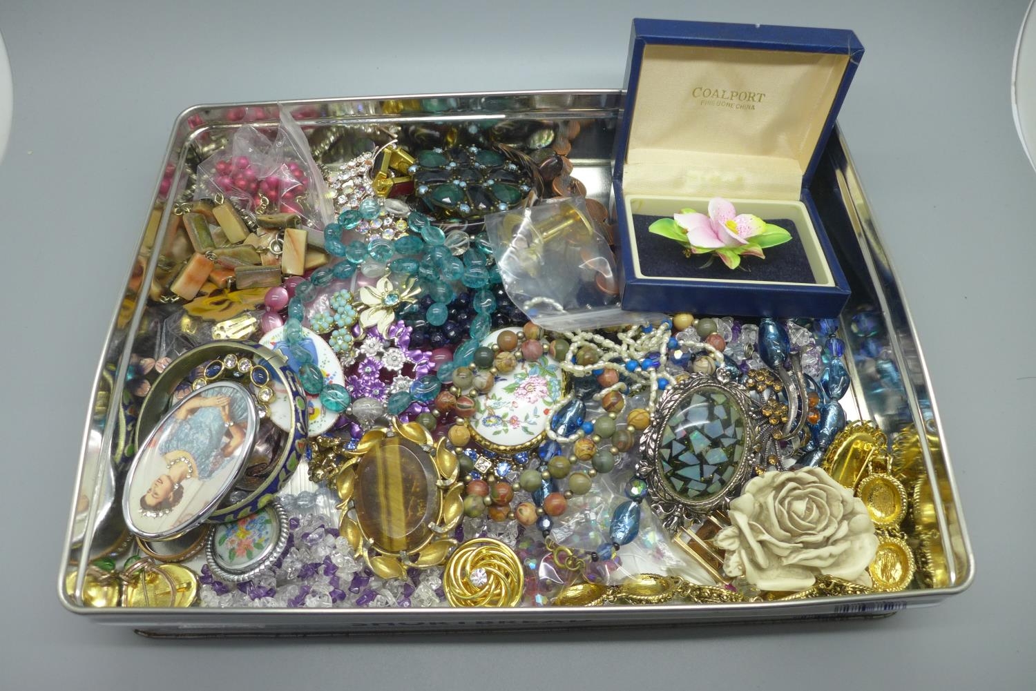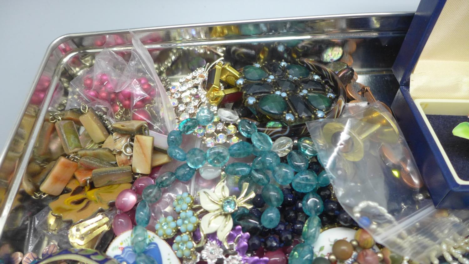 A collection of costume jewellery including beaded necklaces, brooches, etc.