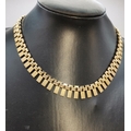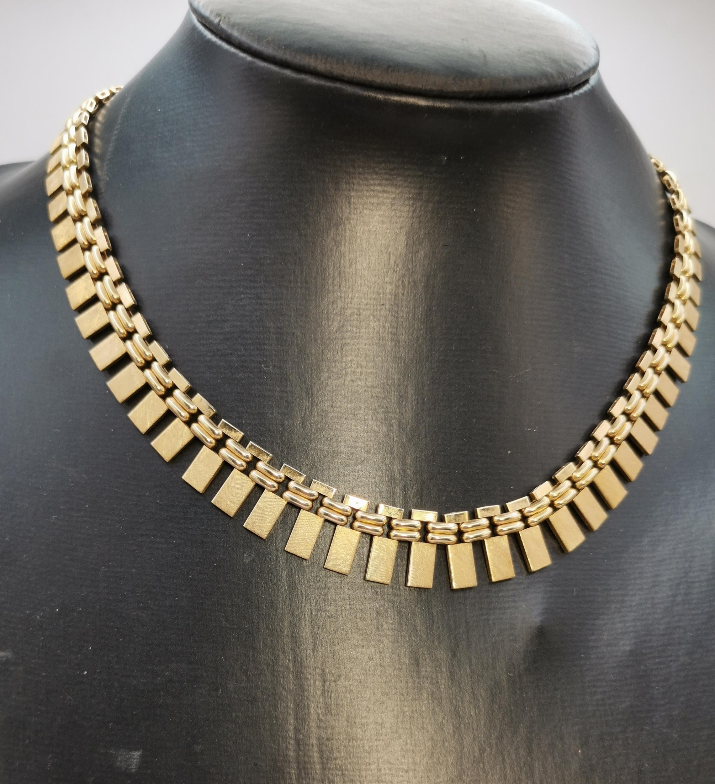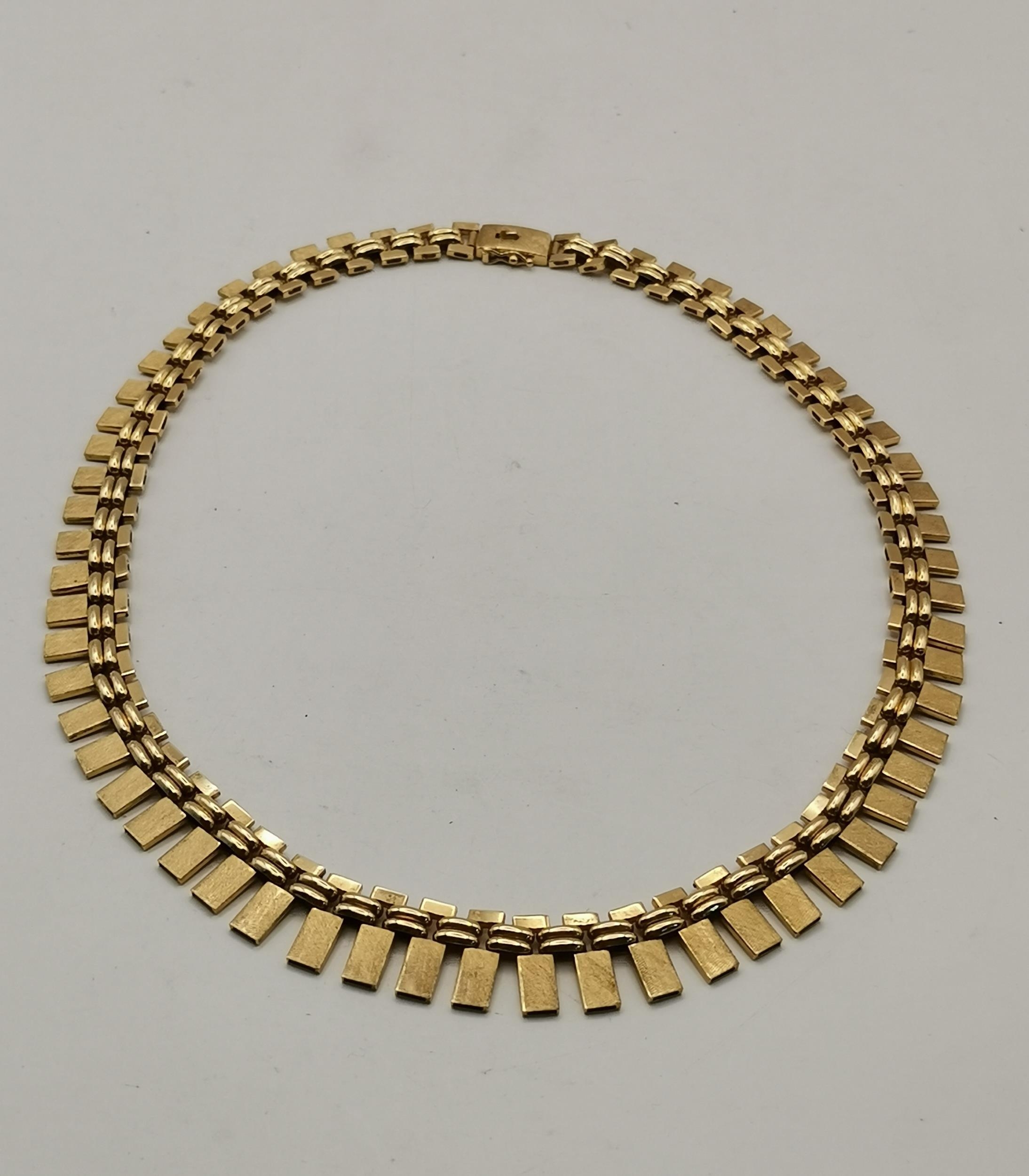 An 18 carat gold textured block fringe necklace, hallmarked 18-750. 44cm long, 49.4g