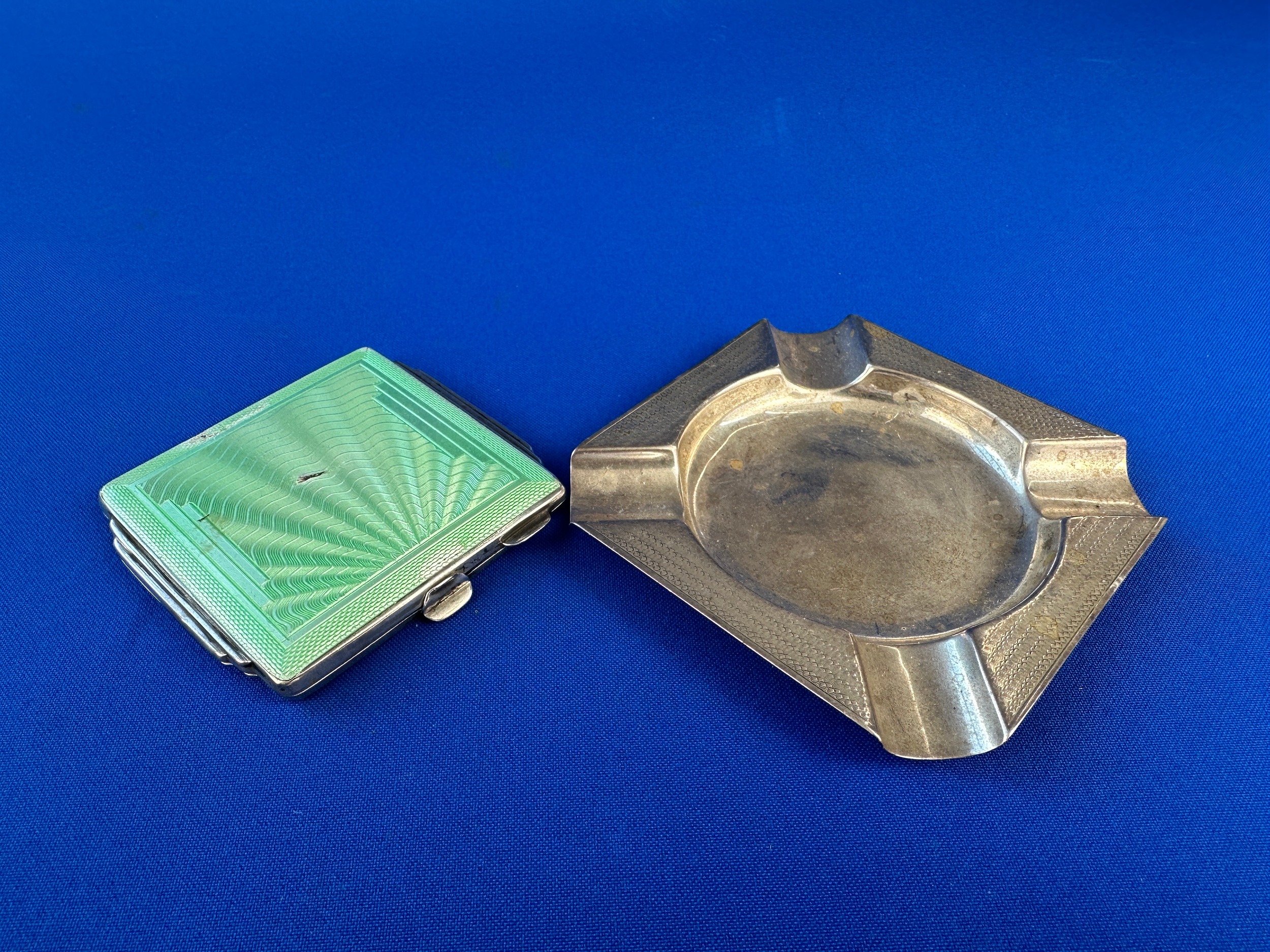 Guilloché Silver Compact a/f and 1920's Silver Ashtray - Compact 84g gross, Ashtray 45g