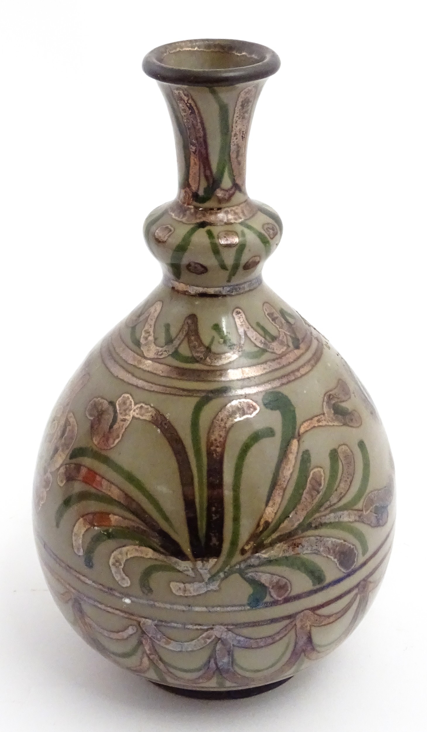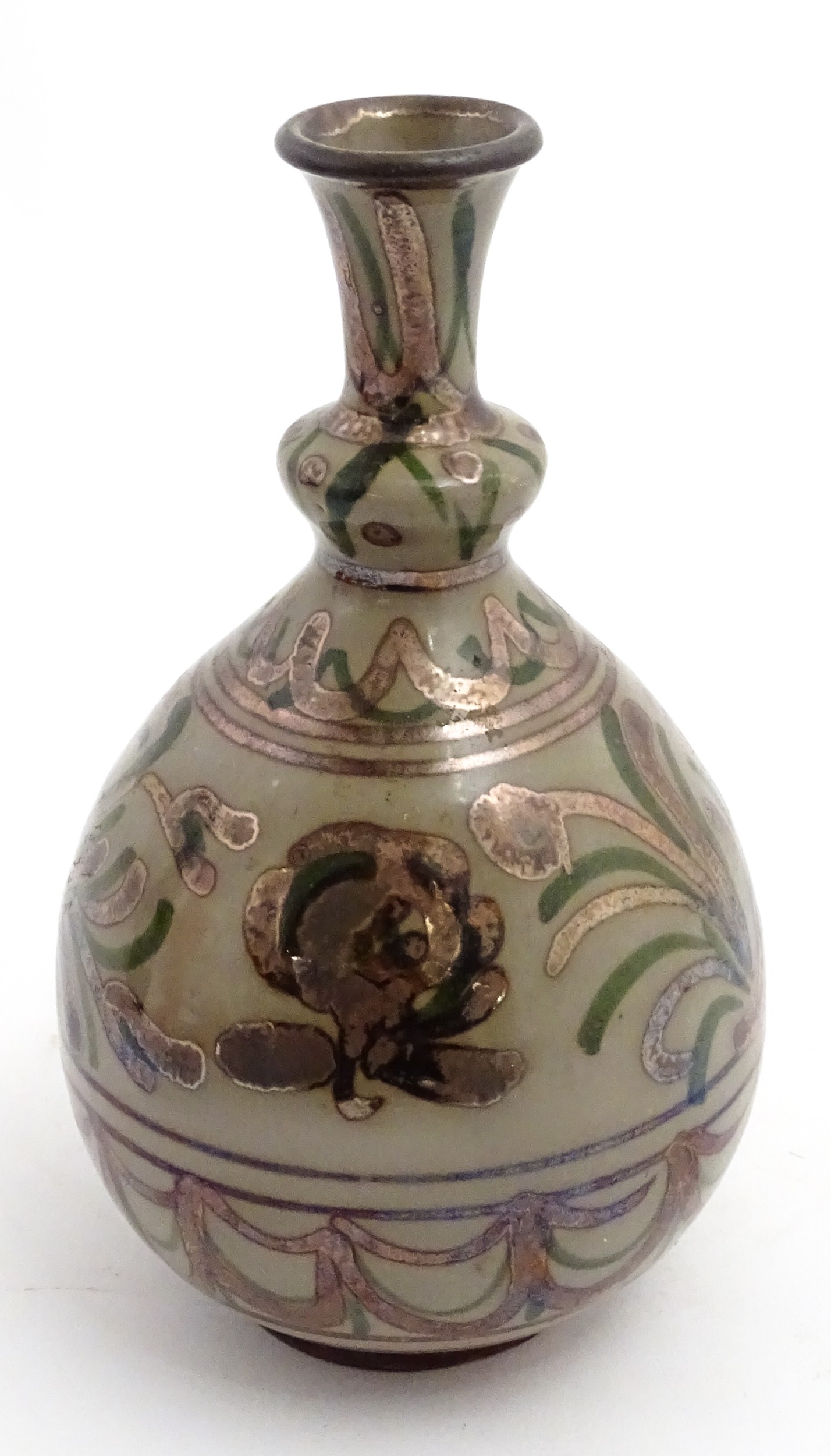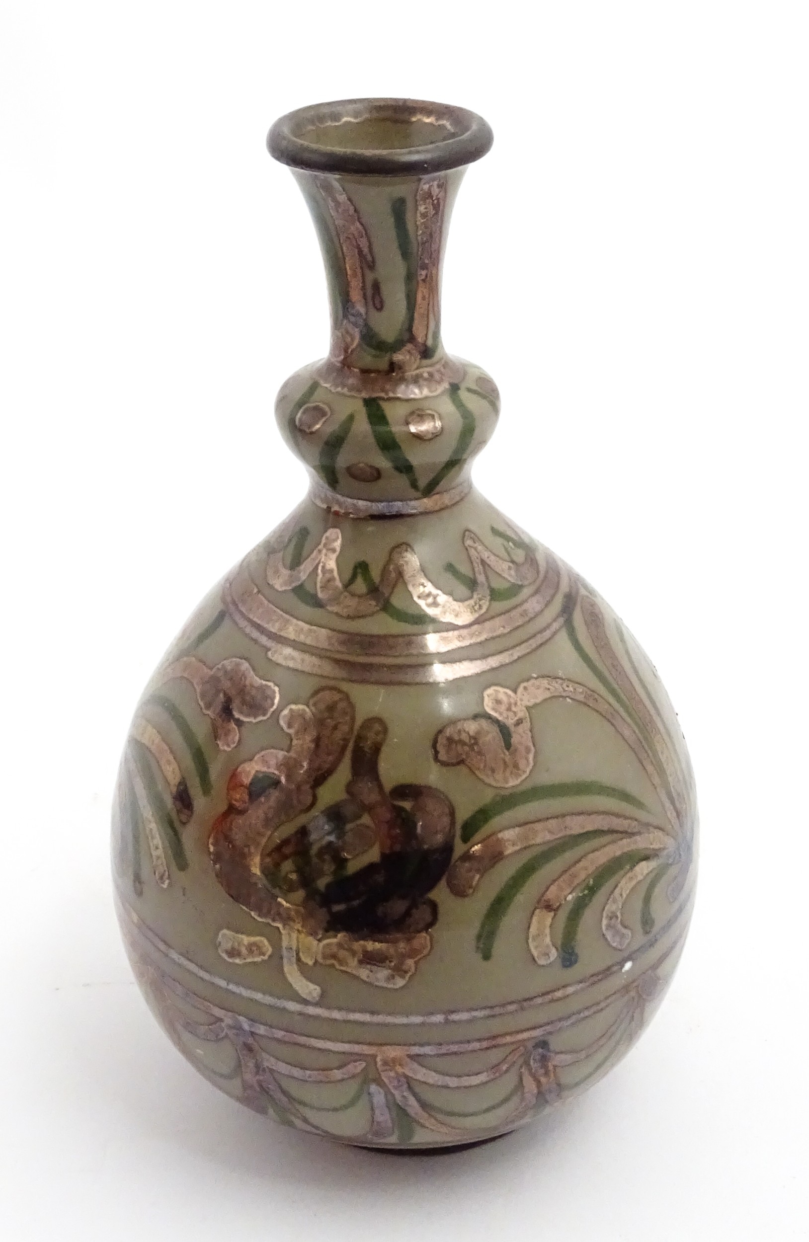 A Continental vase with knop detail to neck with banded lustre decoration. Approx. 7 1/4" high