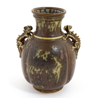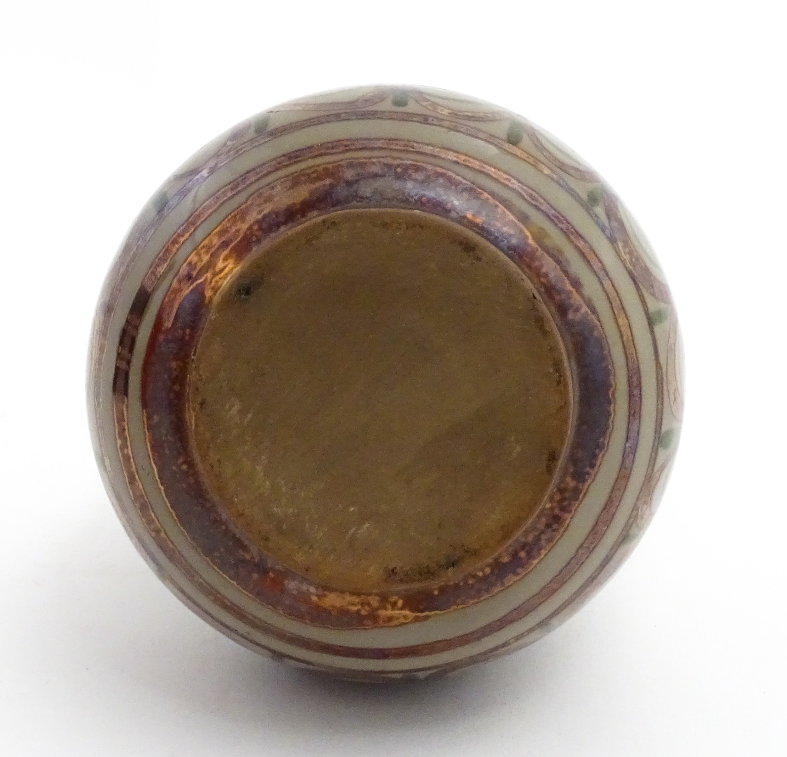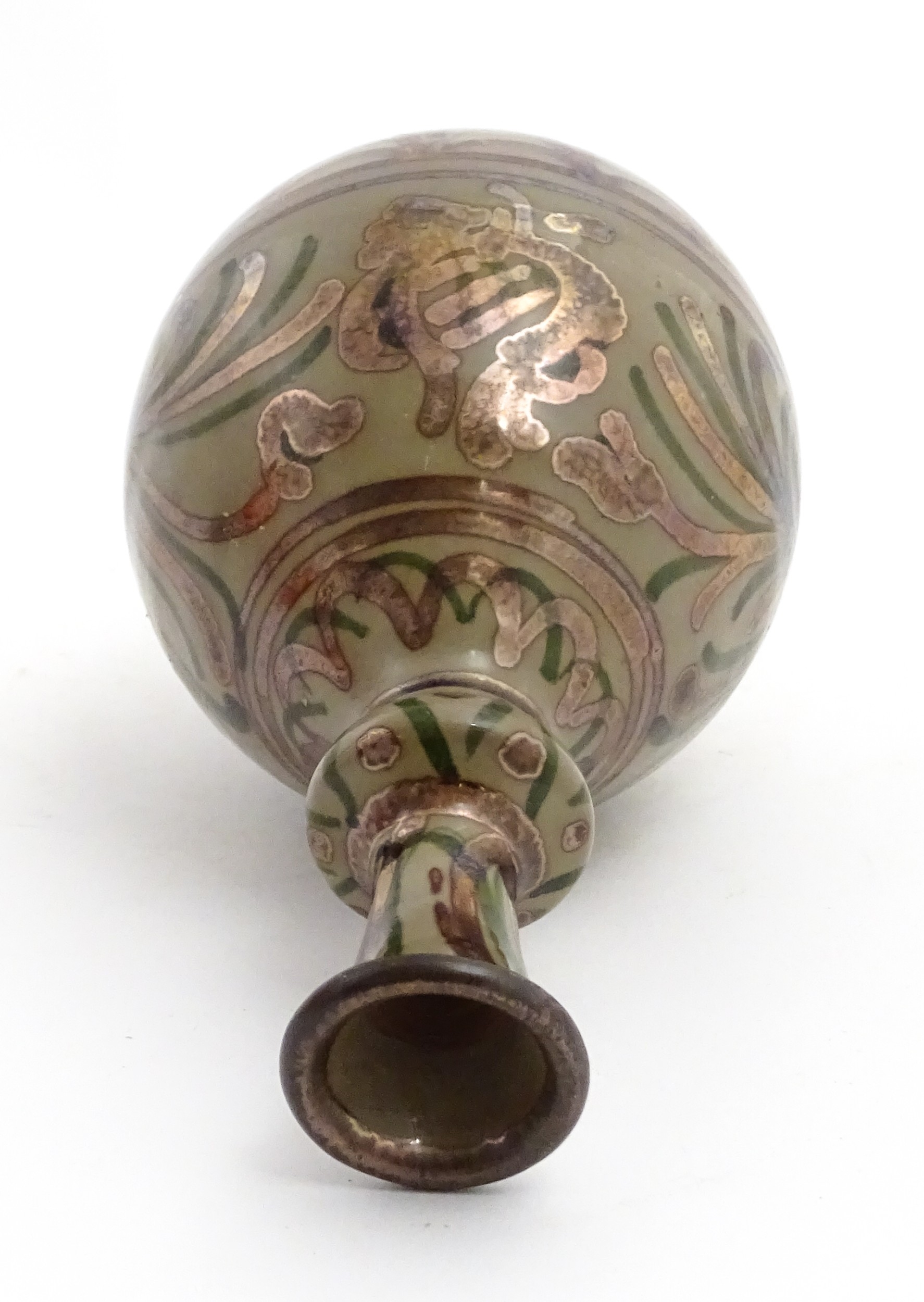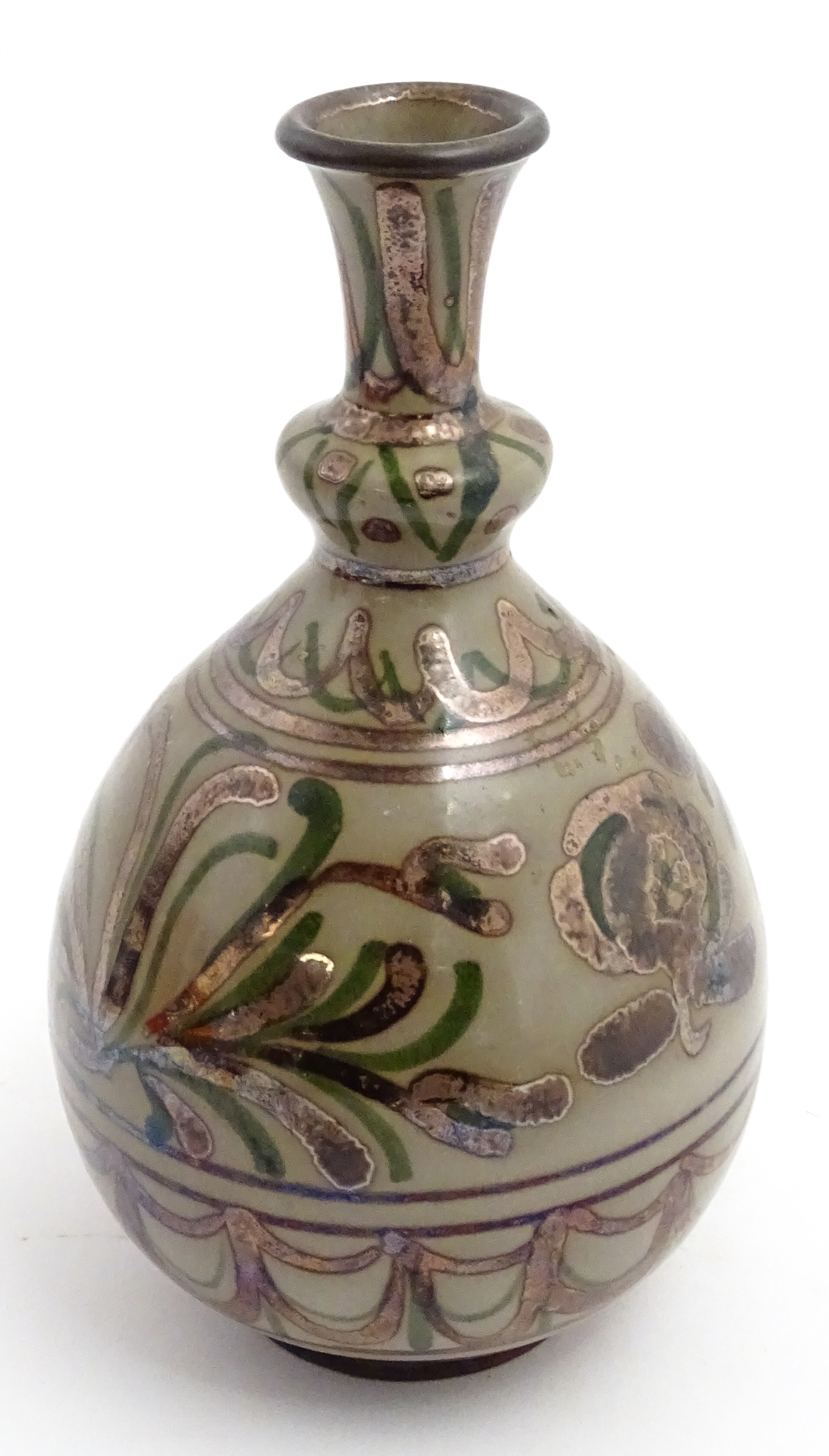 A Continental vase with knop detail to neck with banded lustre decoration. Approx. 7 1/4" high