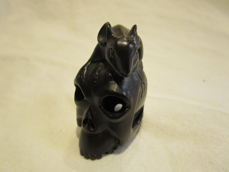 Netsuke - Signed - Wood - Mouse on Skull