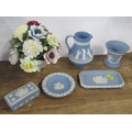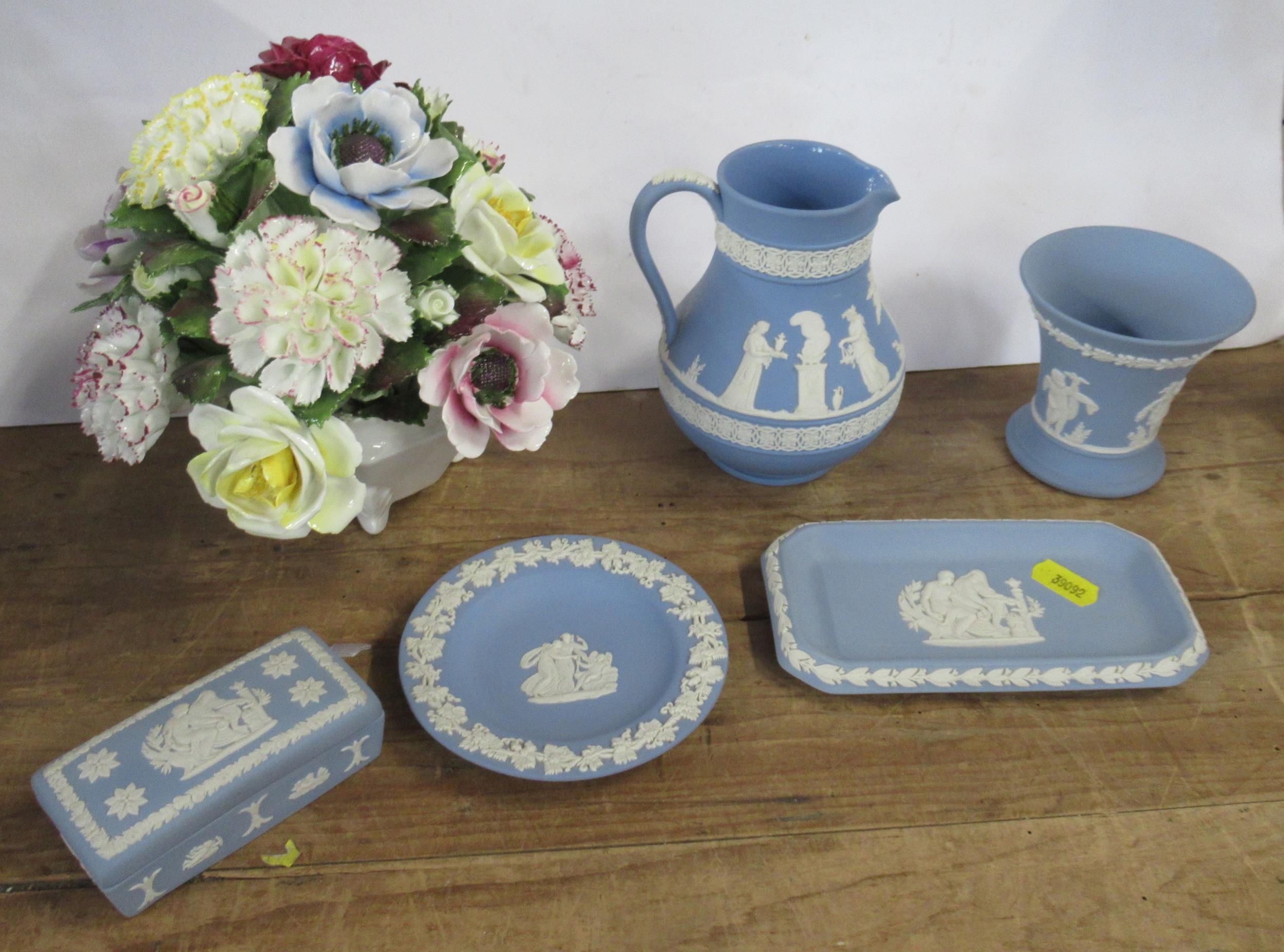 Five Wedgwood Jasper pieces, together with a Royal Doulton posy vase ornament