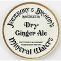 MANCHESTER JEWSBURY & BROWN COASTER. 5.8ins diam. Ceramic counter top coaster attractively transferred Jewsbury & Browns/ Dry/ Ginger Ale.... Mineral Waters. Base p.m. PRATT/ FENTON. Overall crazing, short hairline to right, most gold band intact. Never seen another?