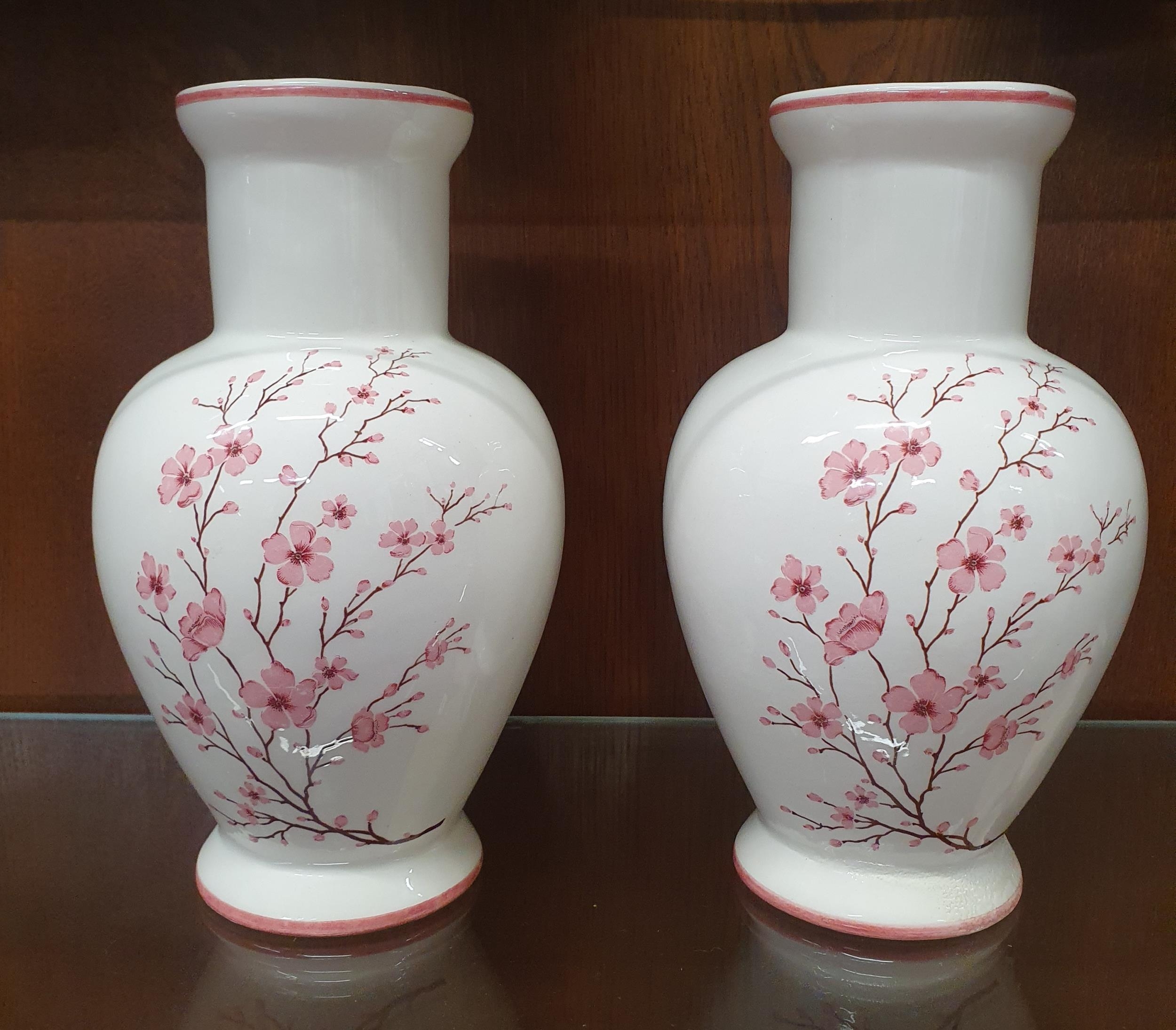 A pair of Cream ground Vases. H 22 cm approx. Sold due to non collection.