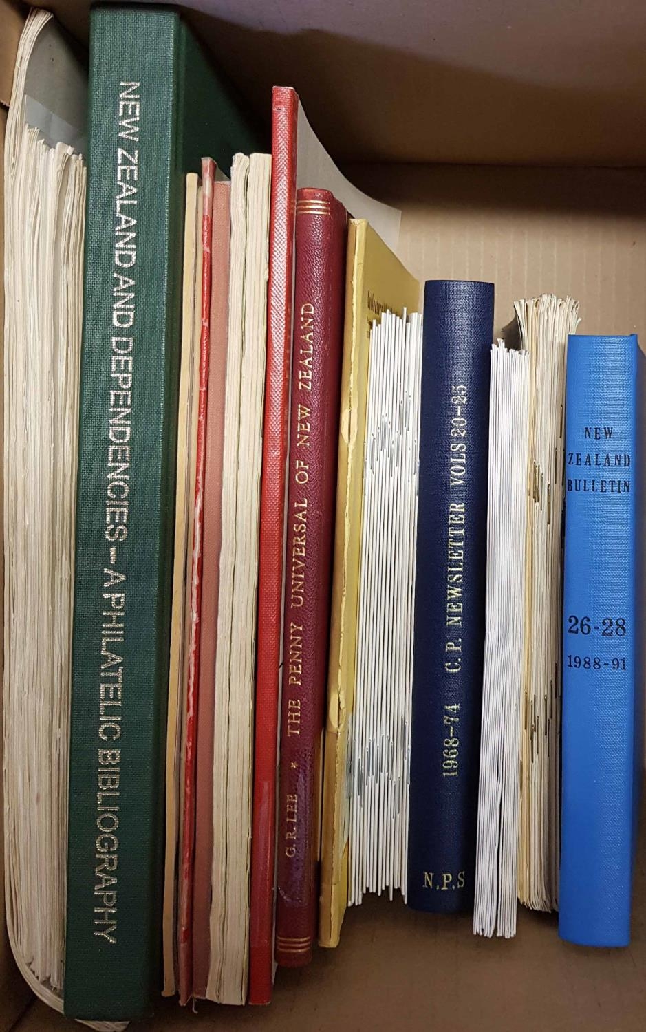 NEW ZEALAND: One box containing books and a bundle of journals. Noted: Bibliography by Beech, Berry & Startup, Penny Universal by Lee. (10 + bundle)Cross Reference: NEW ZEALAND