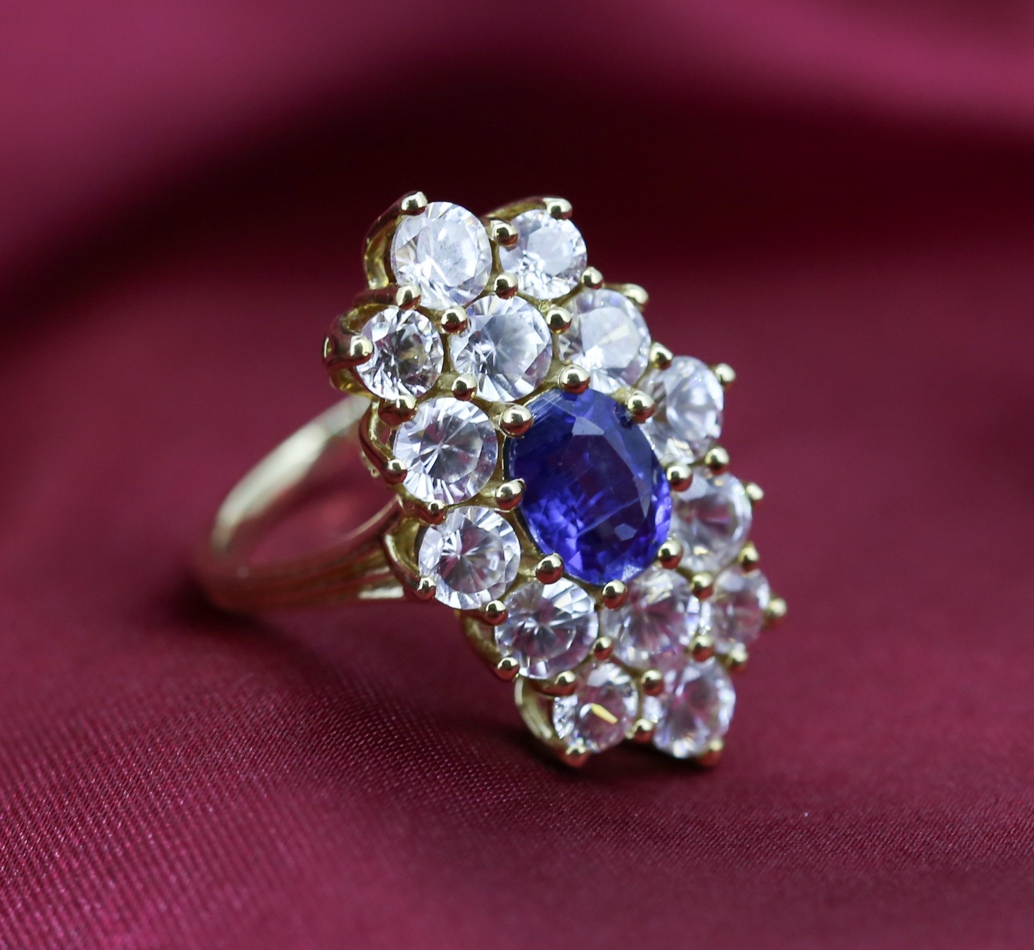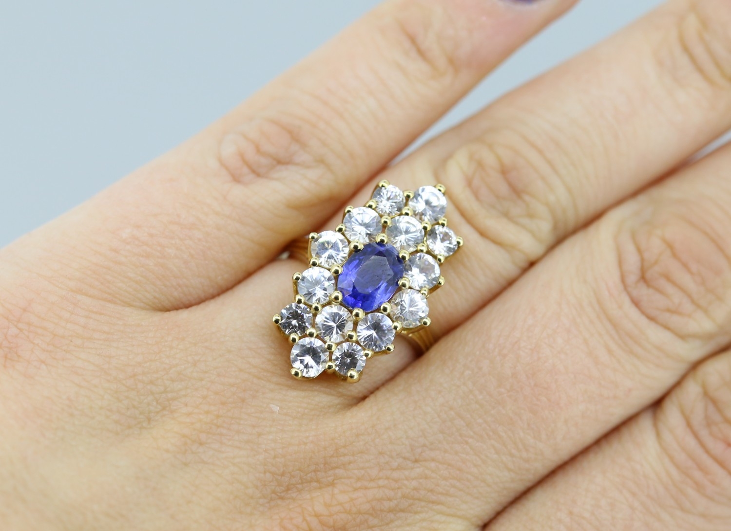 Attractively Detailed Kyanite and Zircon Set Cluster Form Cocktail Ring Mounted in 9 Carat Yellow Gold Ring Size N and a Half