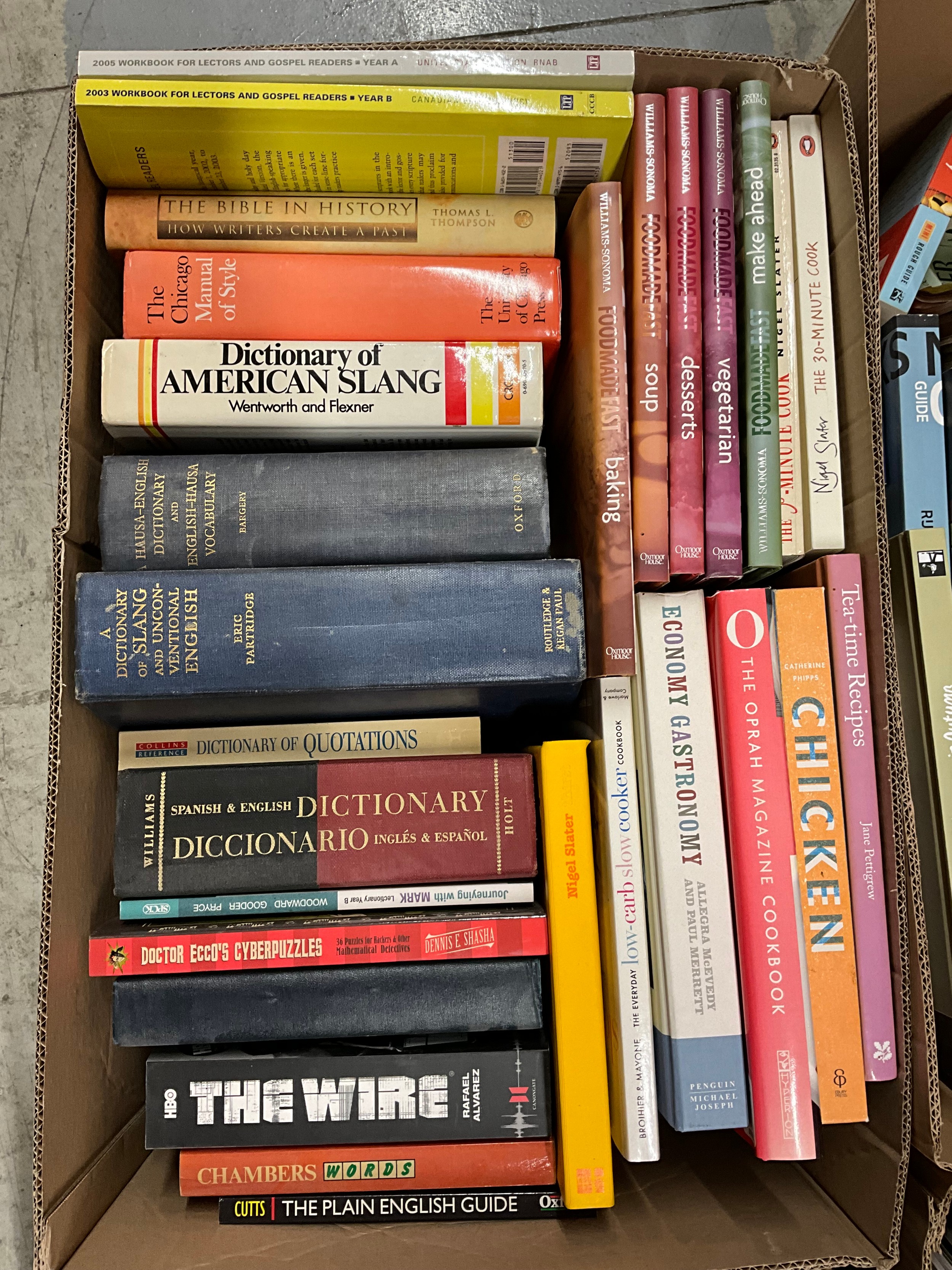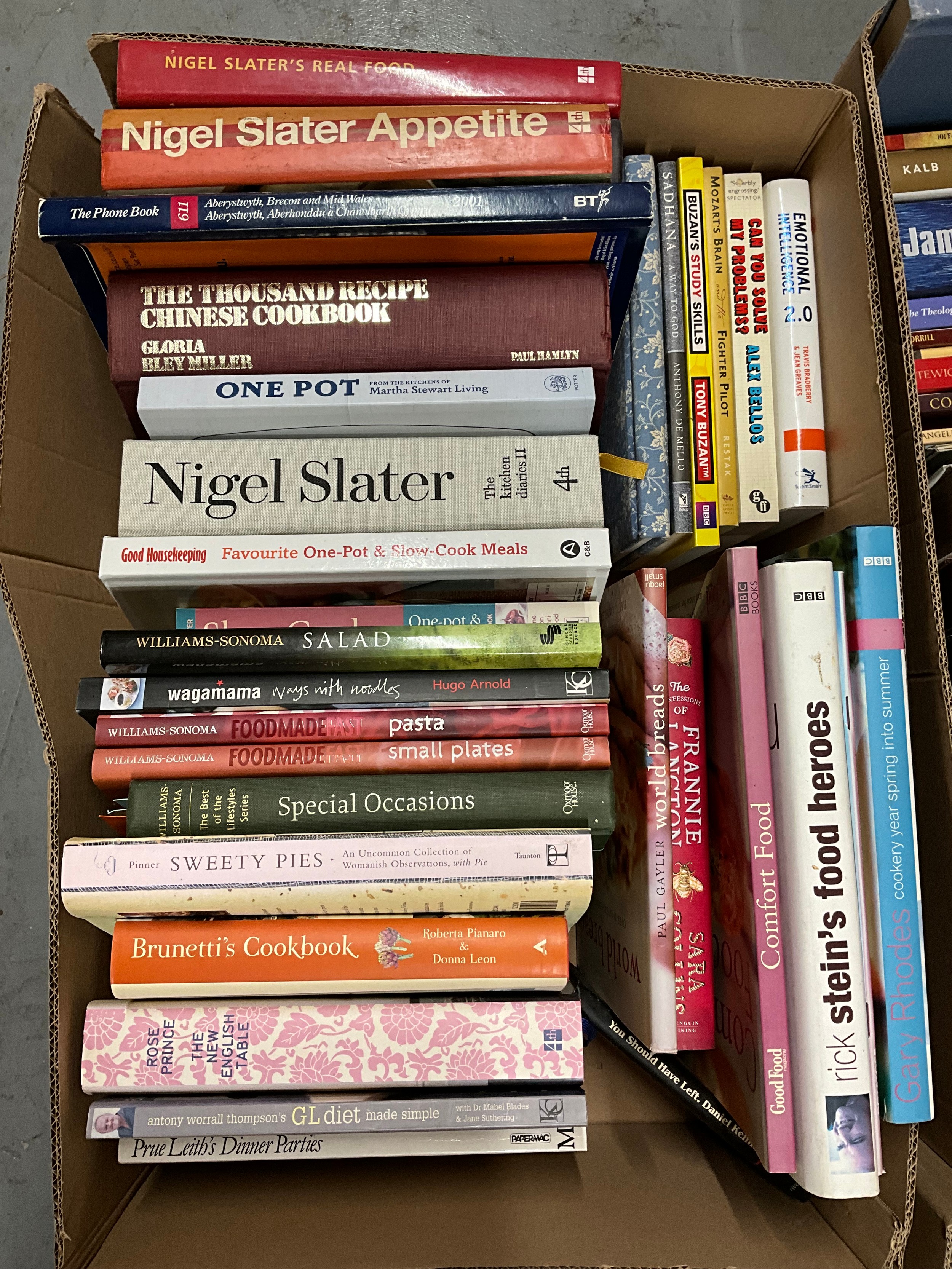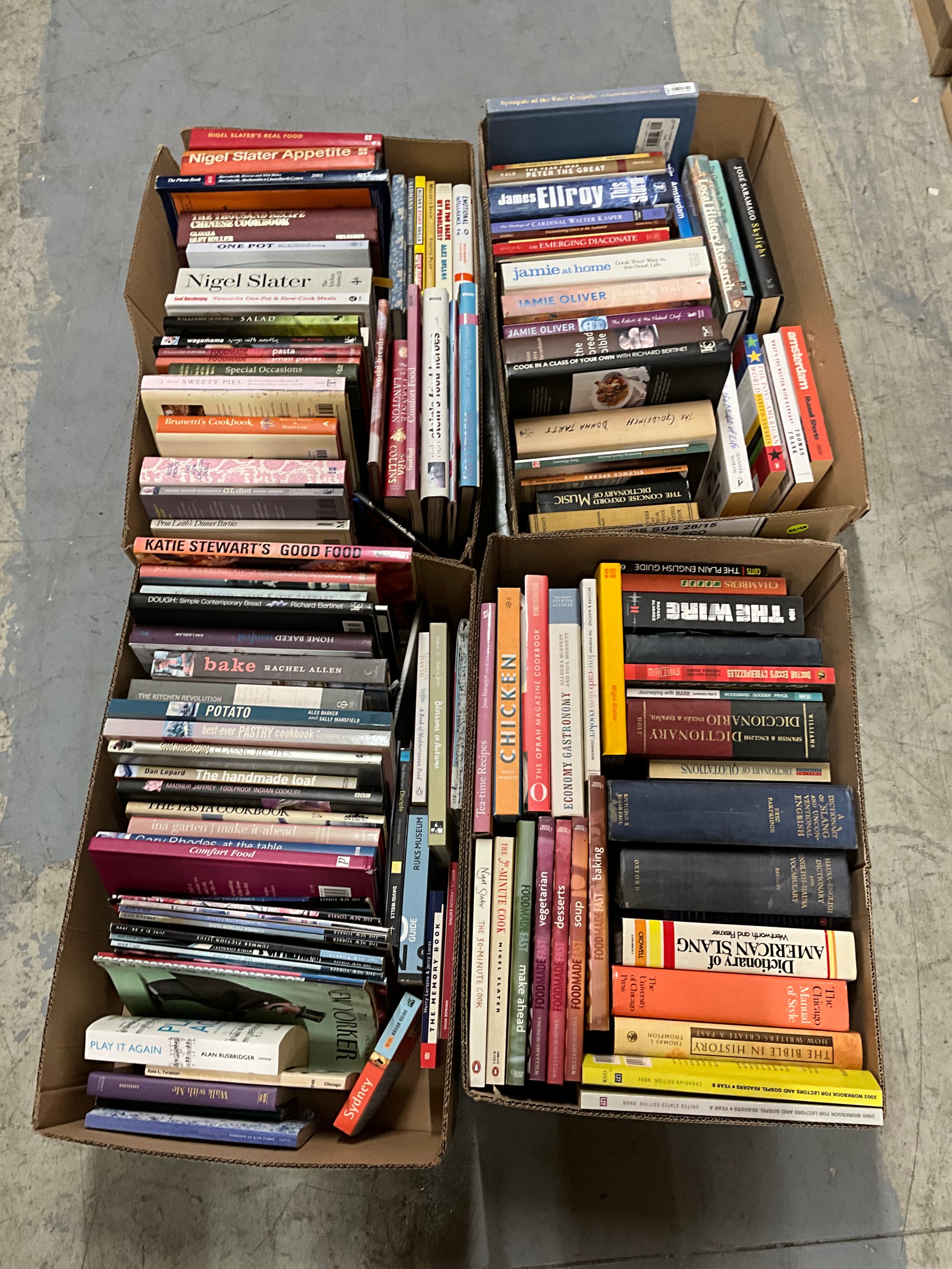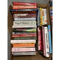 FOUR BOXES OF MAINLY MODERN BOOKS TO INCLUDE A SELCTION OF COOKERY BOOKS