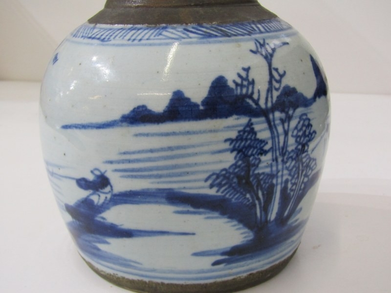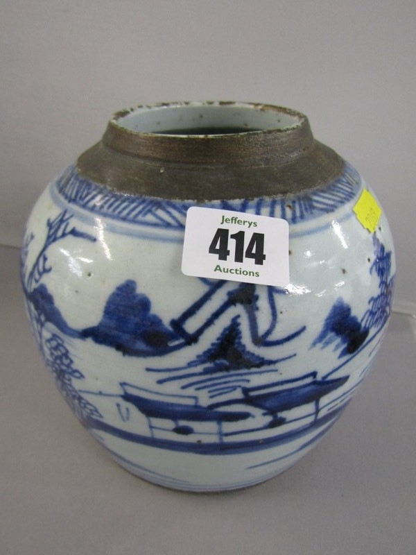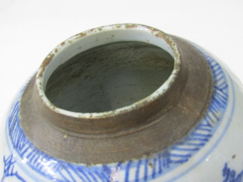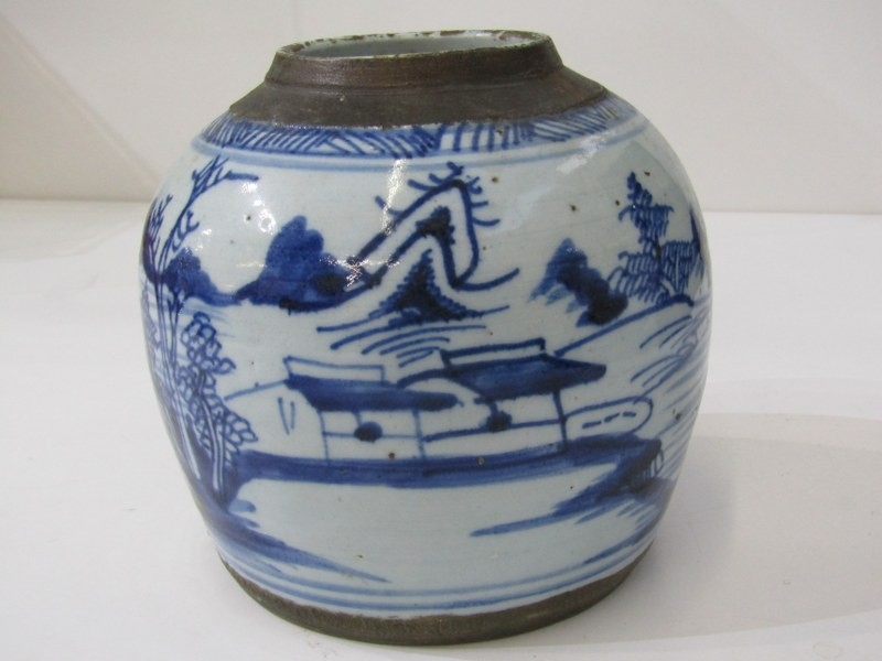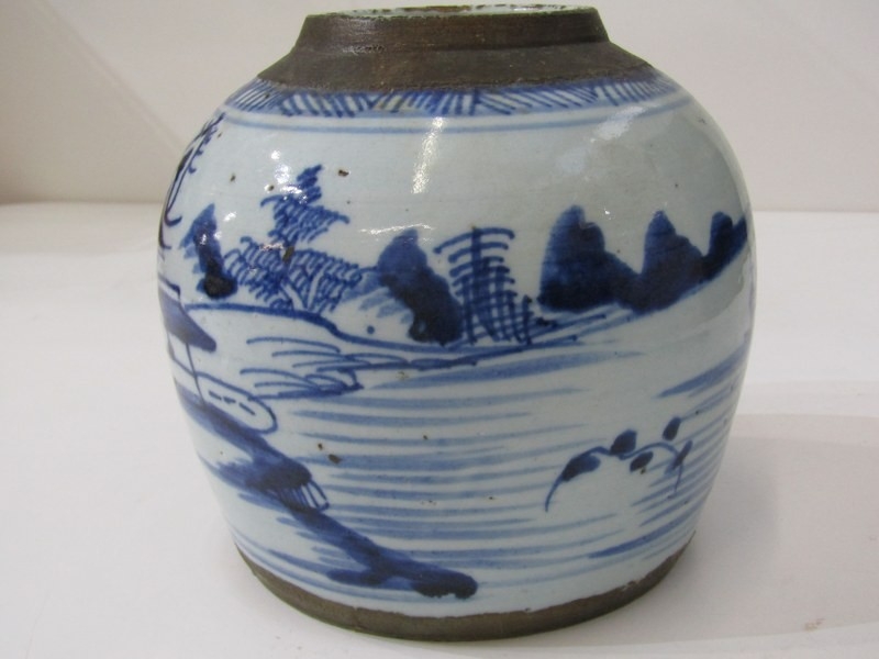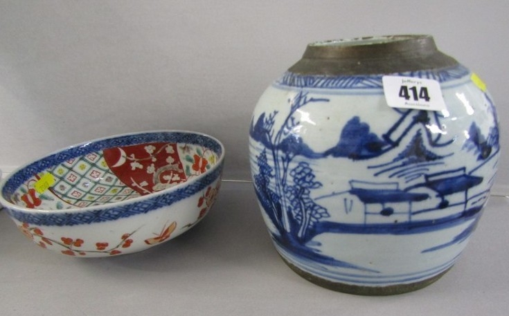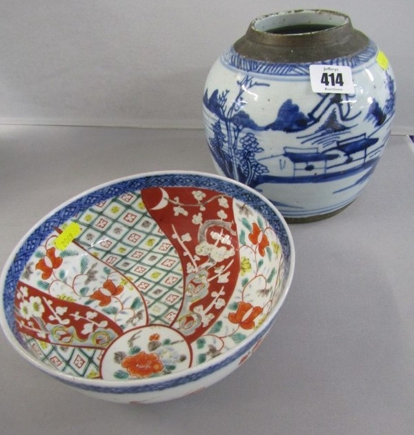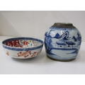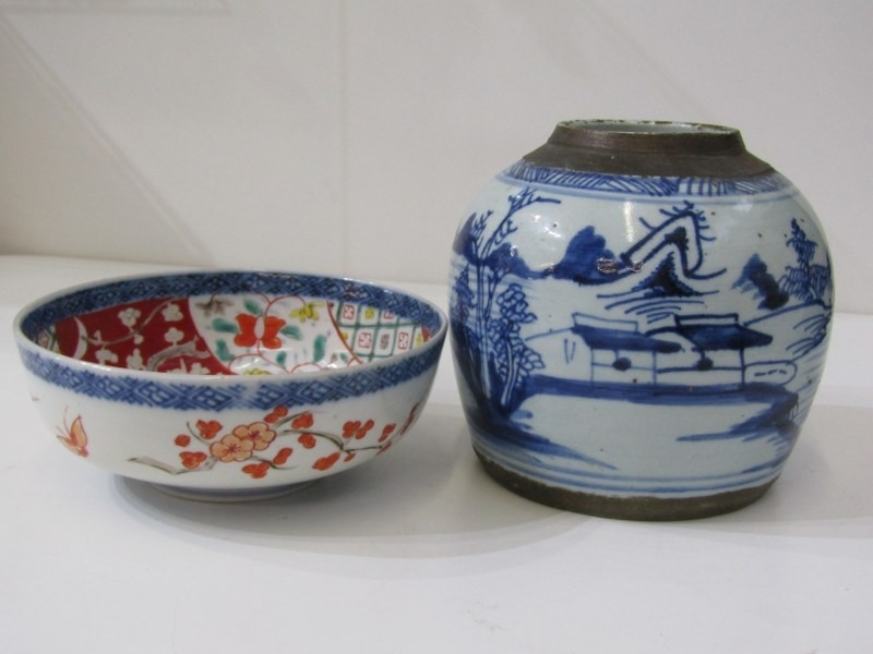 ORIENTAL CERAMICS, antique Chinese underglaze blue ginger jar "Riverscape" pattern; together with Arita 18cm diameter bowl