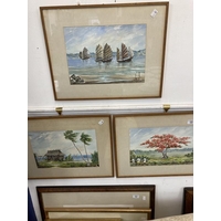 ', 1969. Titled on a Michael Parkin label, framed and glazed. 9ins. x 6½ins. Patrick Nairne: Watercolour, 'Ryde Pier from Fishbourne' signed with initials lower left and dated 1988, framed and glazed. 13½ins. x 9¾ins, together with a smaller Cotswold watercolour by Nairne. (4)