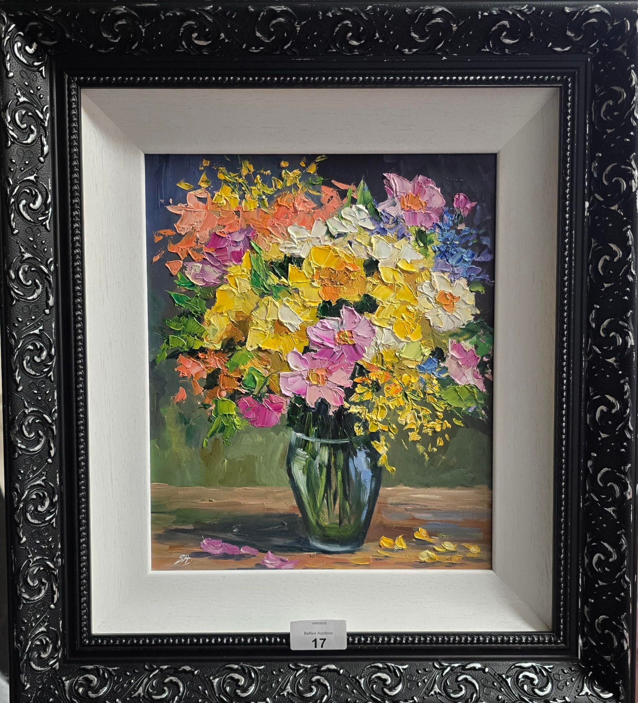 SARAH ADAMS ORIGINAL 12X10 OIL ON BOARD FALLING PETALS Inspired By Van Gogh
