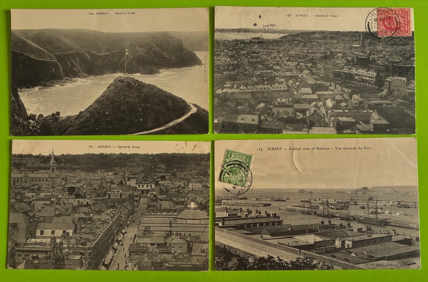 Four printed black and white Allix postcards of Jersey, numbers 134, 139, 141, & 154 (4).