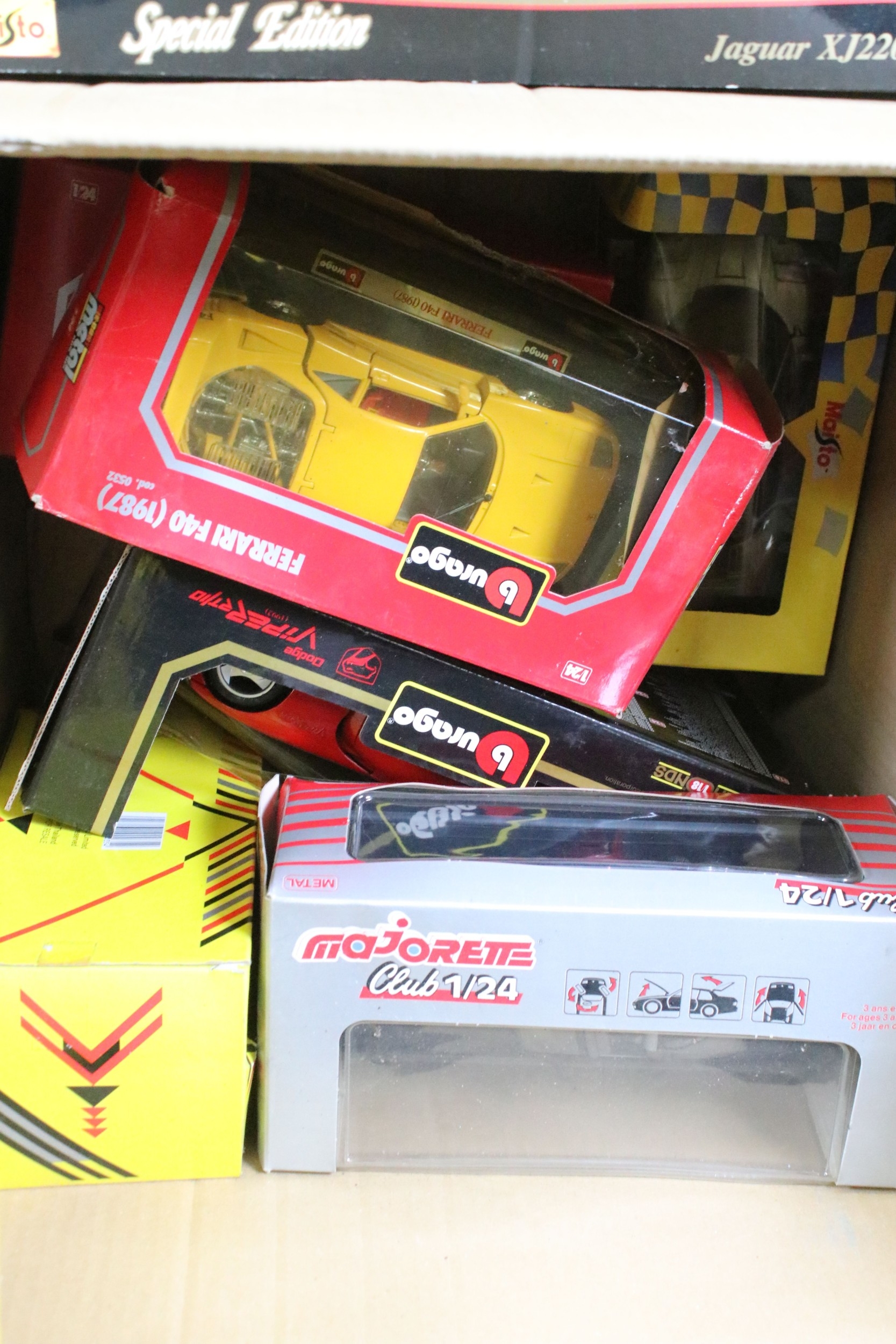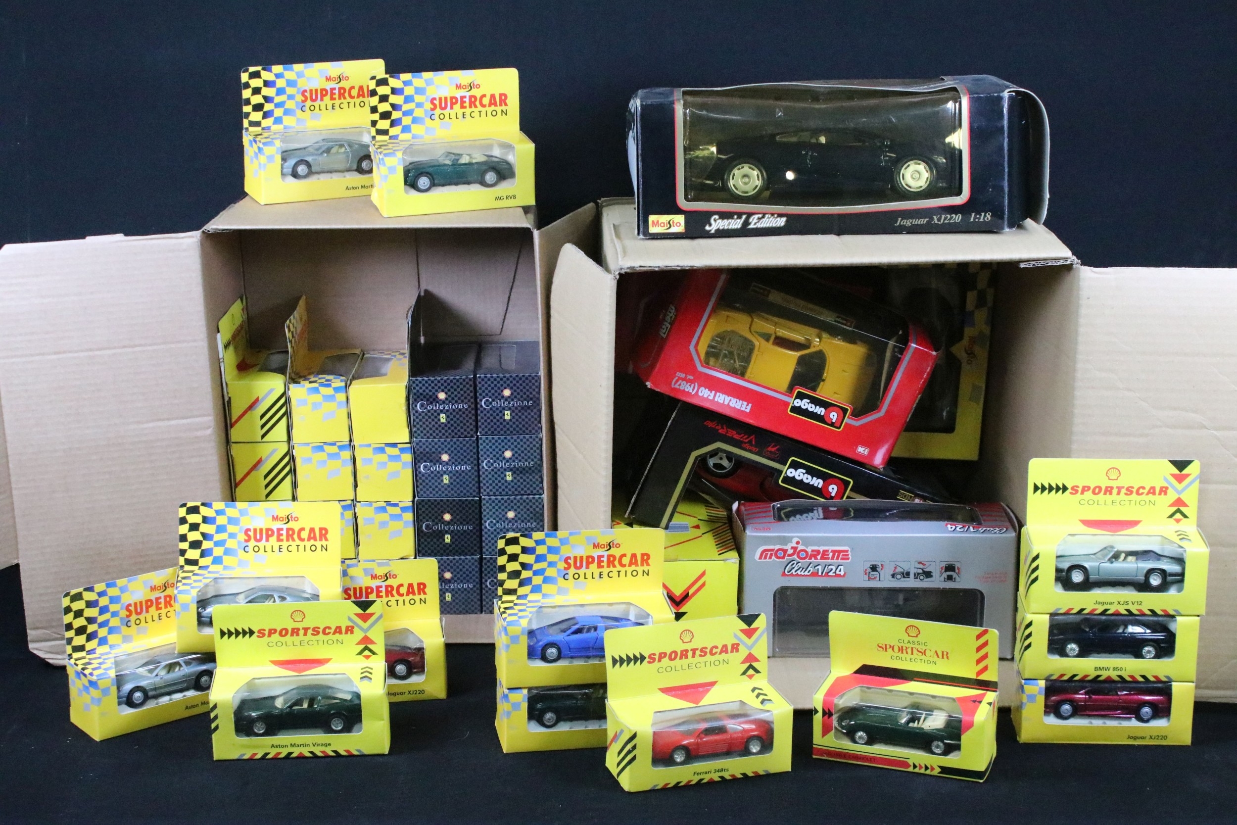 40 Boxed diecast models to include Maisto Supercar Collection, Shell Ferrari Collezione, Maisto Special Edition 1/18 Jaguar XJ220 1992, Burago 1/18 Dodge Viper GT10, etc, all diecast ex, boxes vary in condition but gd-vg overall (2 Boxes)
