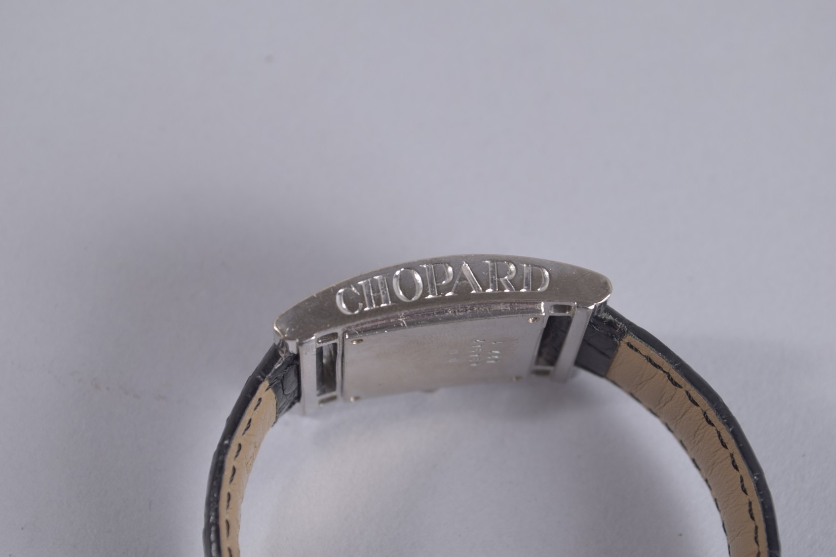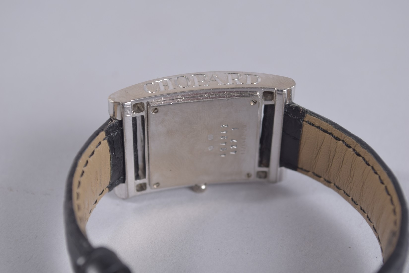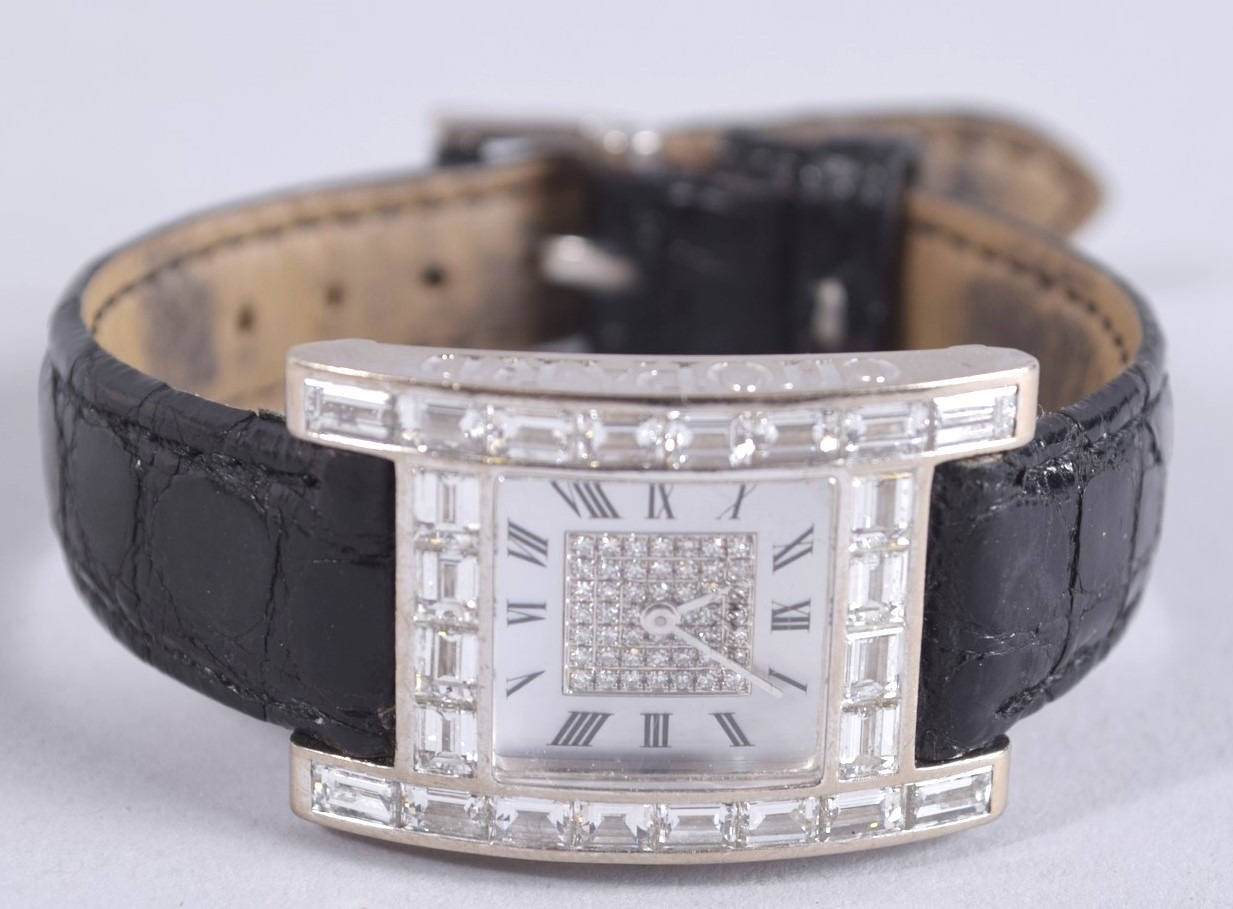 A CHOPARD DIAMOND SET WATCH, mod 13/6402-20, model 'Your Hour', bezel and lug set with baguette diamonds 5ct weight, marked 750 gold, 50 grams, quartz, box.