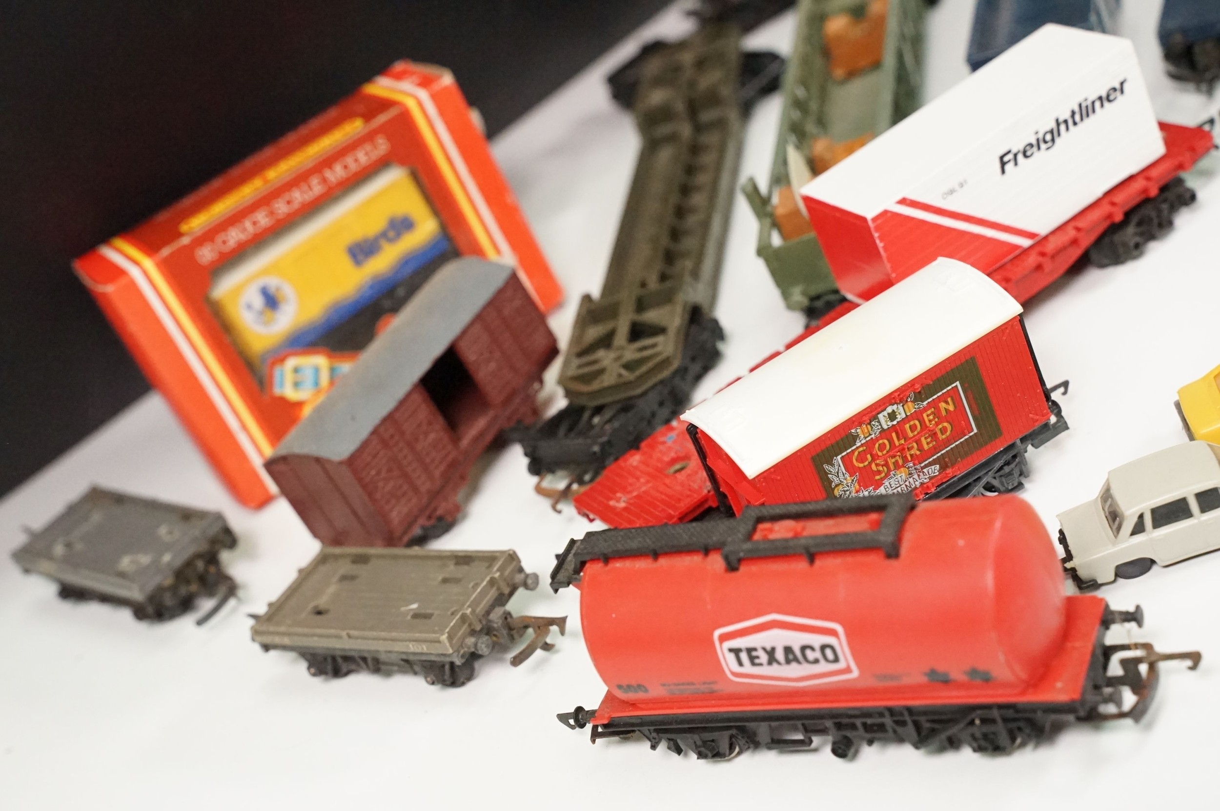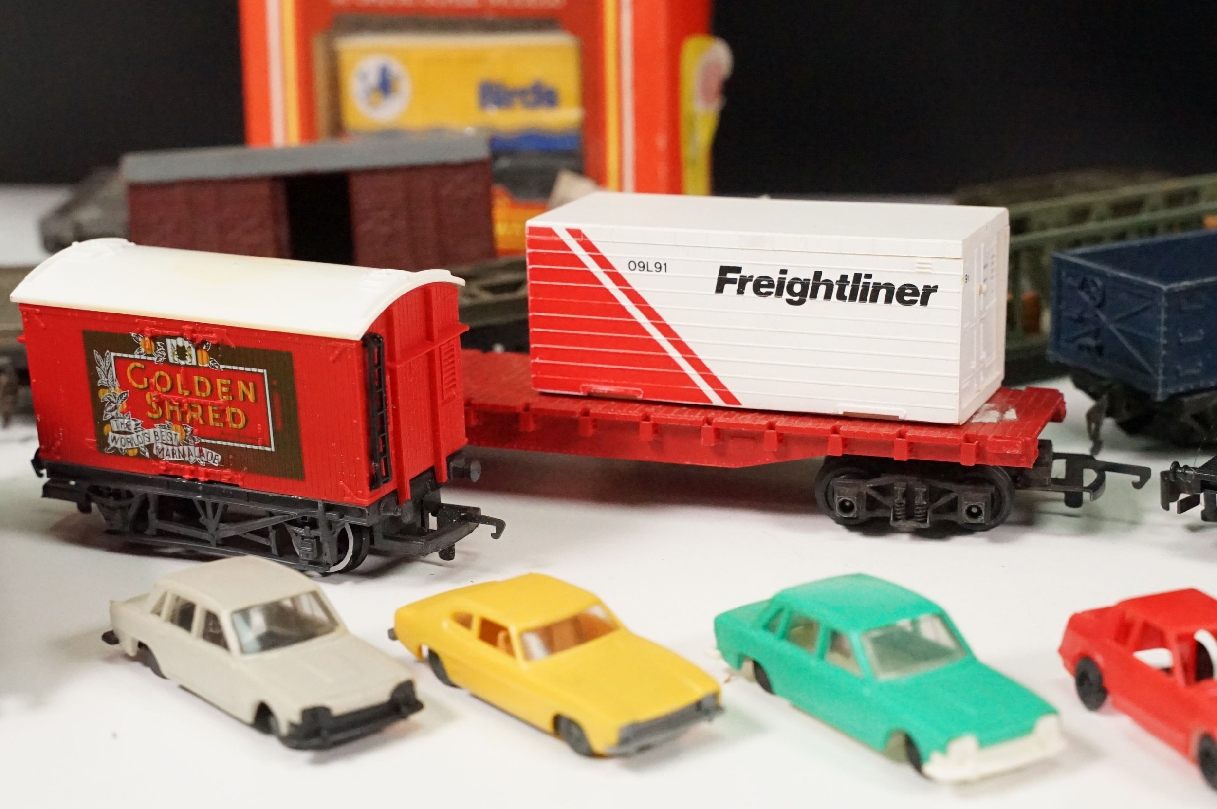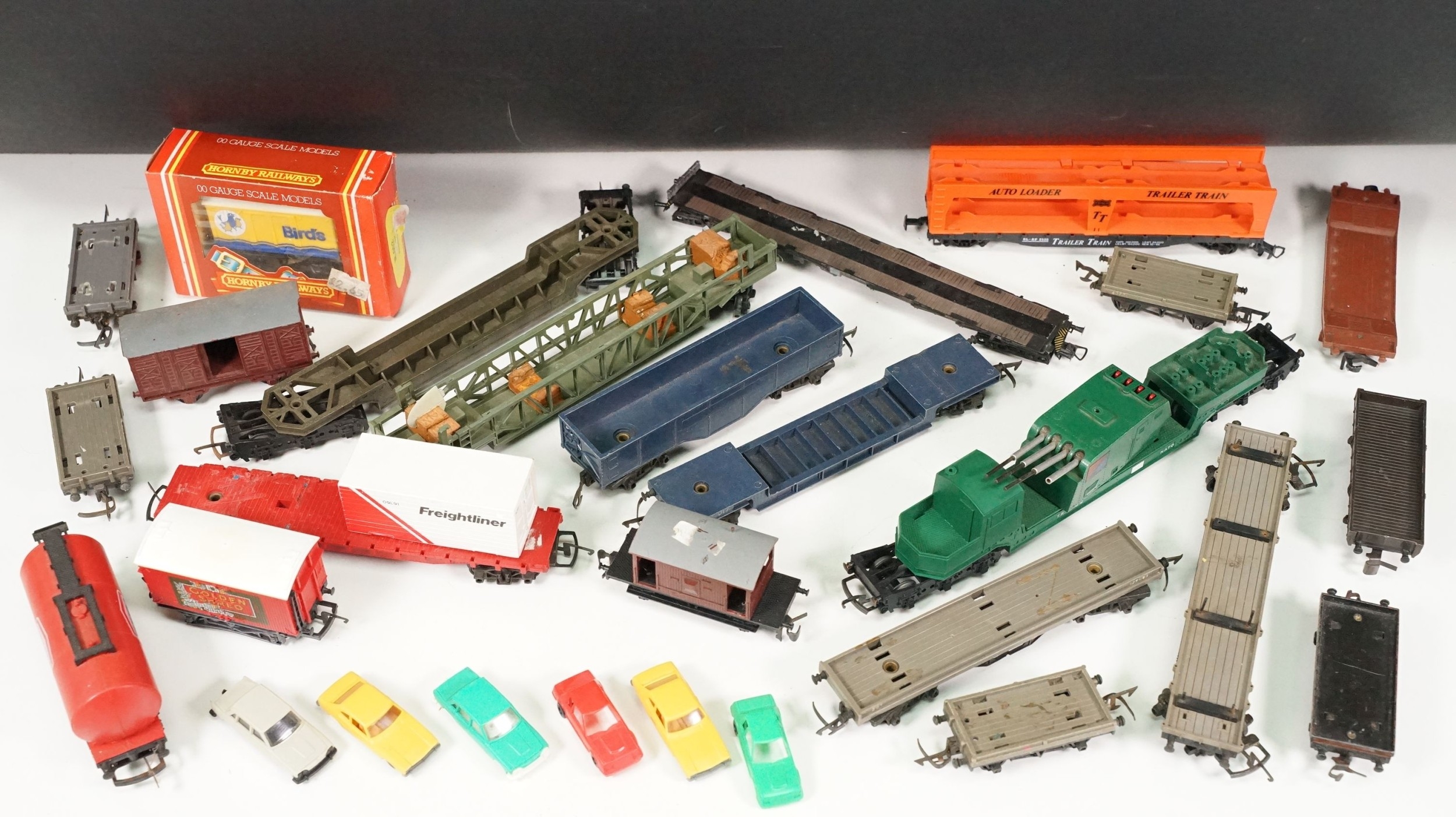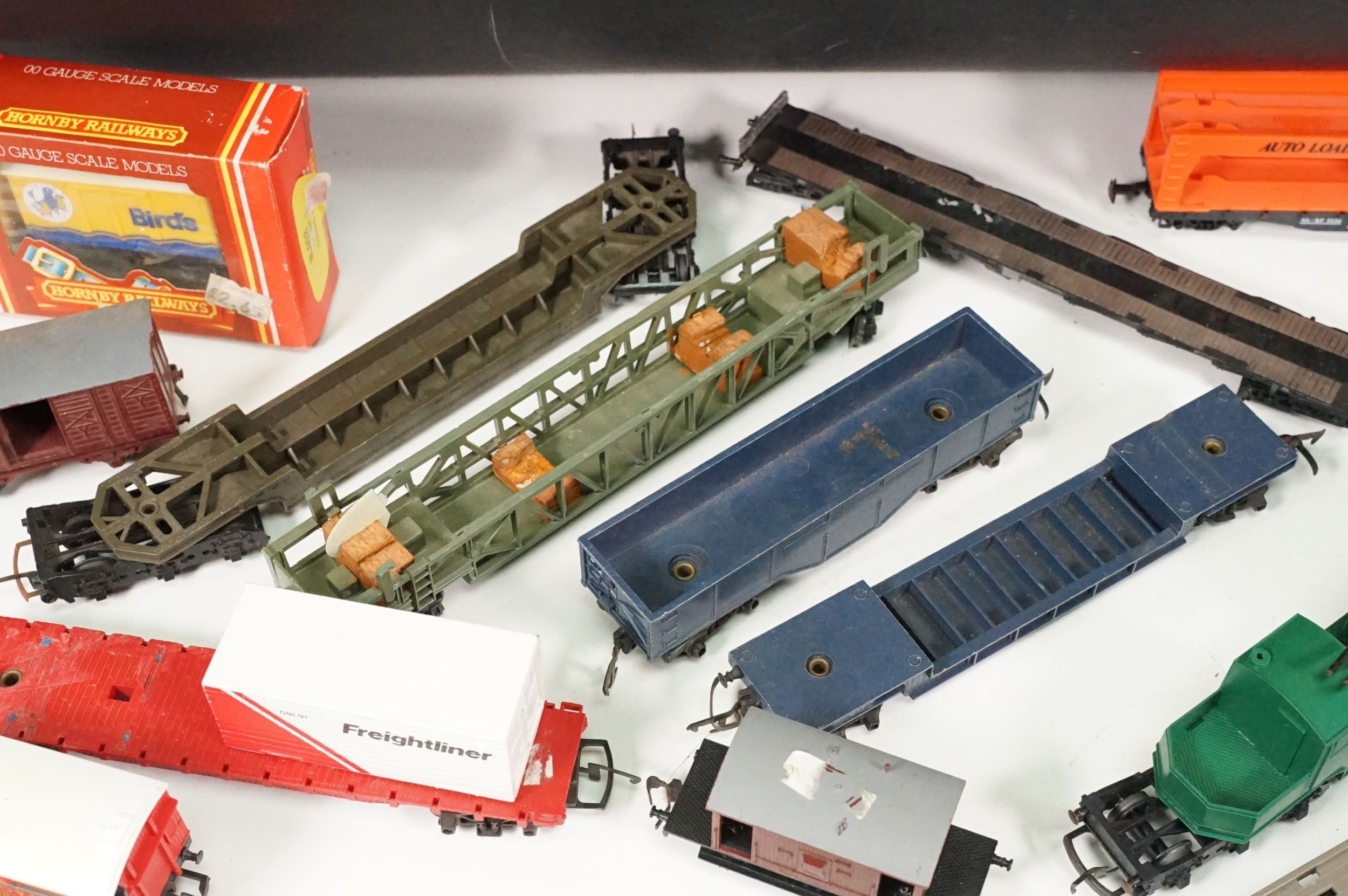 Around 20 items of OO gauge rolling stock to include boxed Hornby R002 Birds Closed Van, Hornby Golden Shred, Hornby Dublo, Triang etc