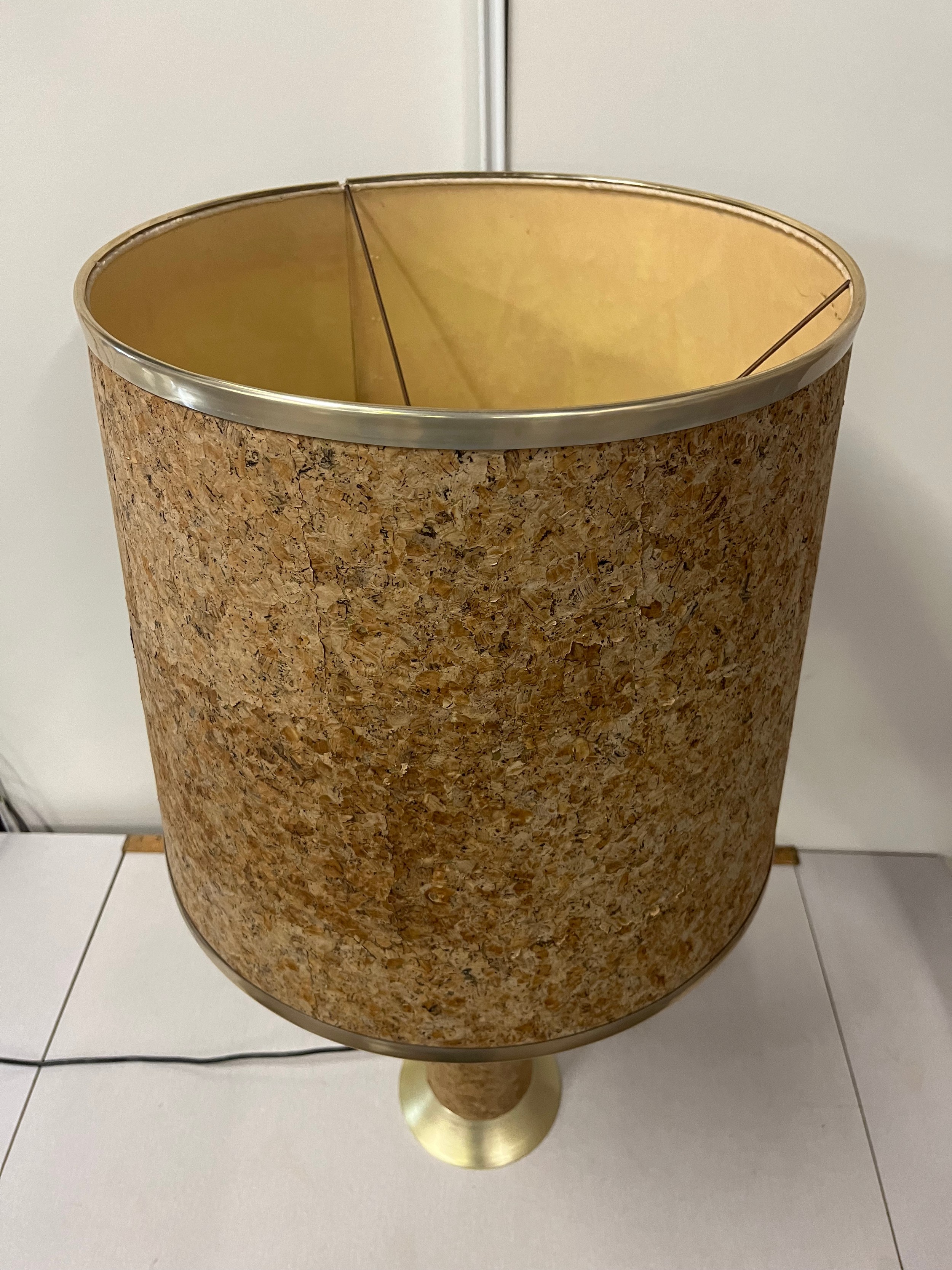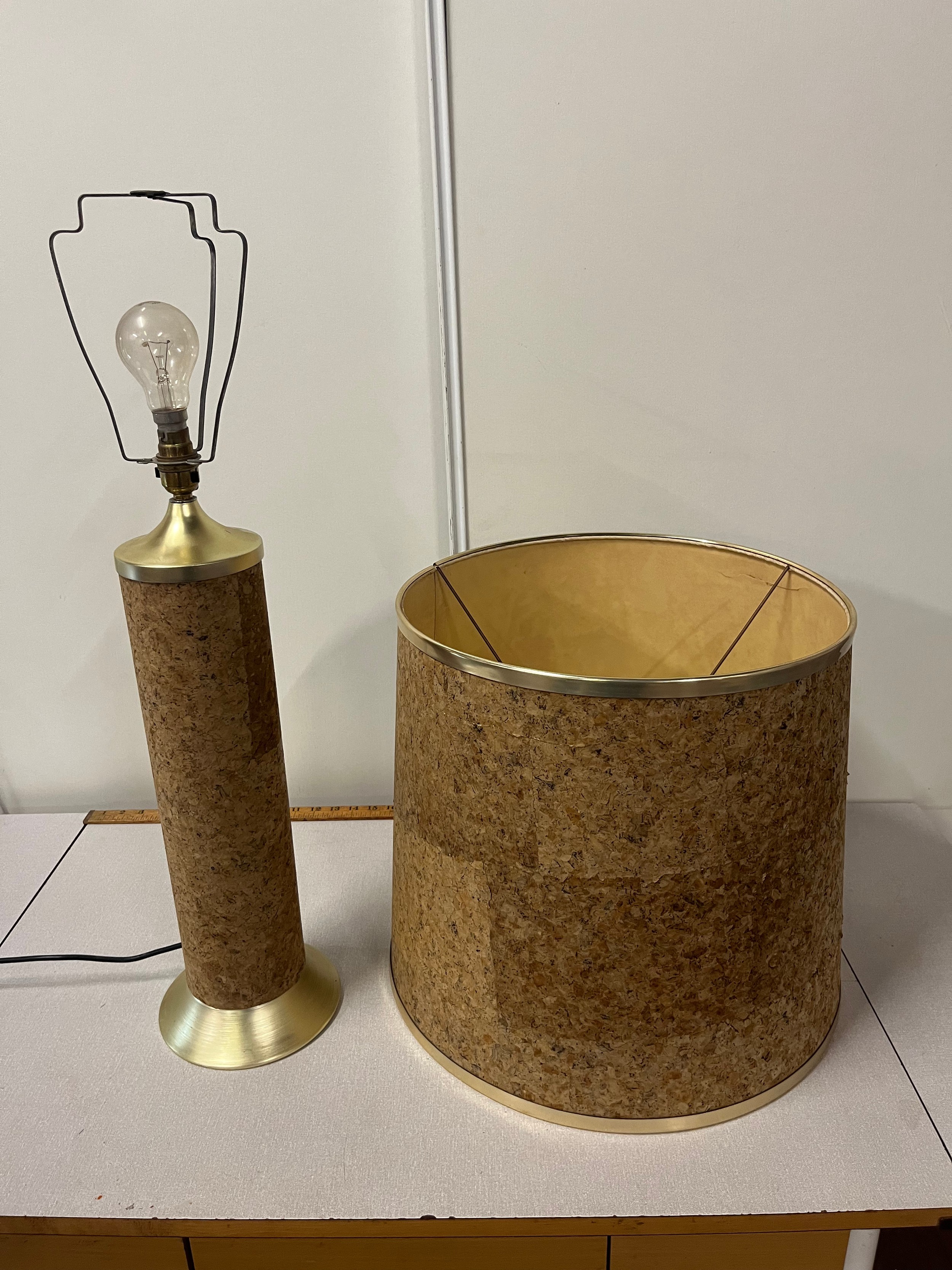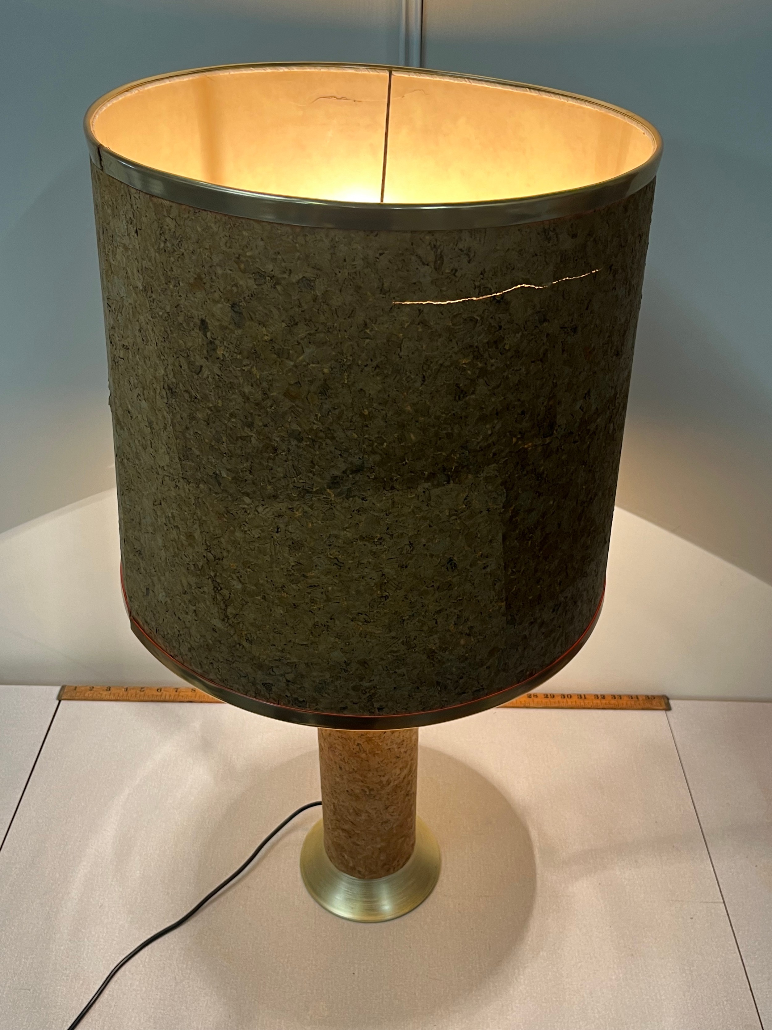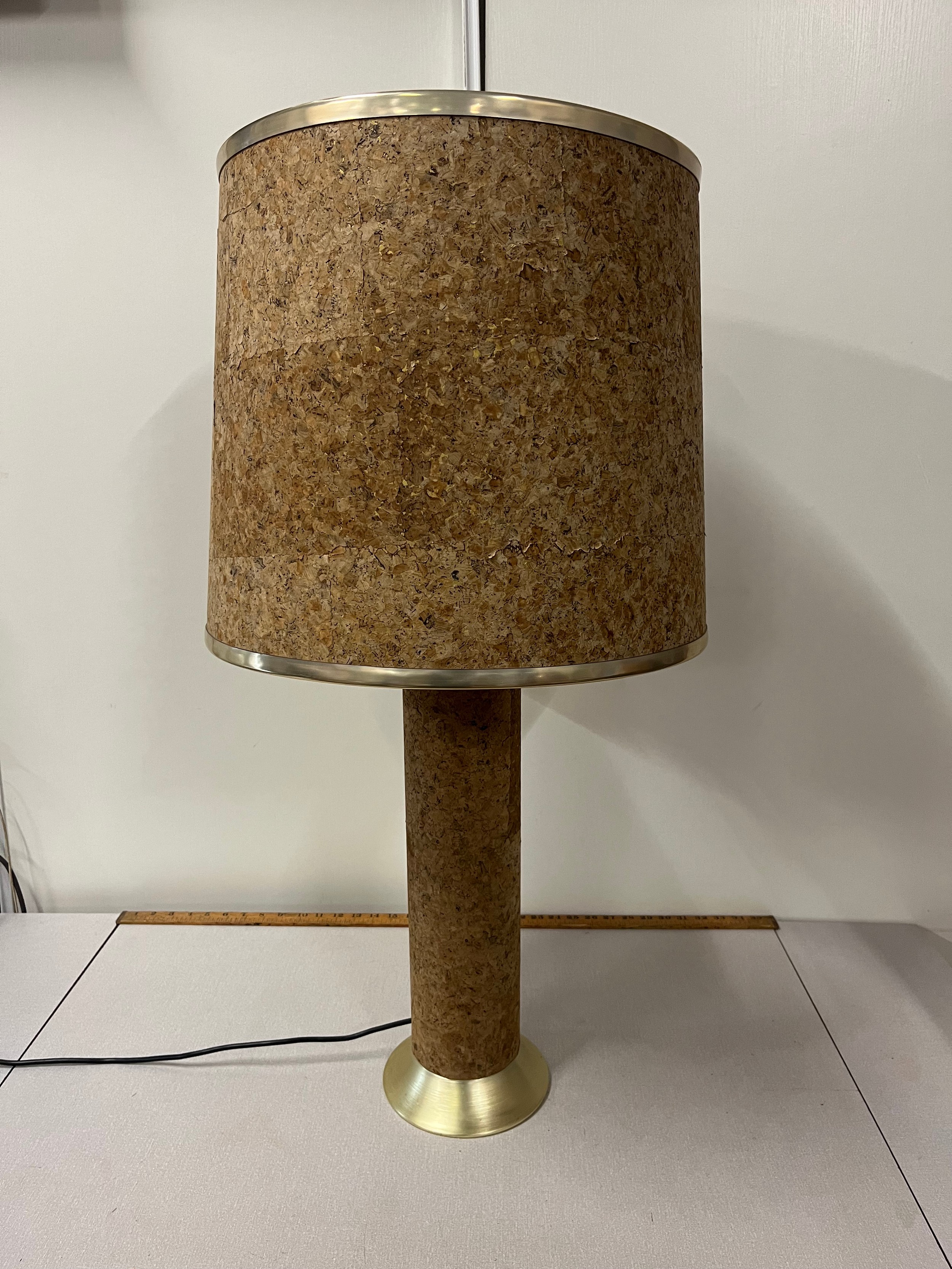 Mid century large cork table lamp & shade by Durlston Design Ltd. see pics for condition, height inc shade 35"