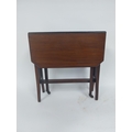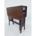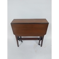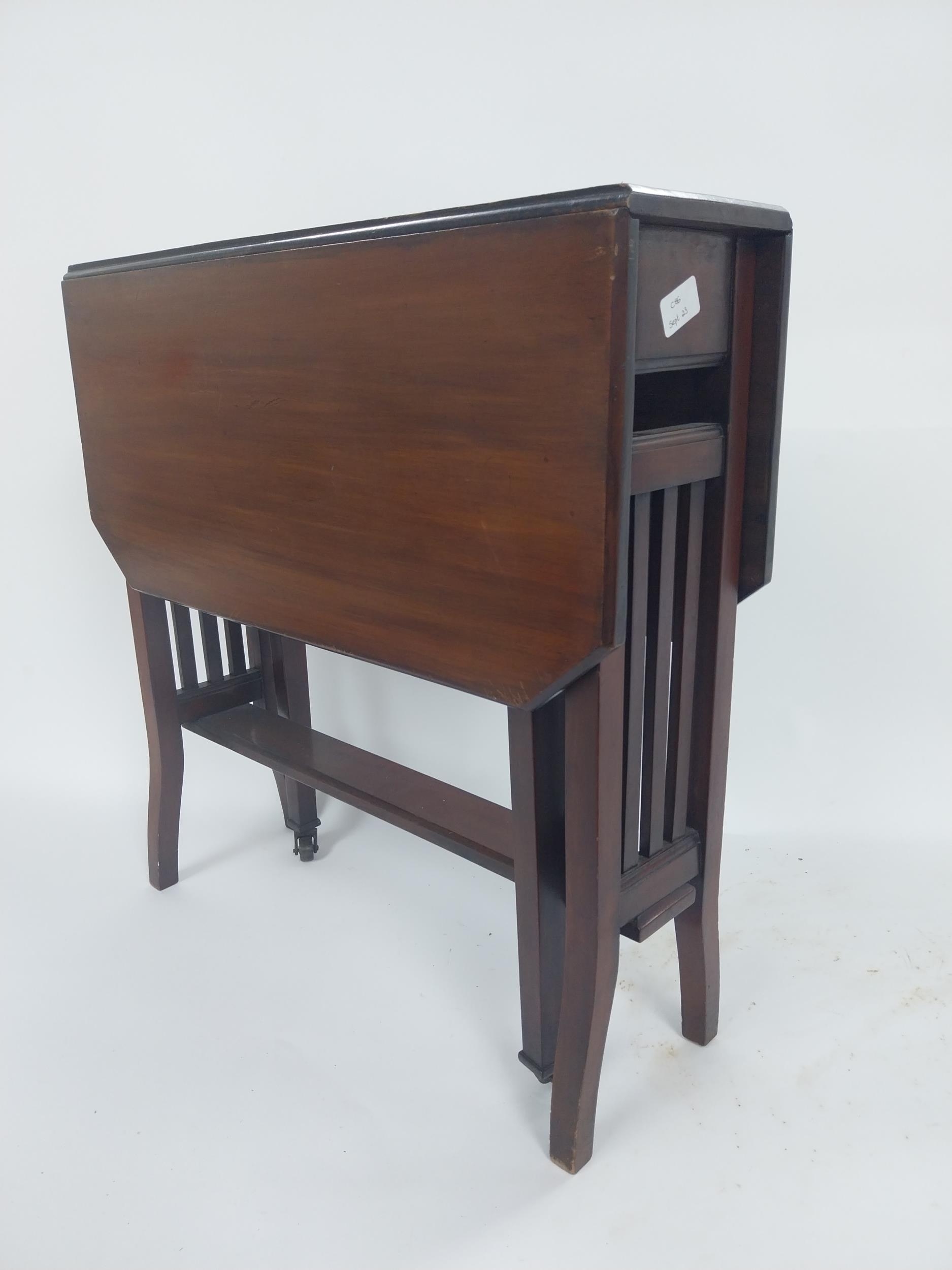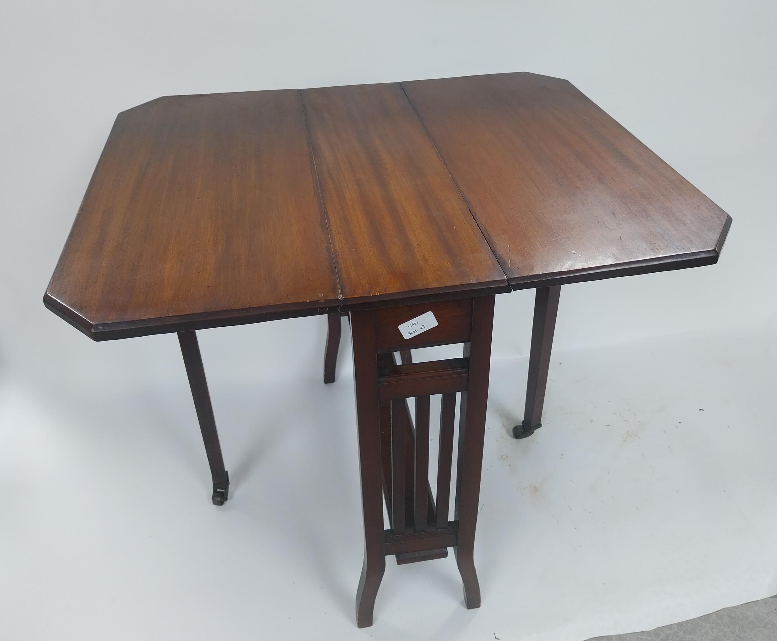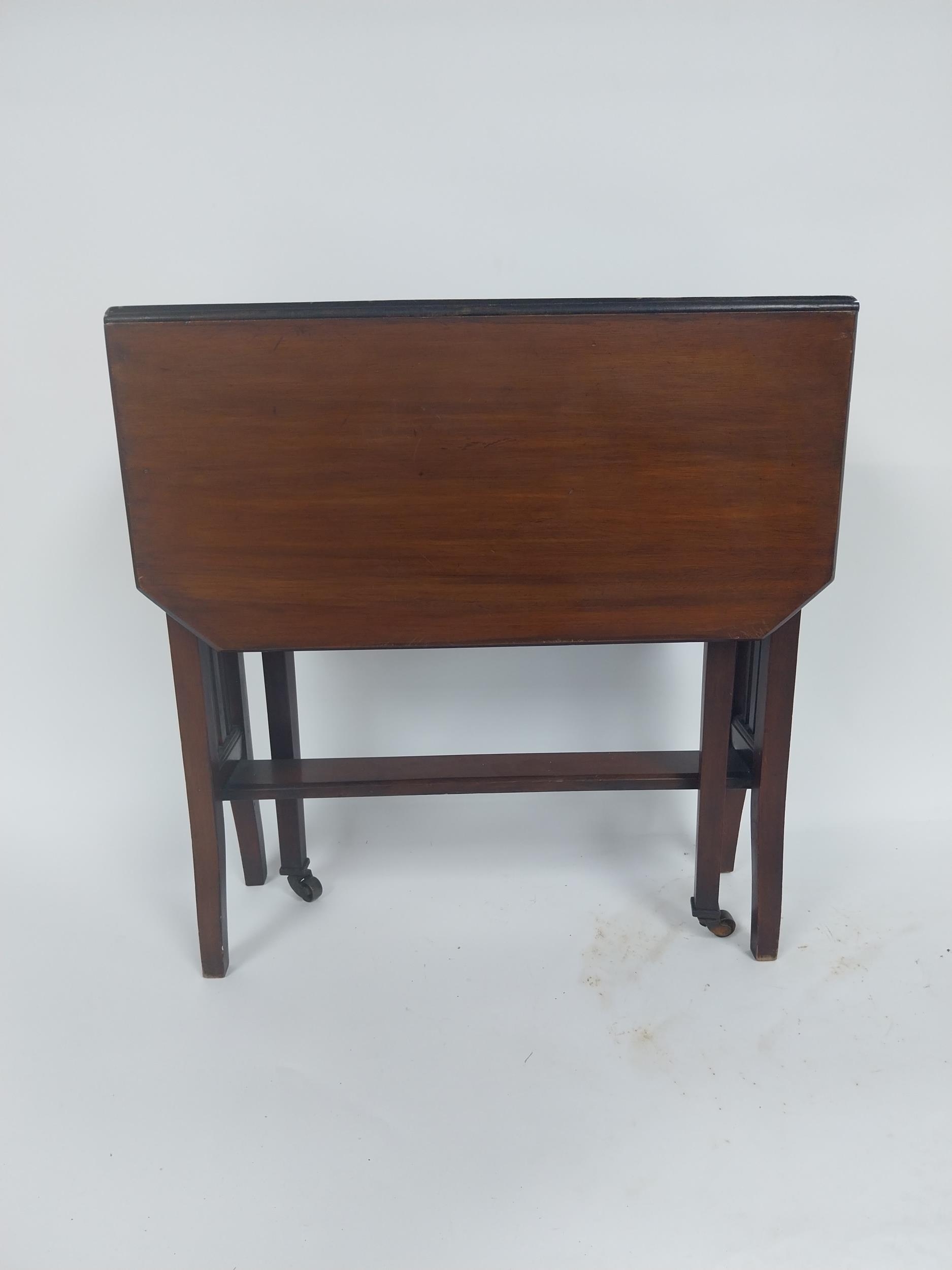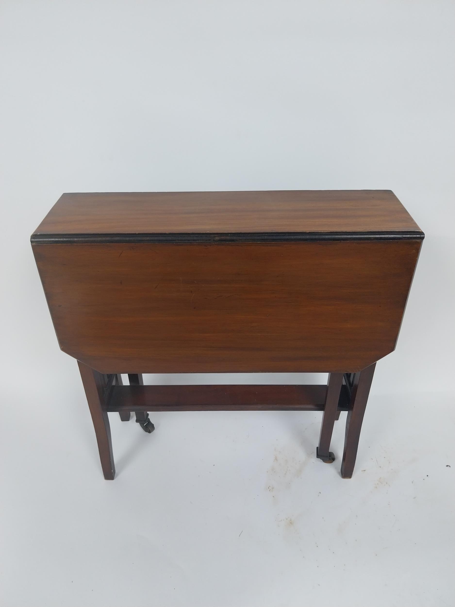 Edwardian mahogany drop leaf Sunderland table raised on square tapered legs and castors {62 cm H x 60 cm W x 18 cm D}.