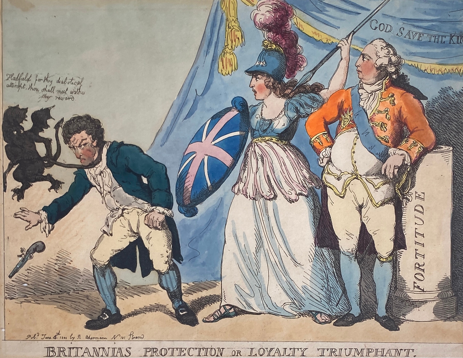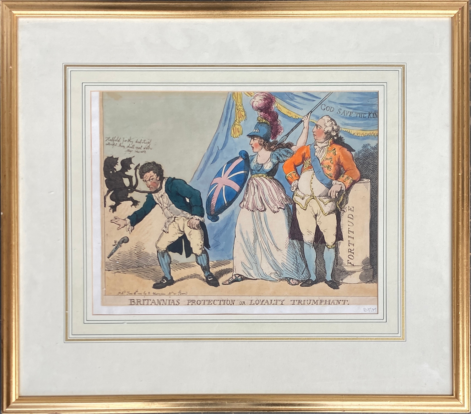 Thomas Rowlandson (1757–1827), 'Britannia's Protection or Loyalty Triumphant', hand coloured etching, published by R Ackermann, c.1800, 29x38cm