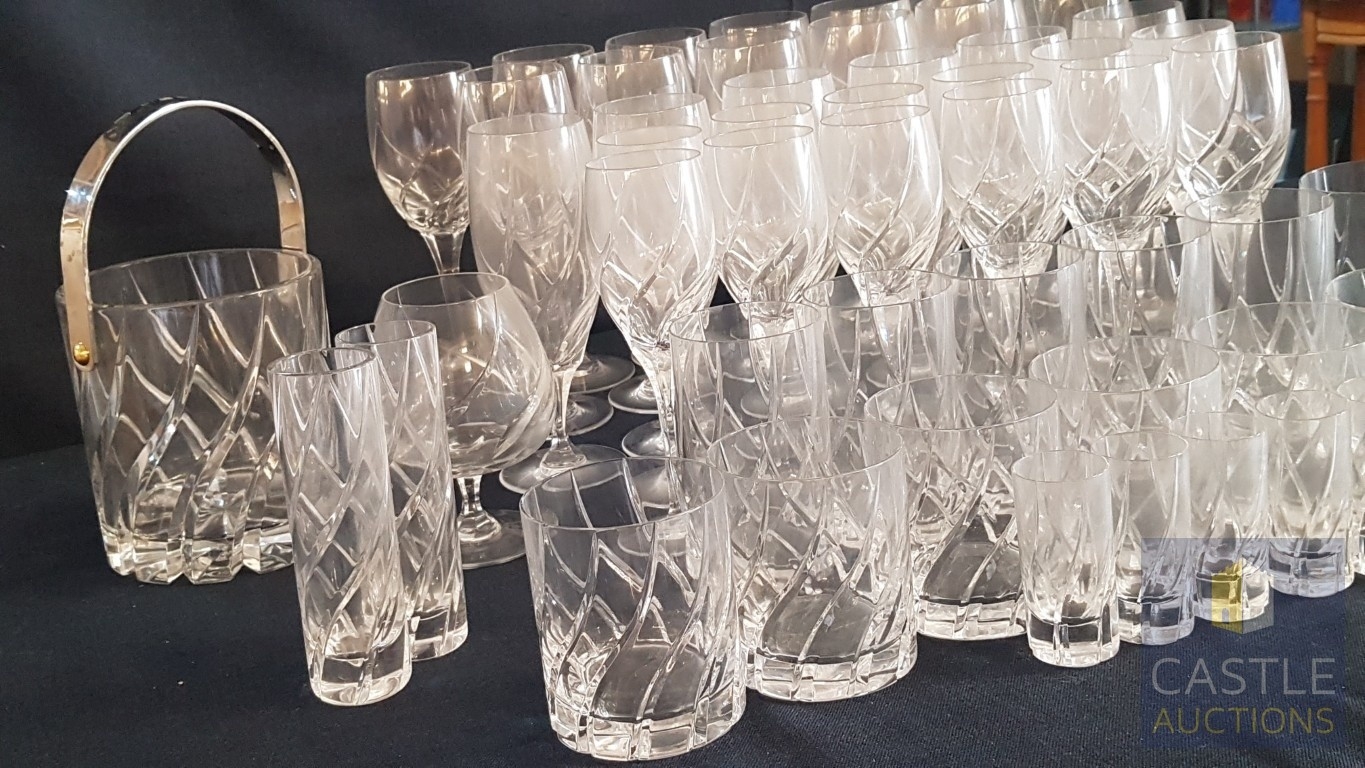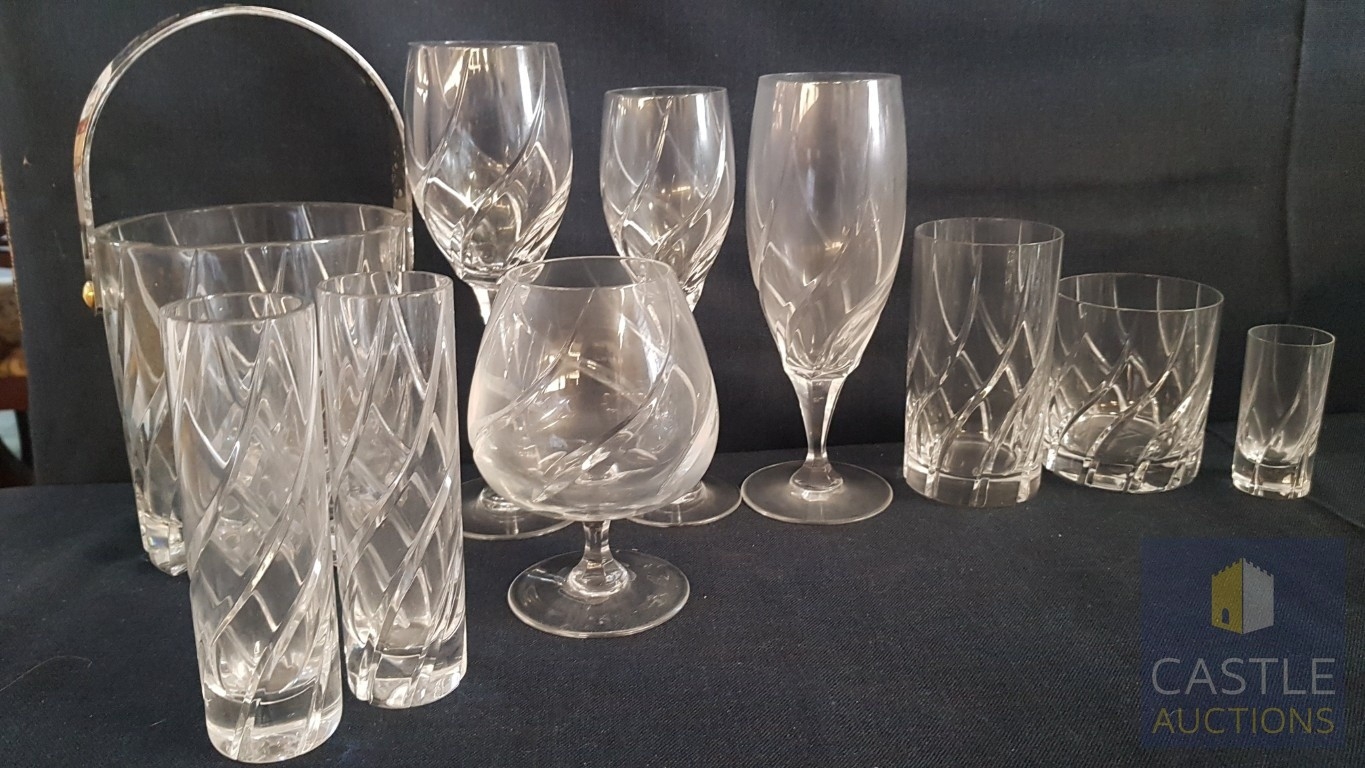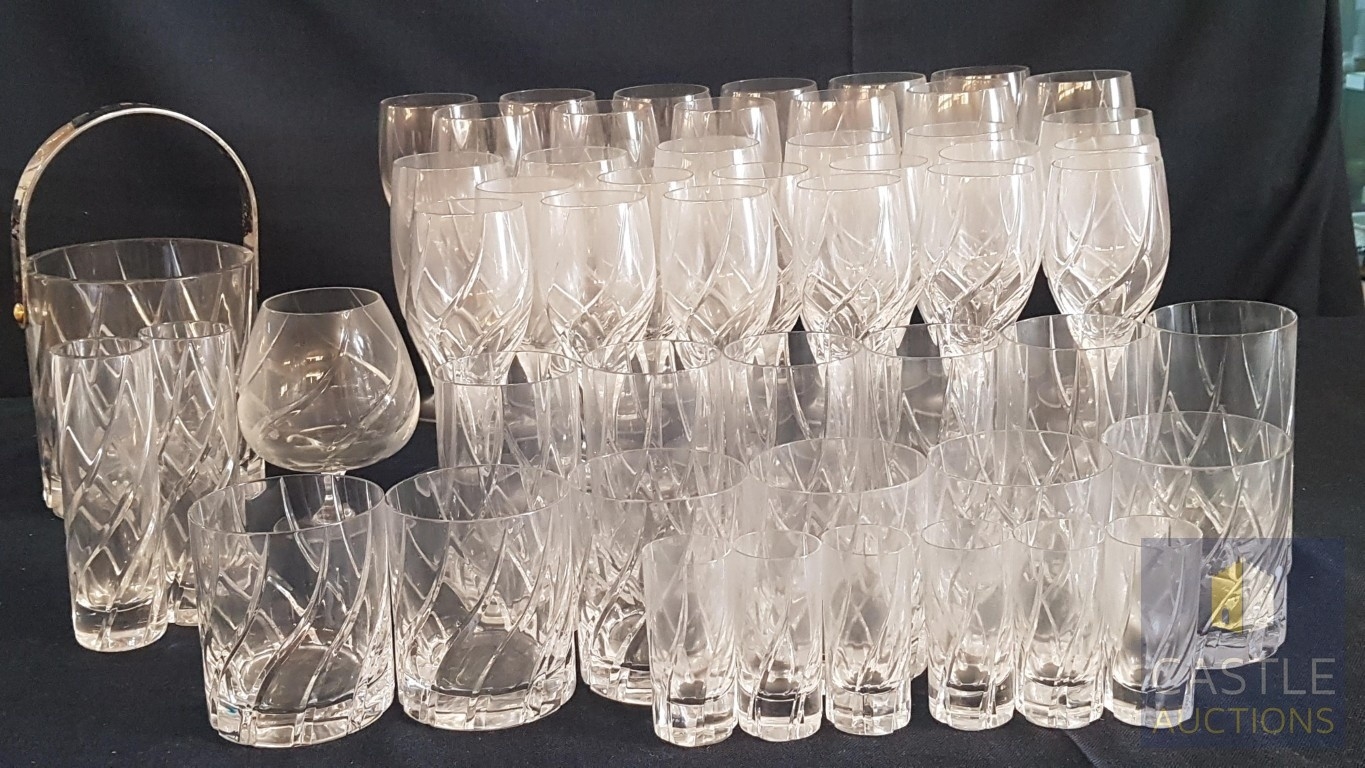 Rogaška Crystal Luxury Brand, High-Quality Lead Crystal Set of Glasses(Approx. 52x Pcs) for Various Types of Alcohol and Ice Bucket and 2x Small Matching Vases; Inc. 6x Shots Glasses, 6x Champagne Glasses, 6x Water Glasses, 6x Whisky Glasses,12x Red Wine Glasses, 12x White Wine Glasses, 1x Brandy Glass (52)