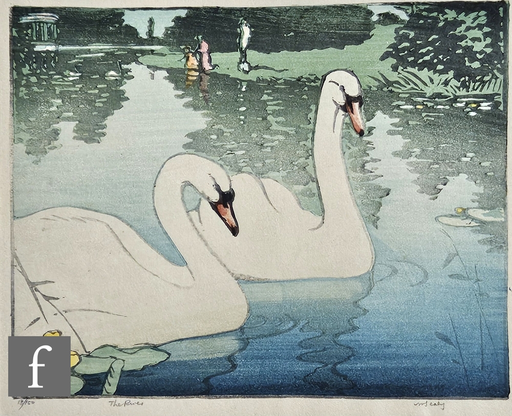 Allen William Seaby (1867-1953) - 'The River', woodcut, signed and titled in pencil, numbered 18/150, unframed, 15cm x 19cm.